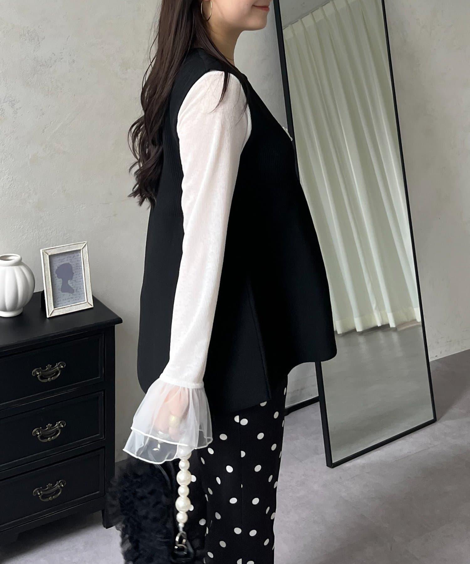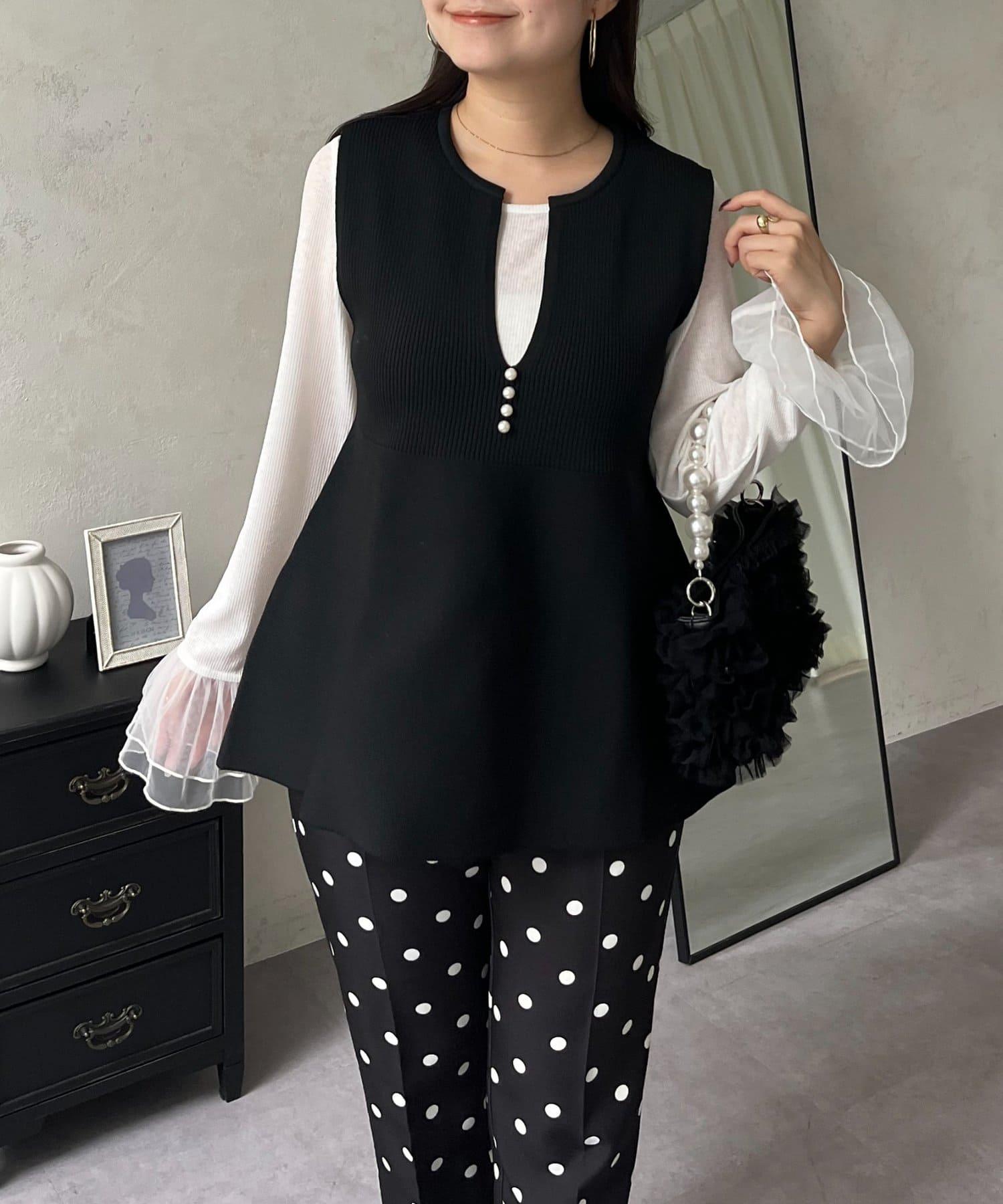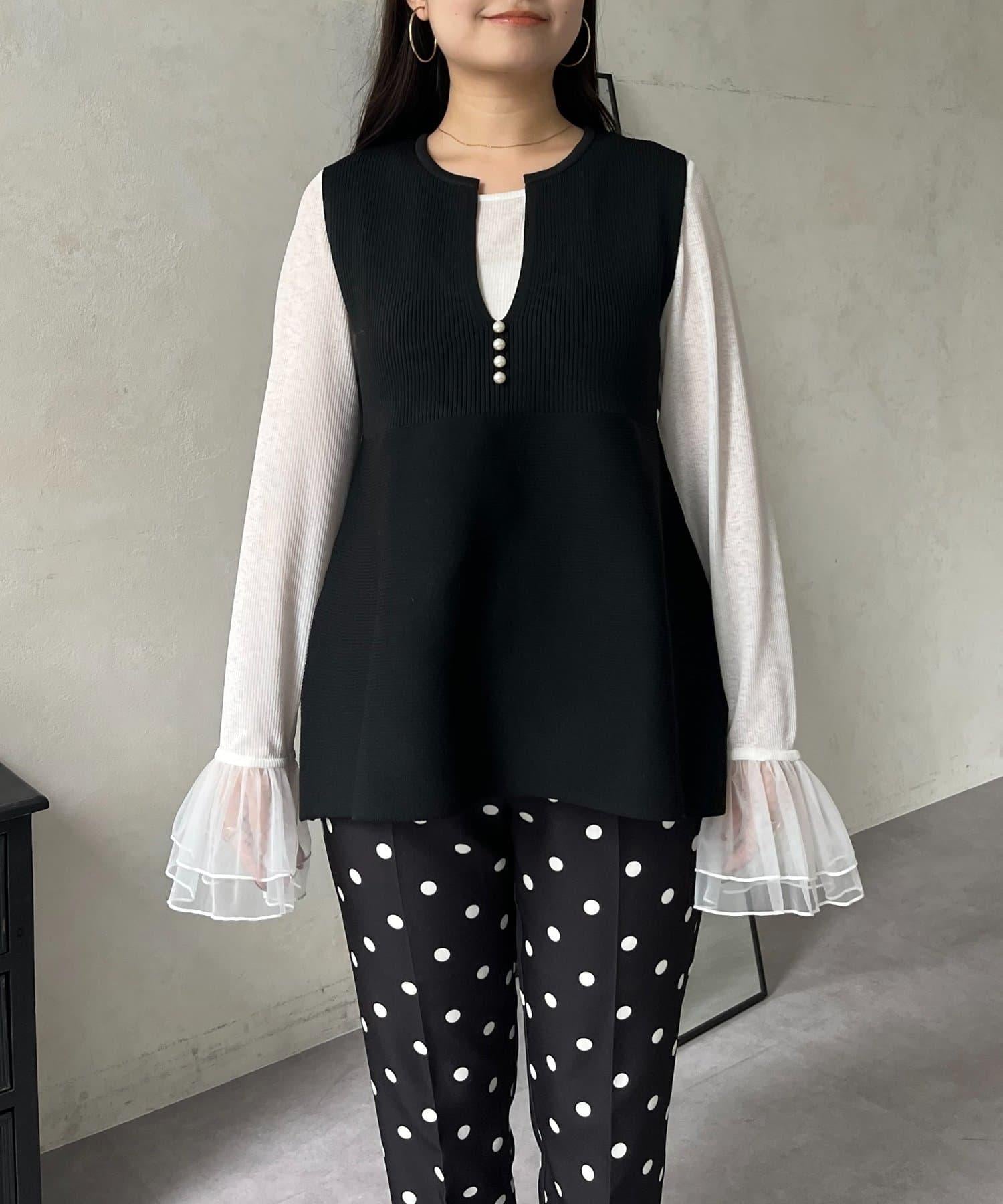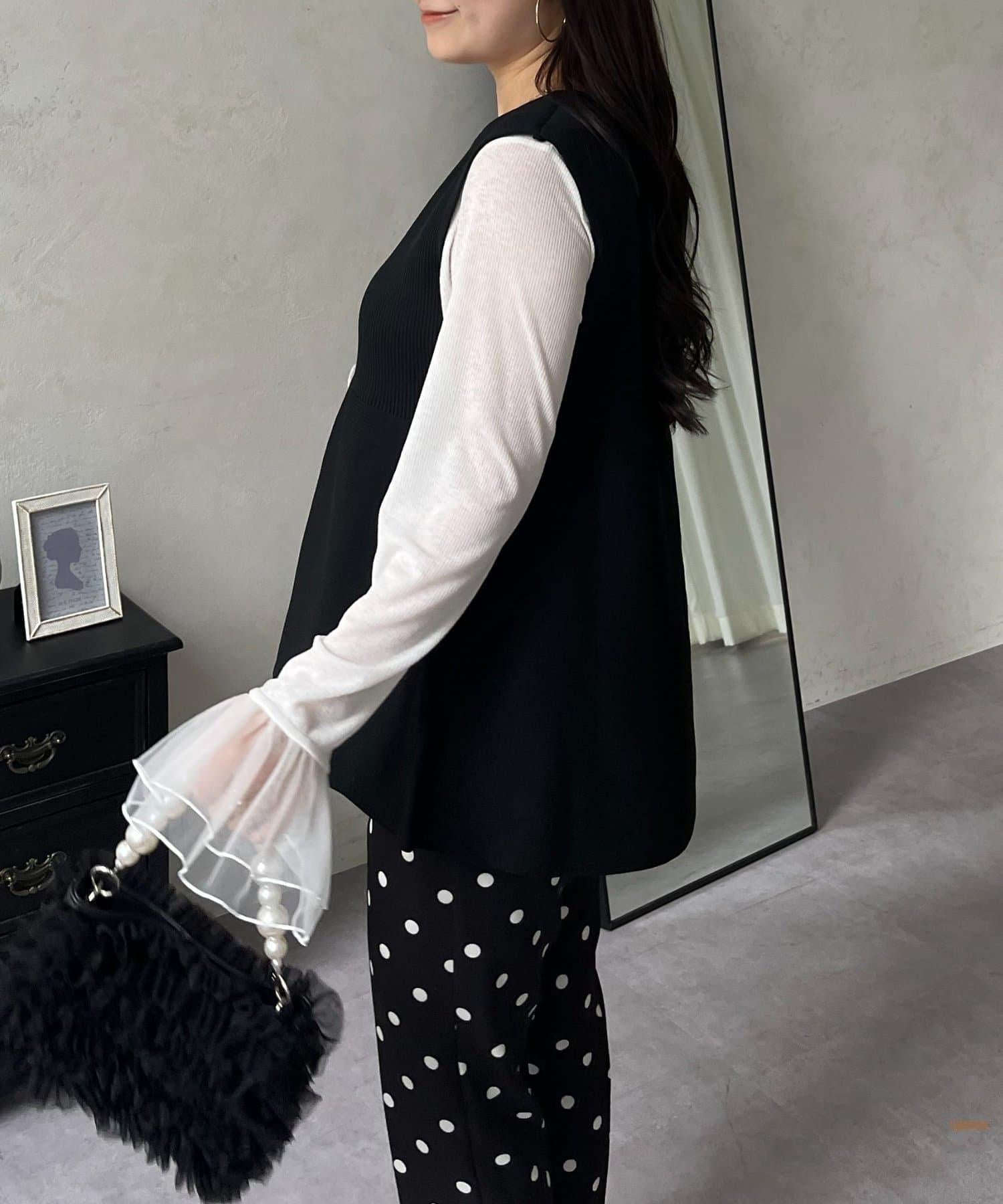 預約商品前珍珠裝飾深V領荷葉邊針織背心
