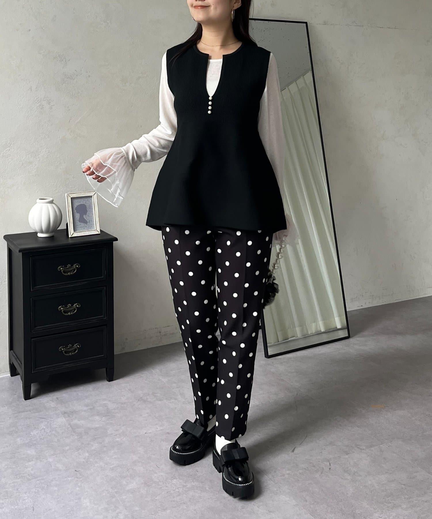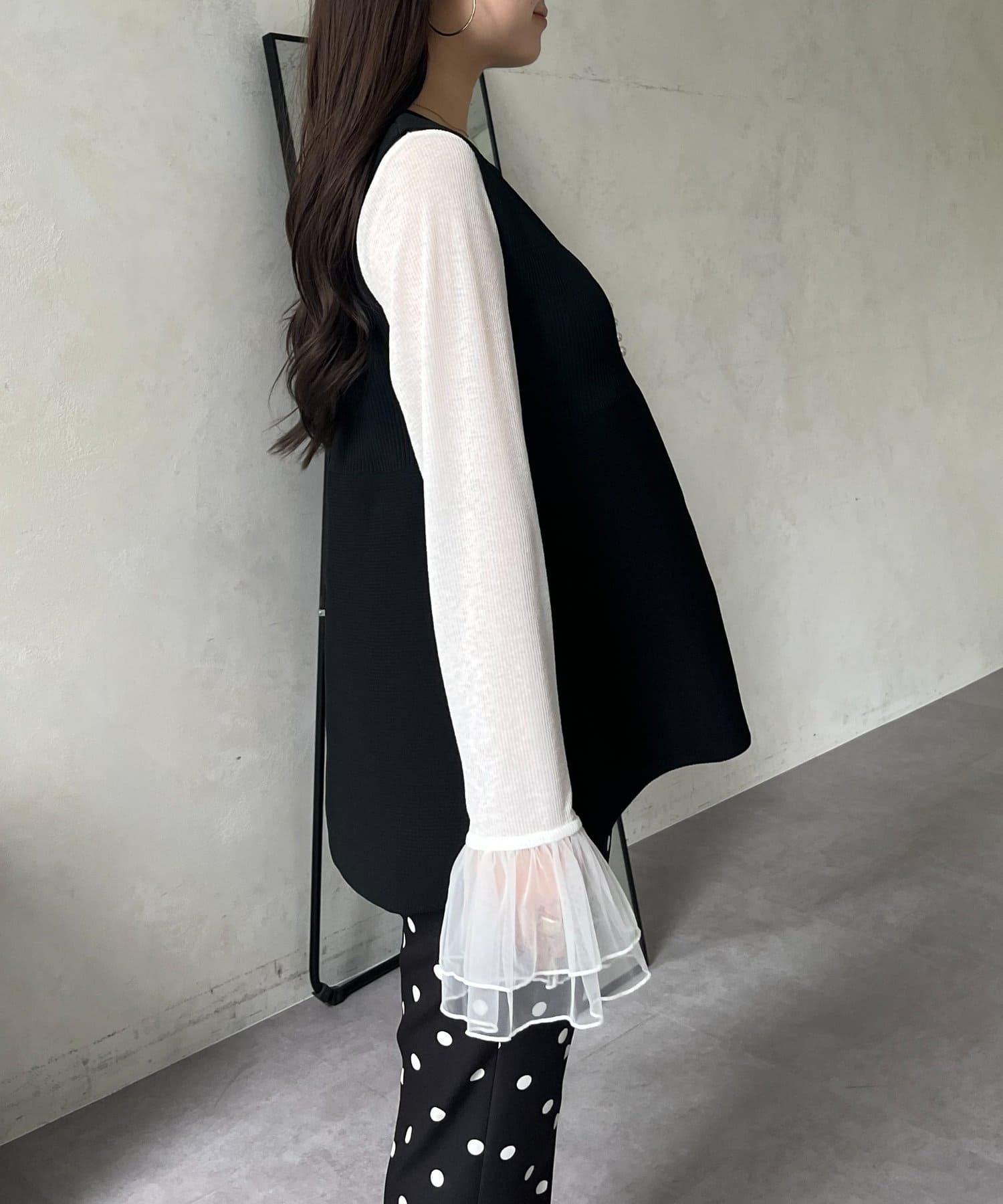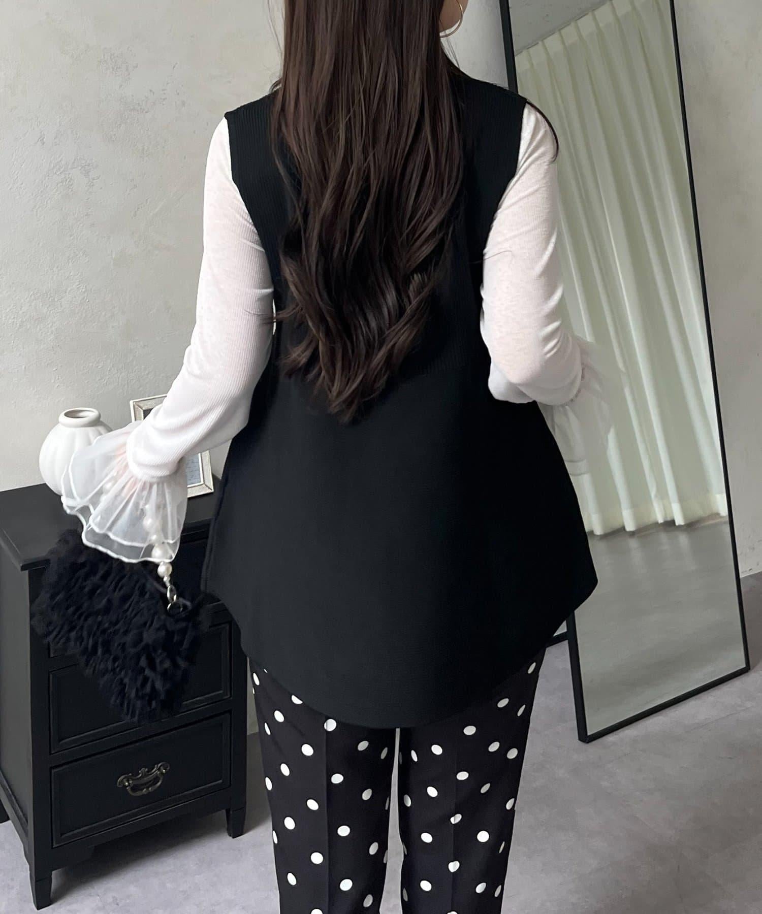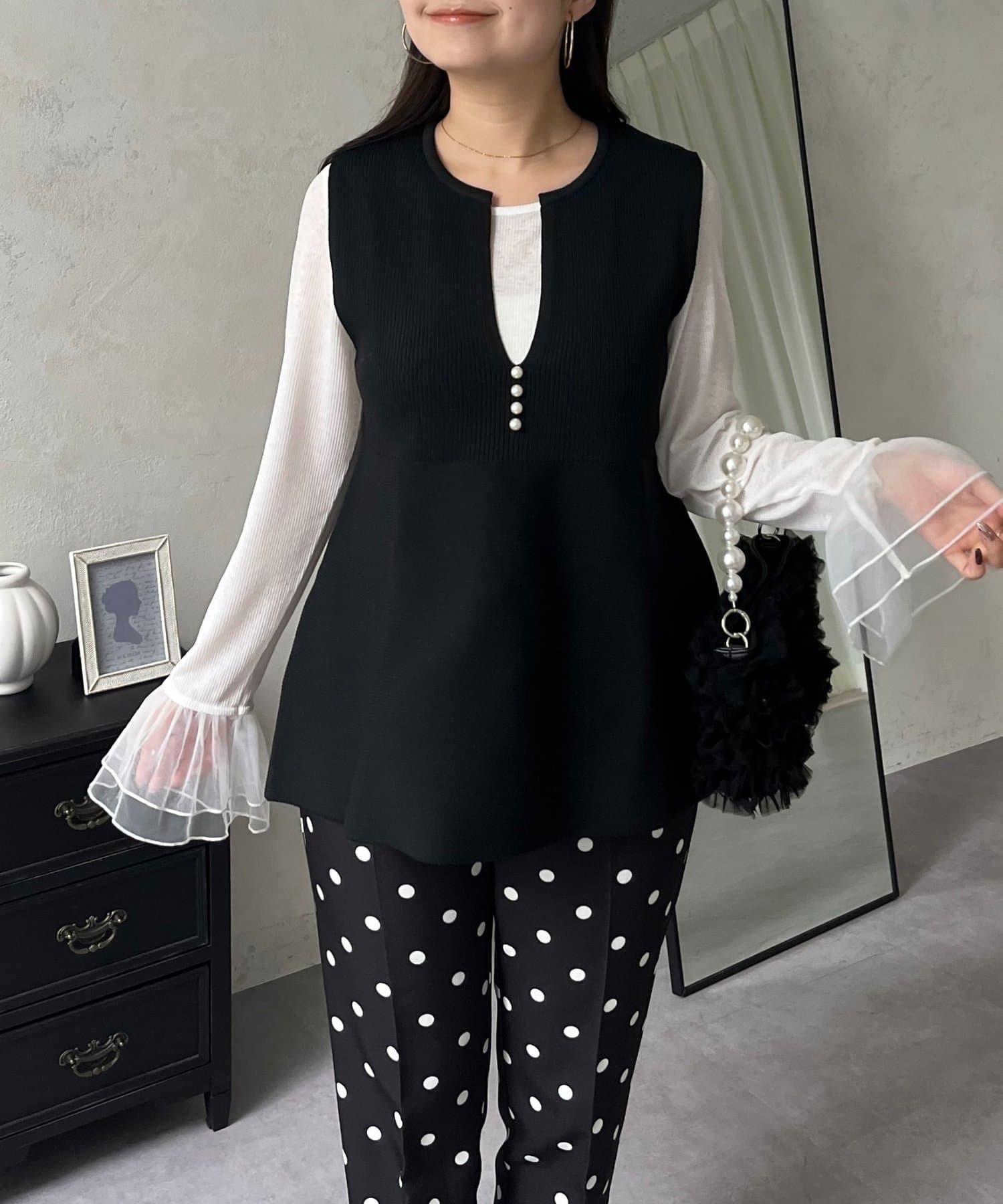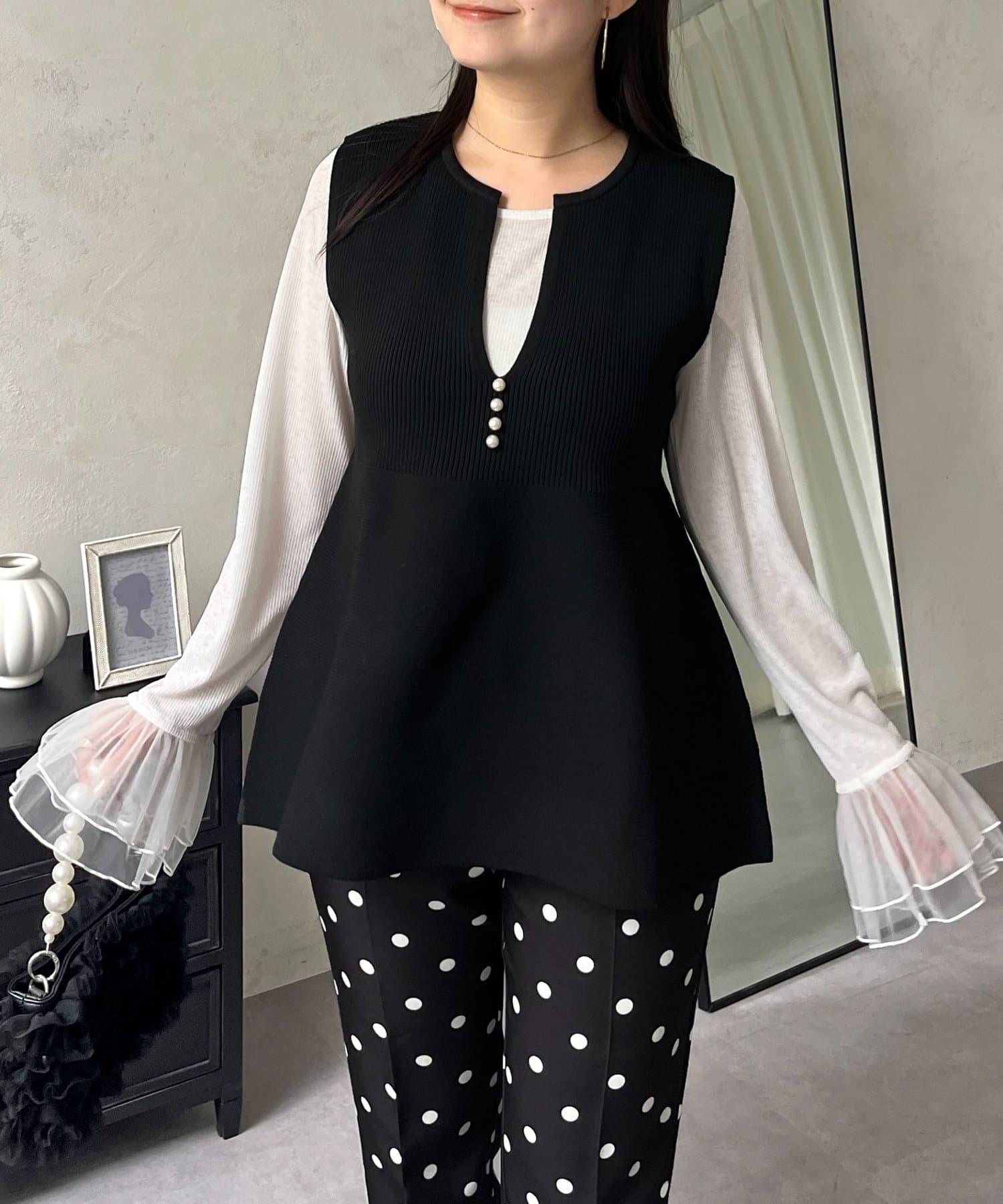 預約商品前珍珠裝飾深V領荷葉邊針織背心