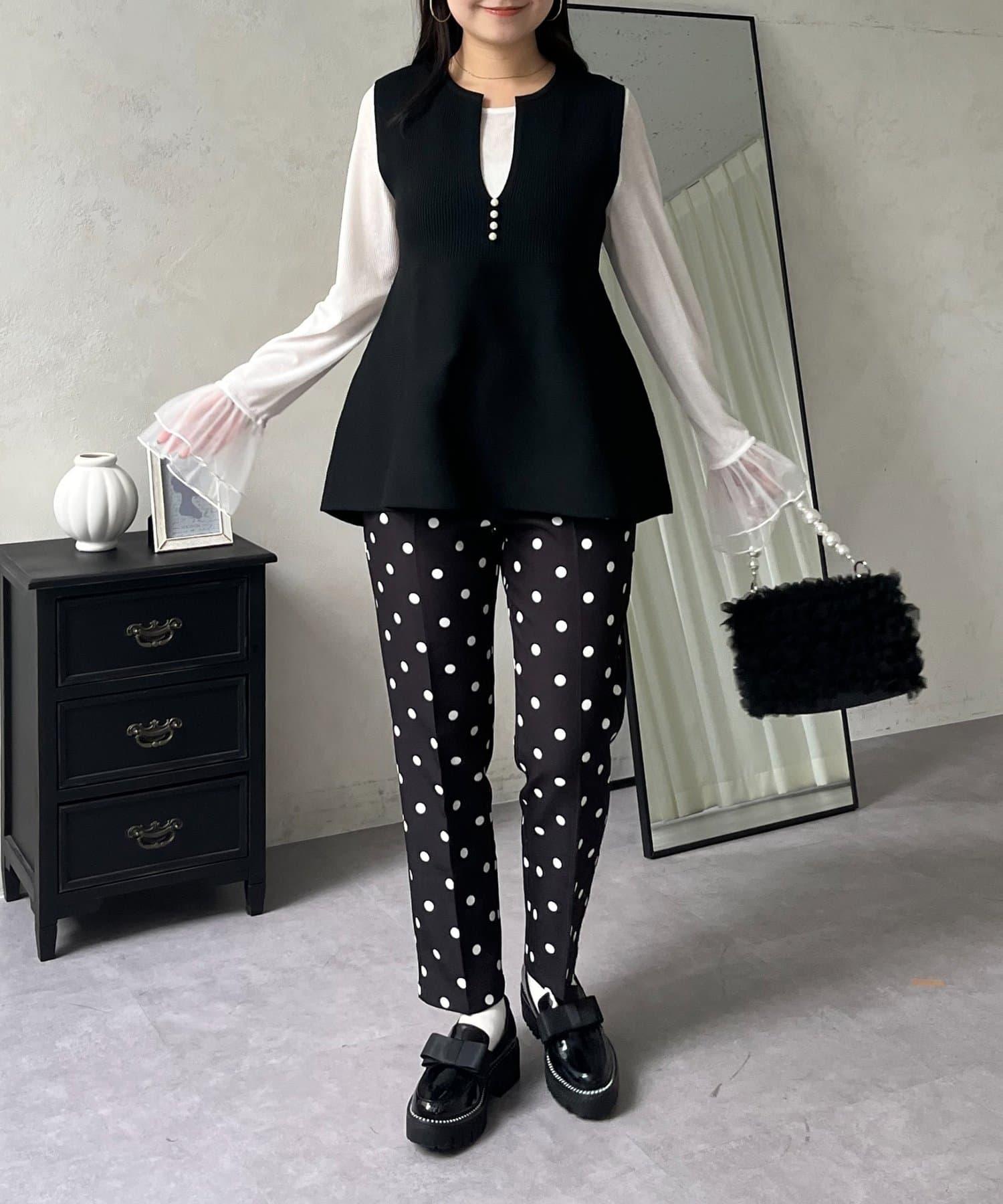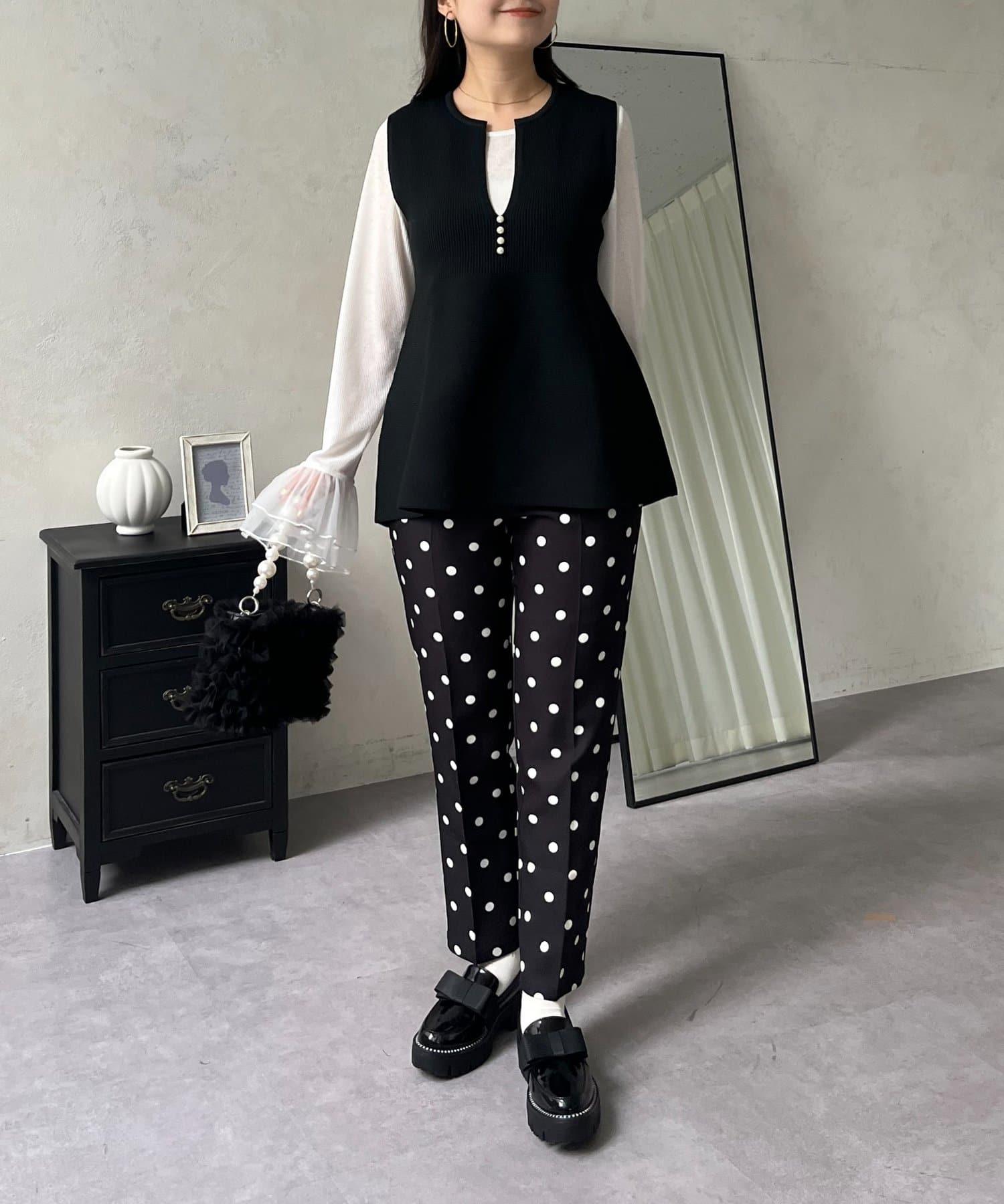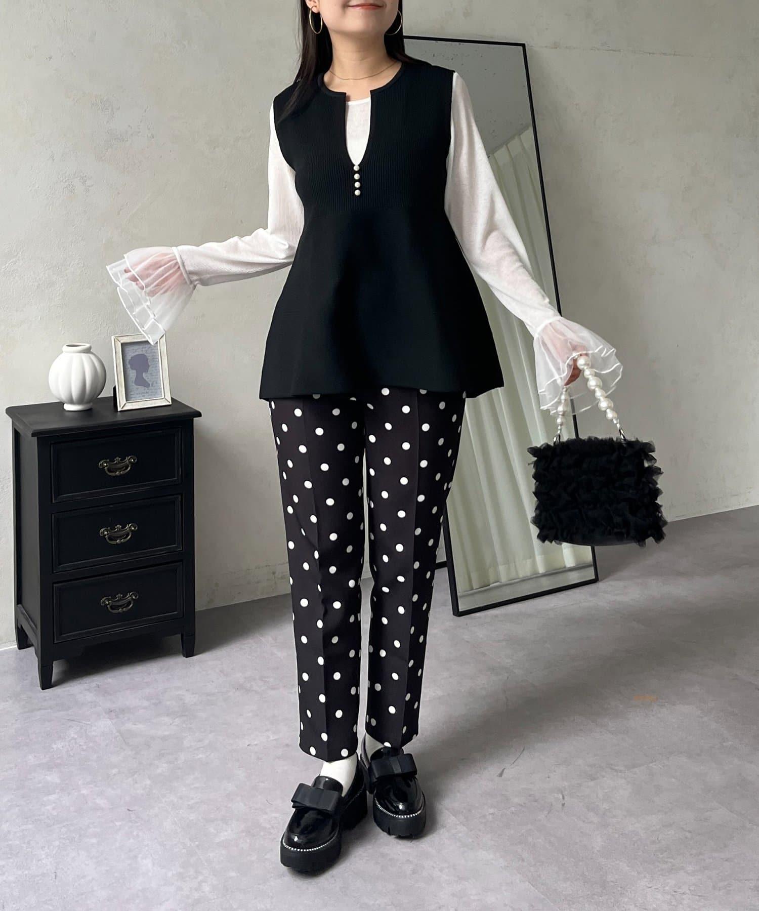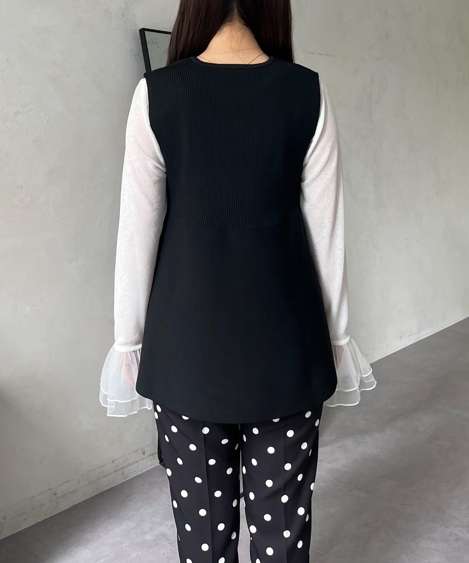 預約商品前珍珠裝飾深V領荷葉邊針織背心