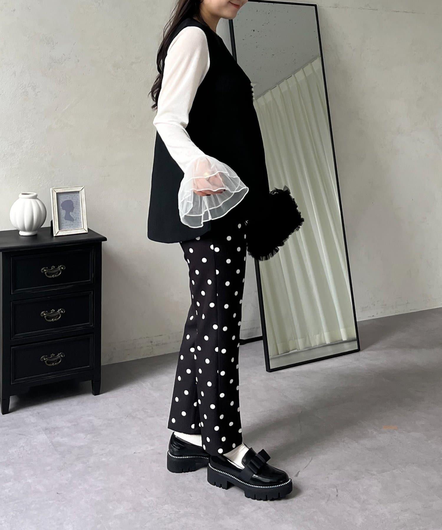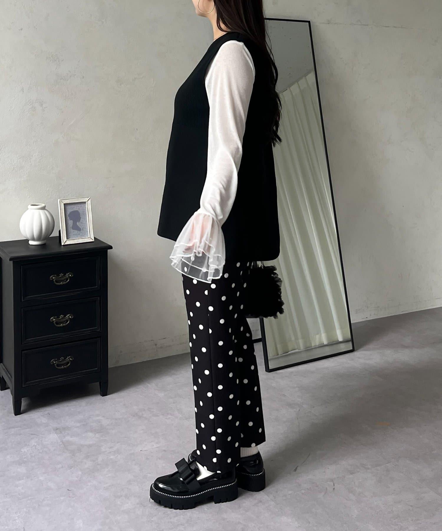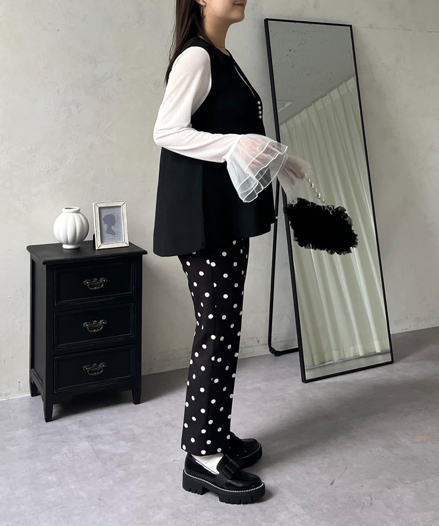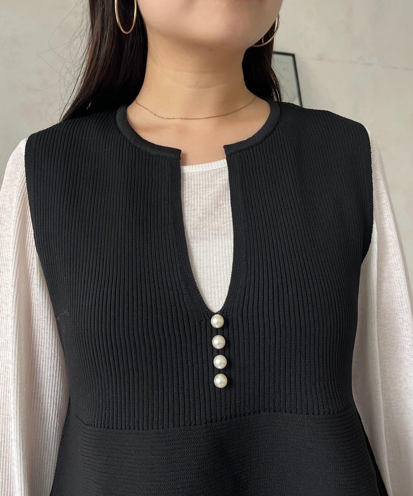 預約商品前珍珠裝飾深V領荷葉邊針織背心