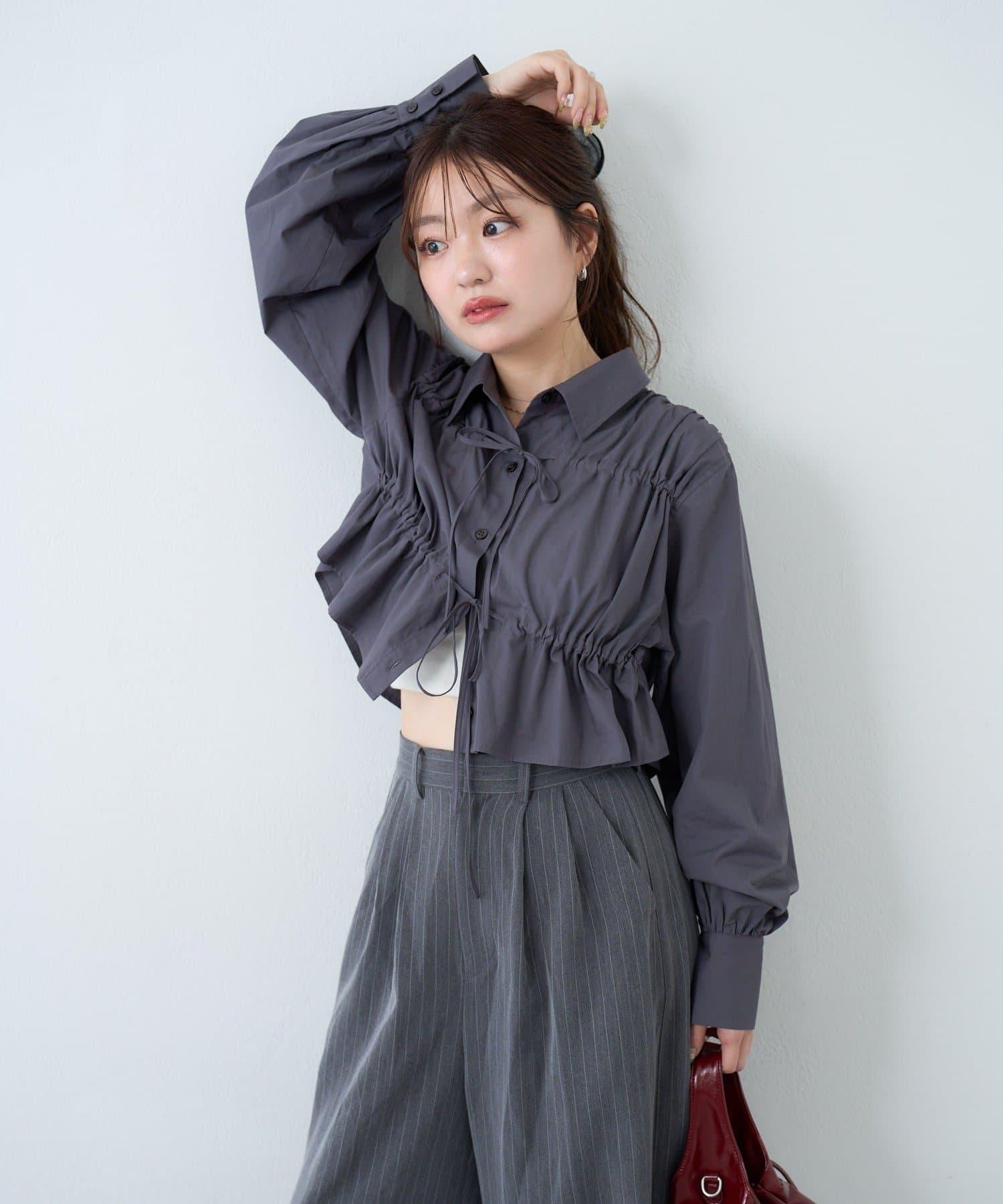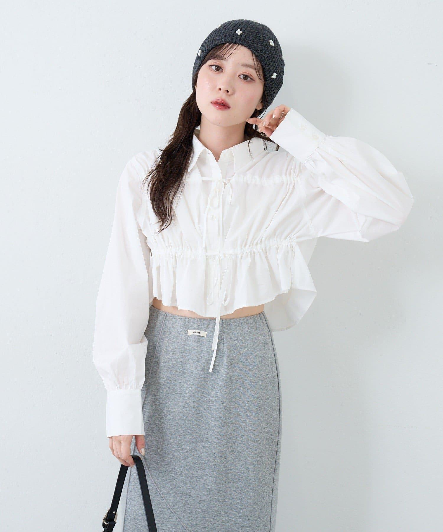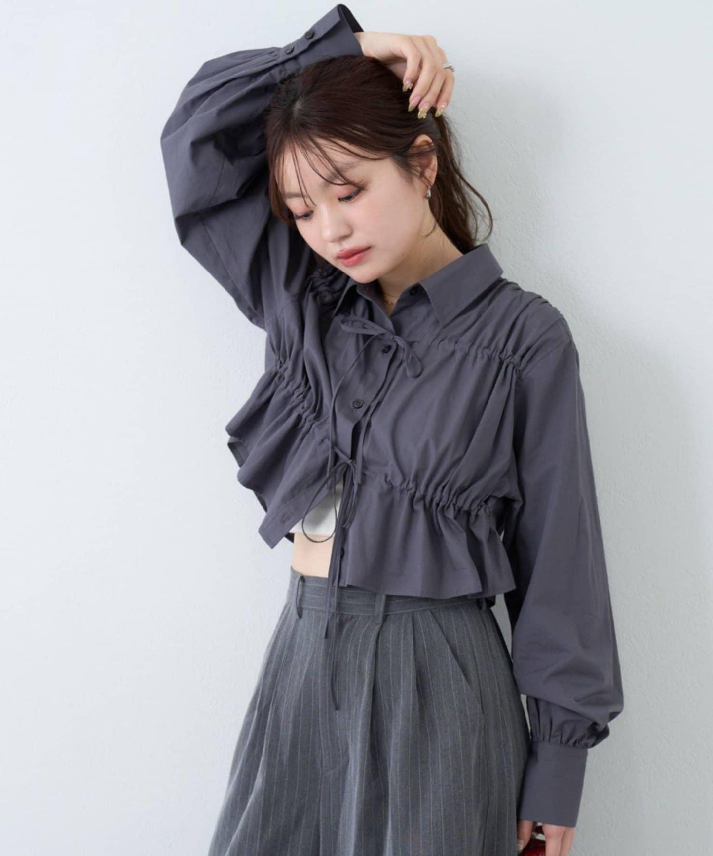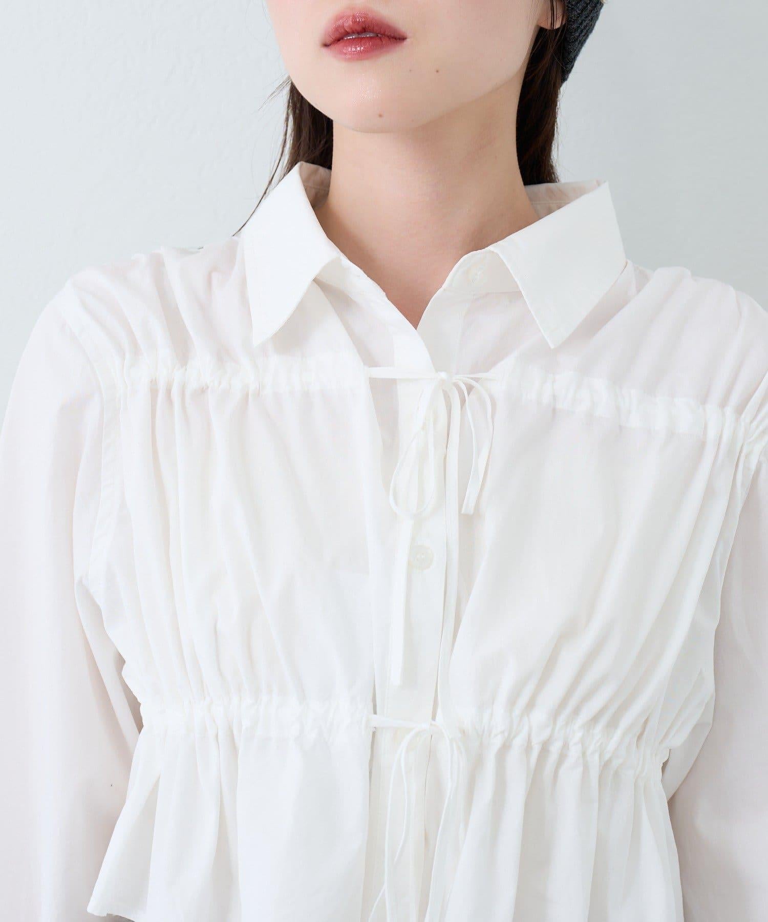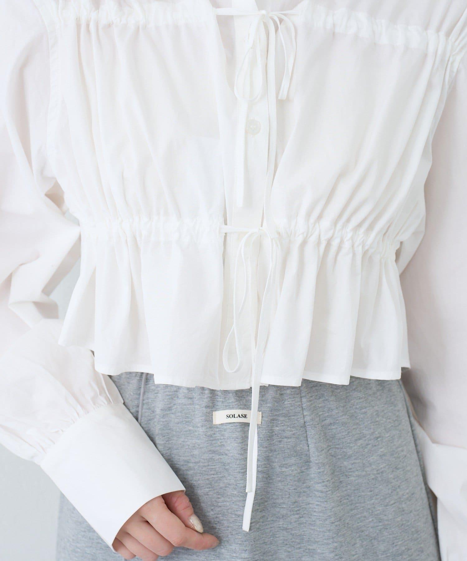 前面的緞帶可以調節,因此您可以改變廓形,打造不同的造型。