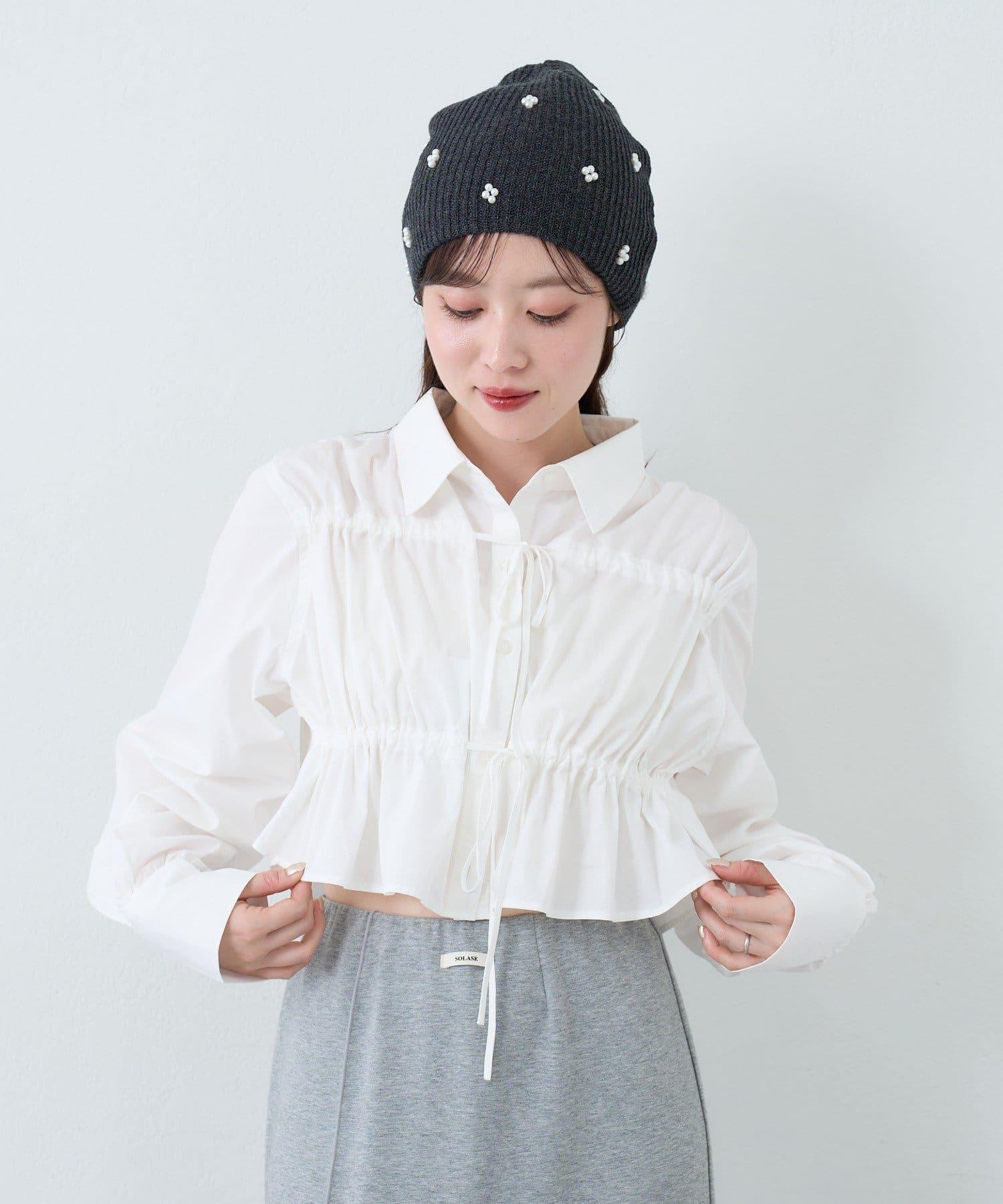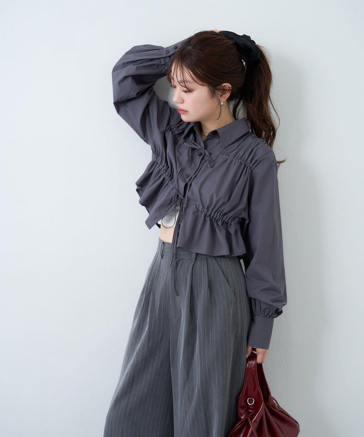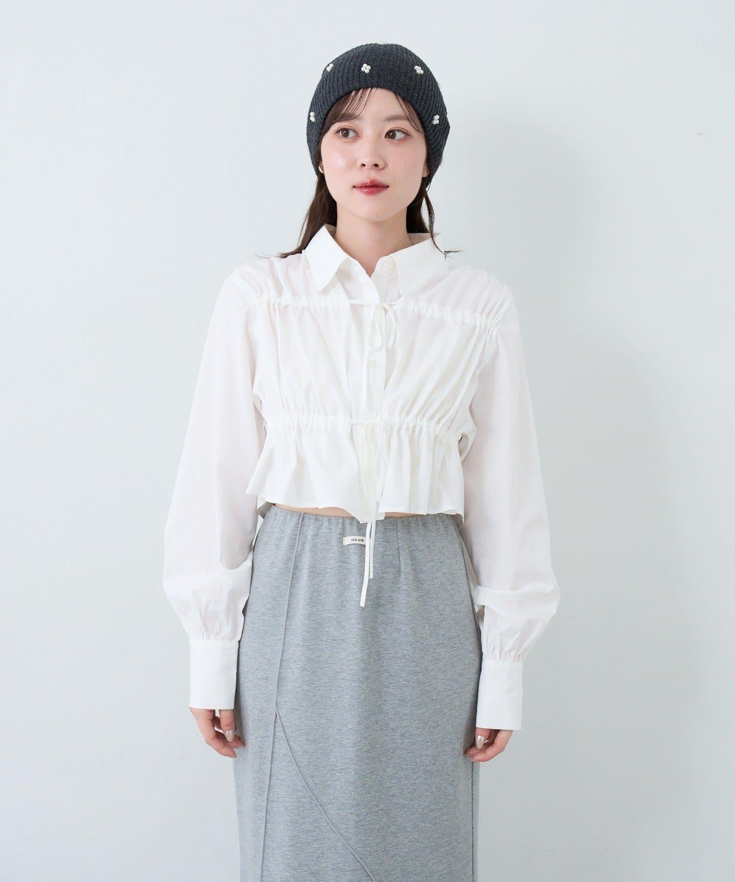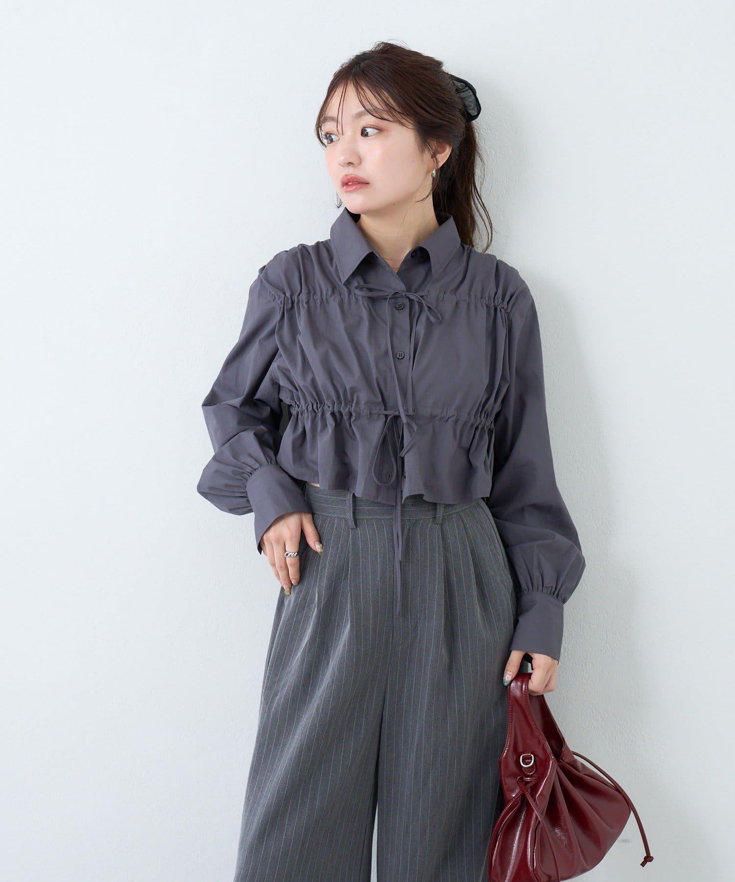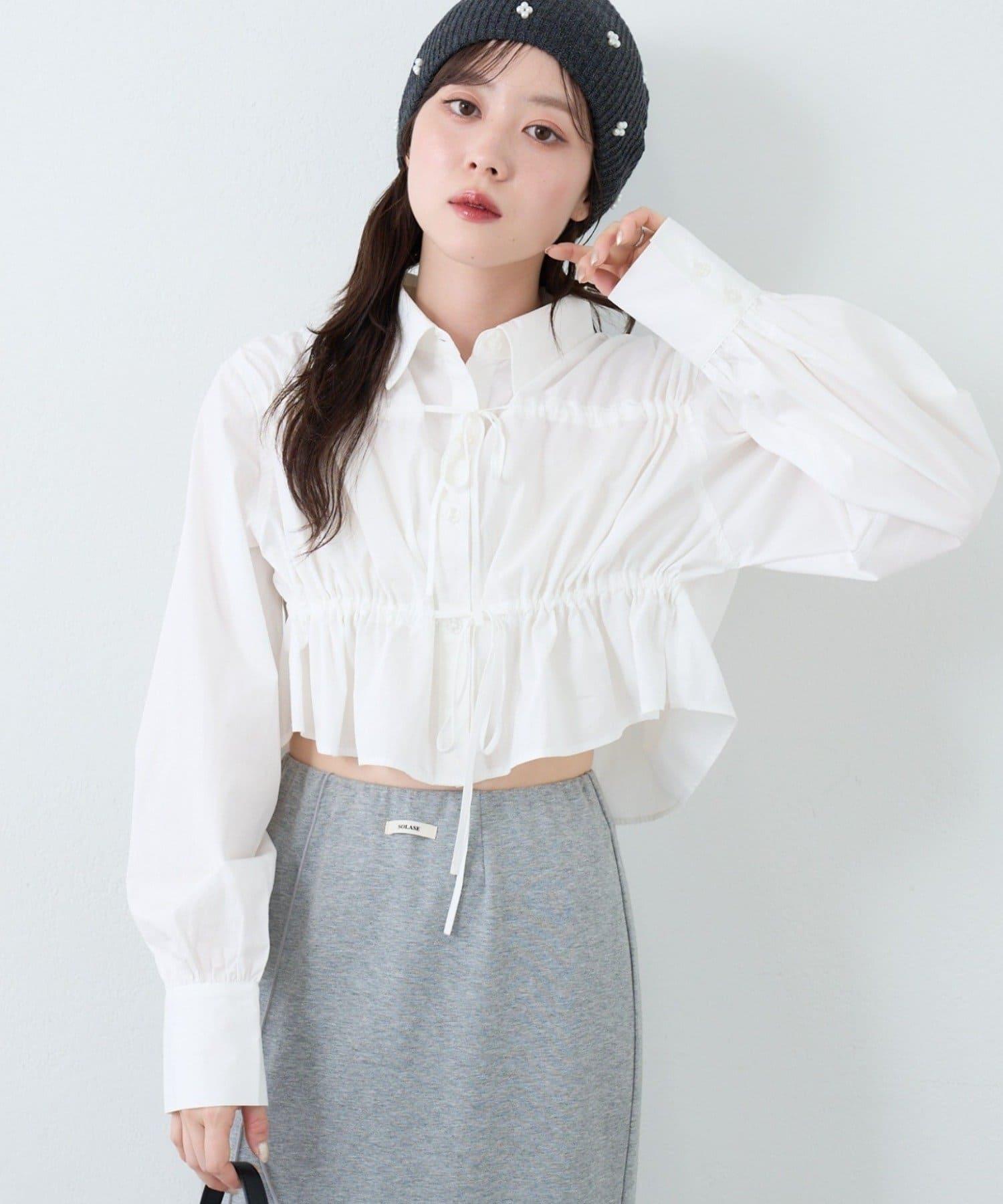 前面的緞帶可以調節,因此您可以改變廓形,打造不同的造型。