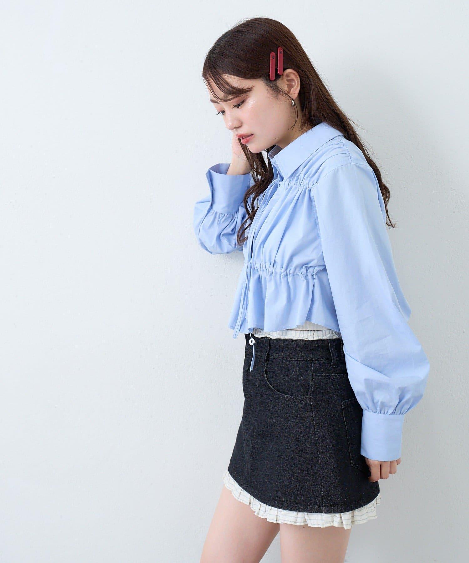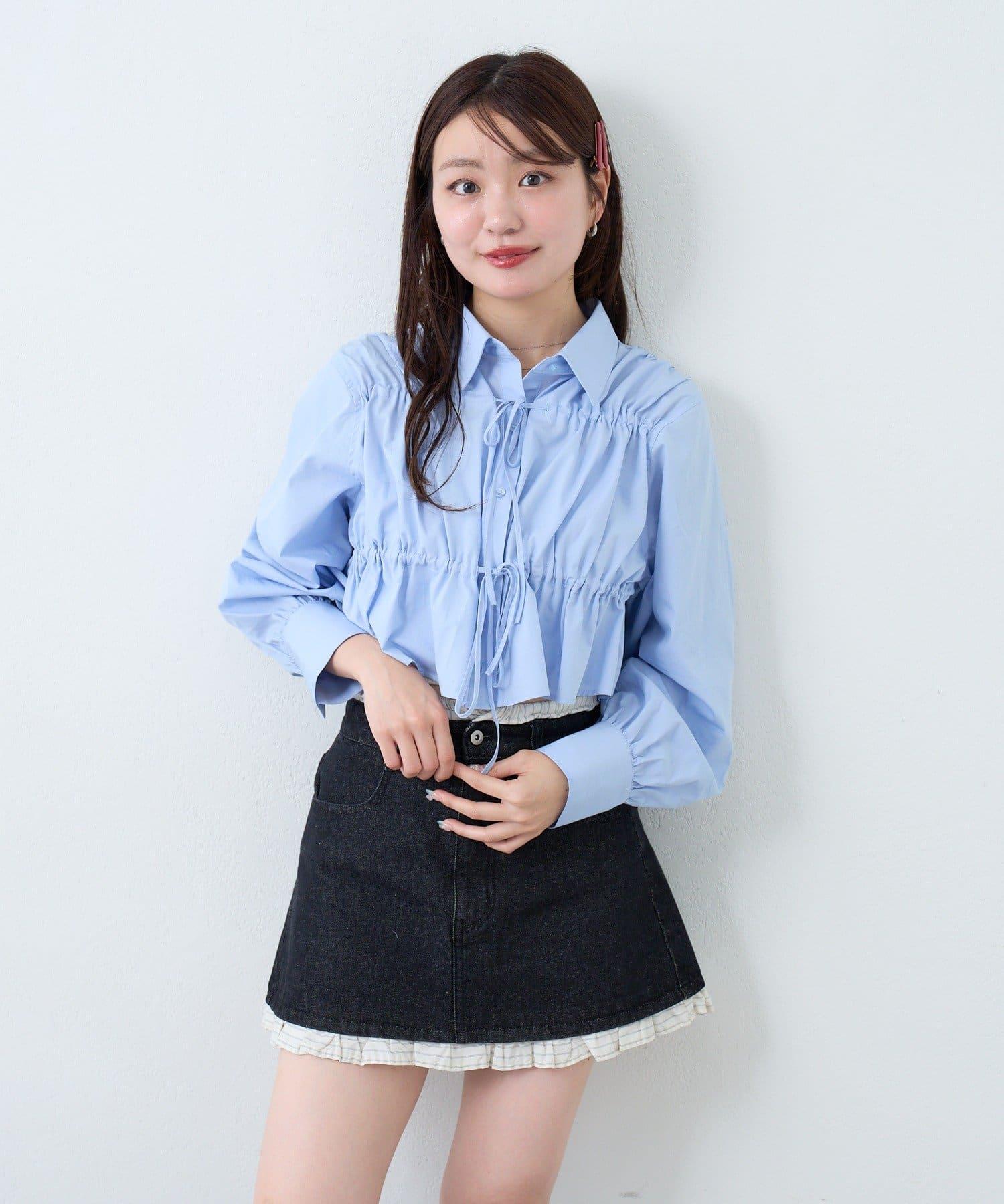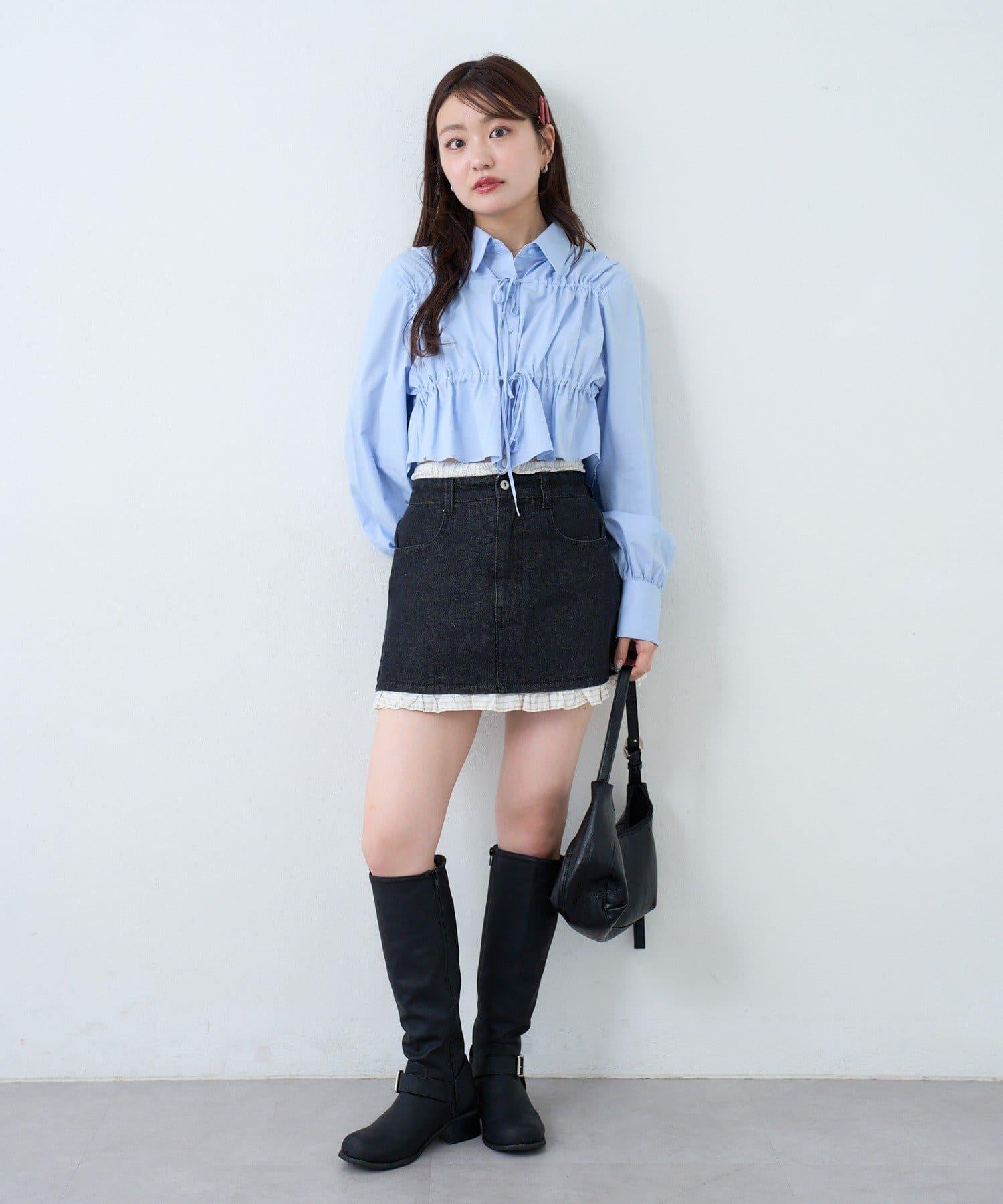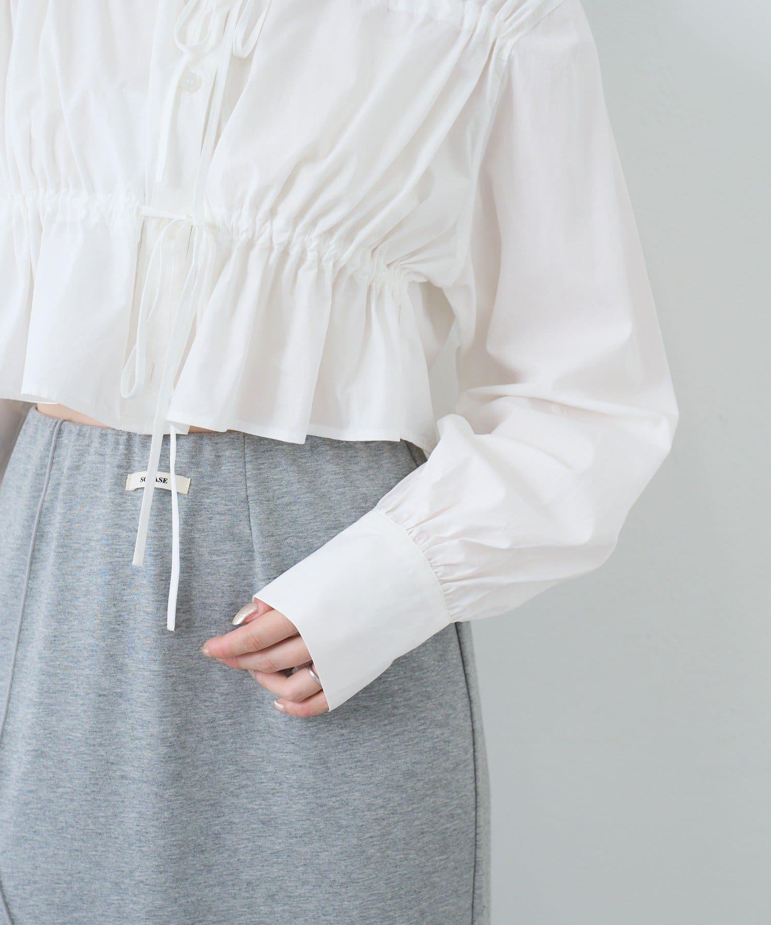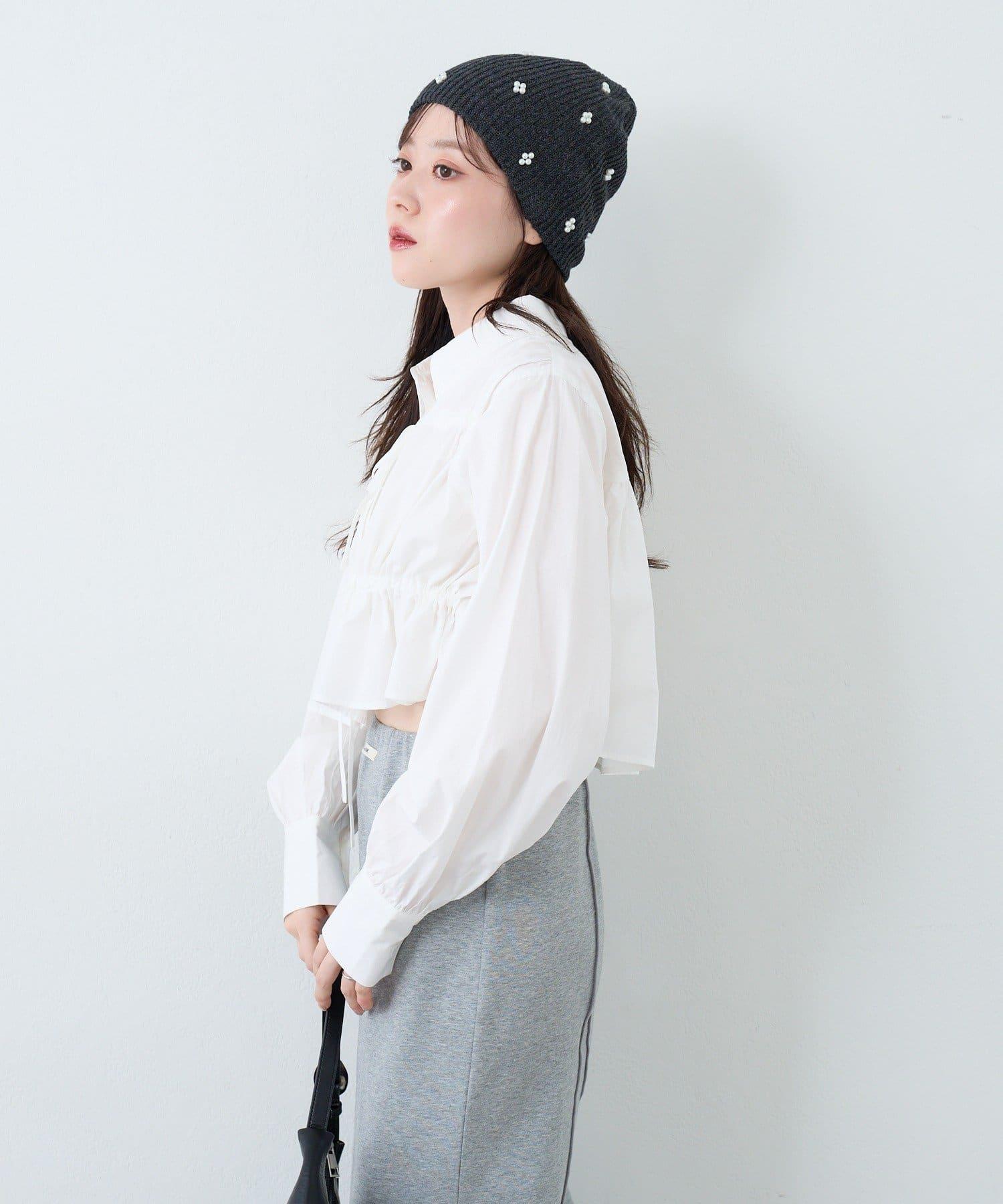 前面的緞帶可以調節,因此您可以改變廓形,打造不同的造型。