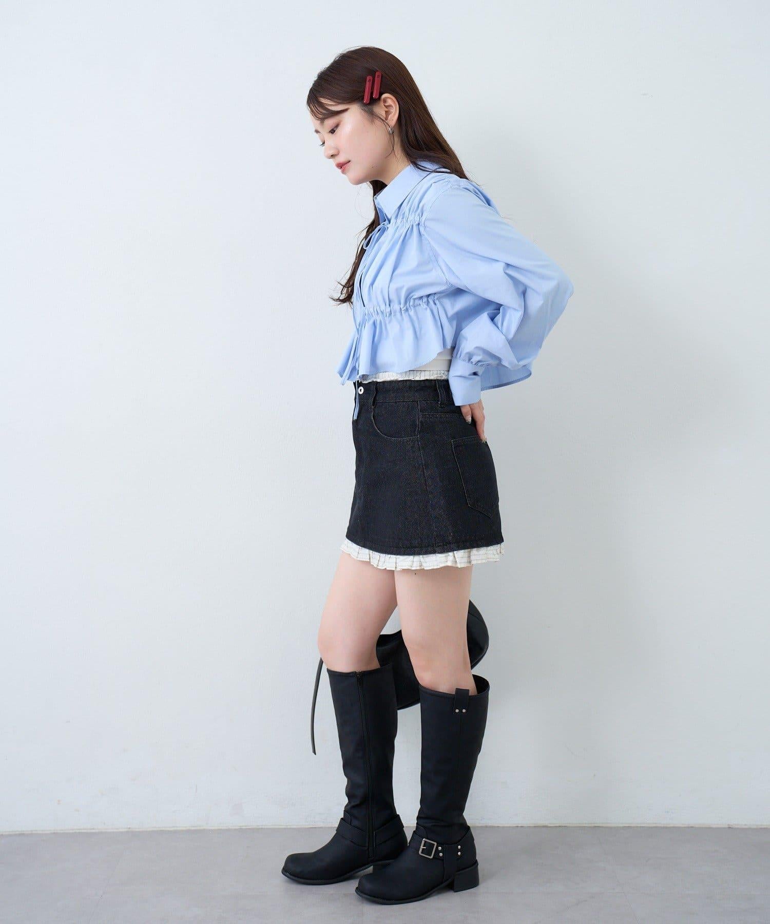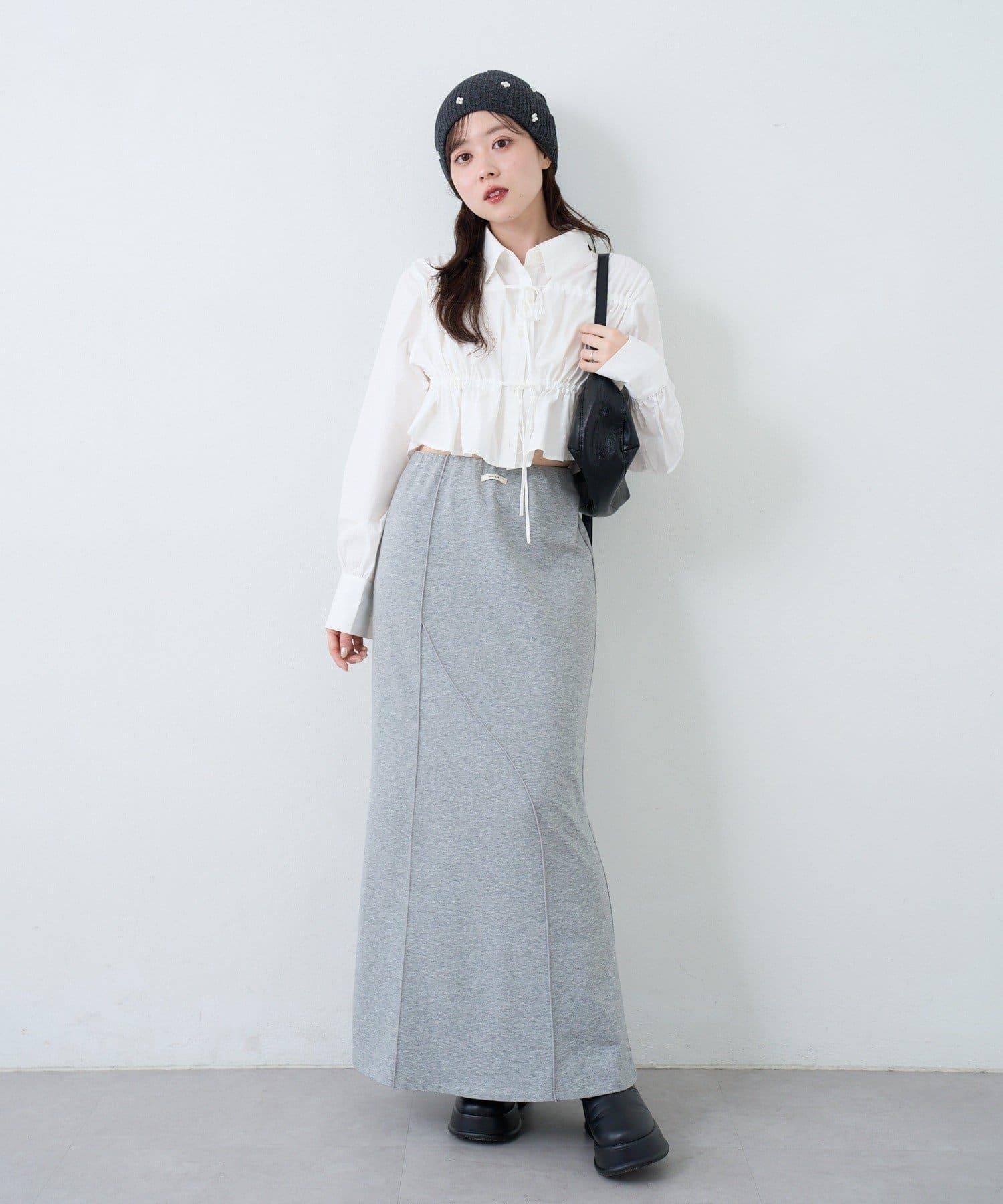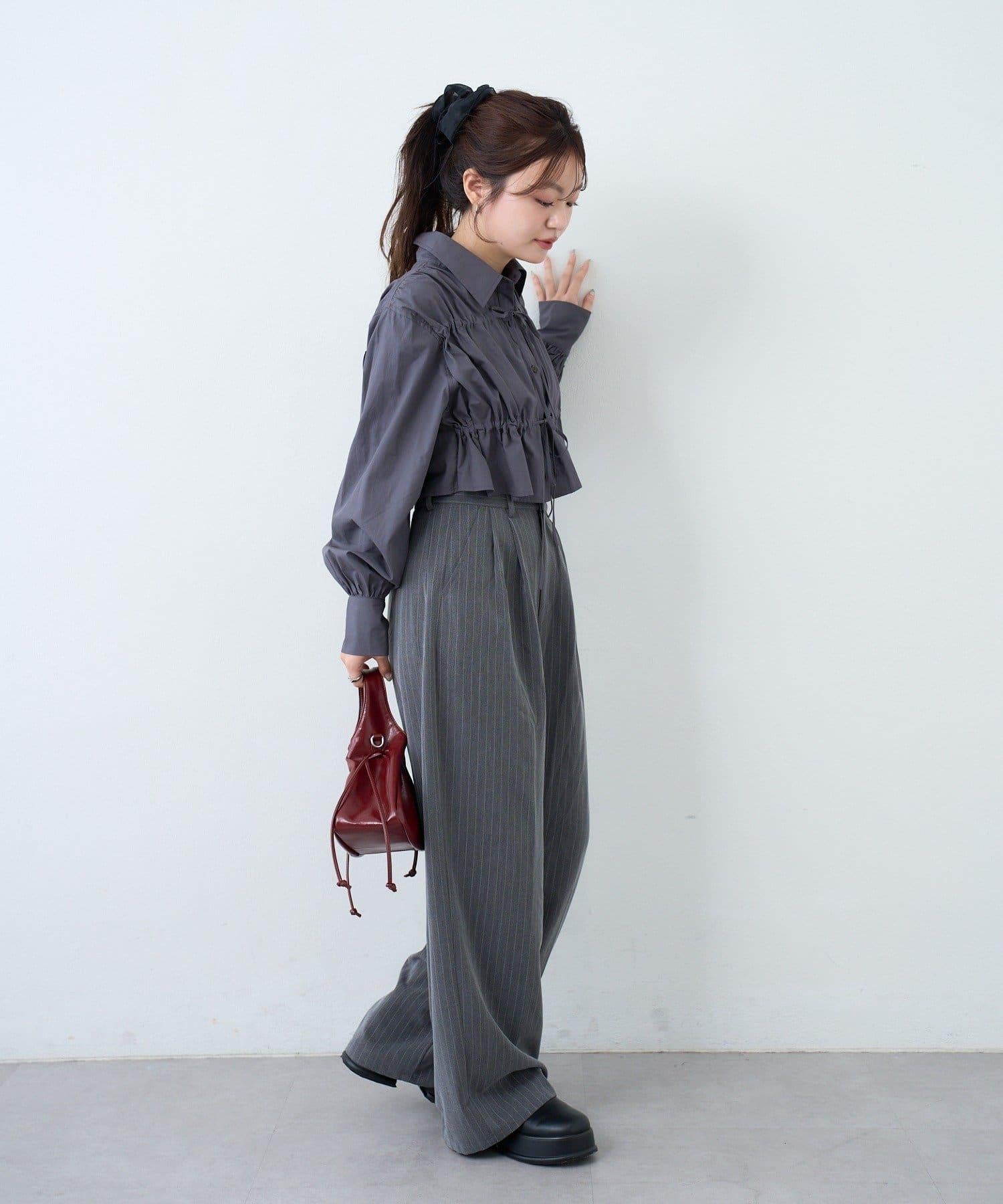 短小時尚的長度與寬大廓形的下裝相得益彰。