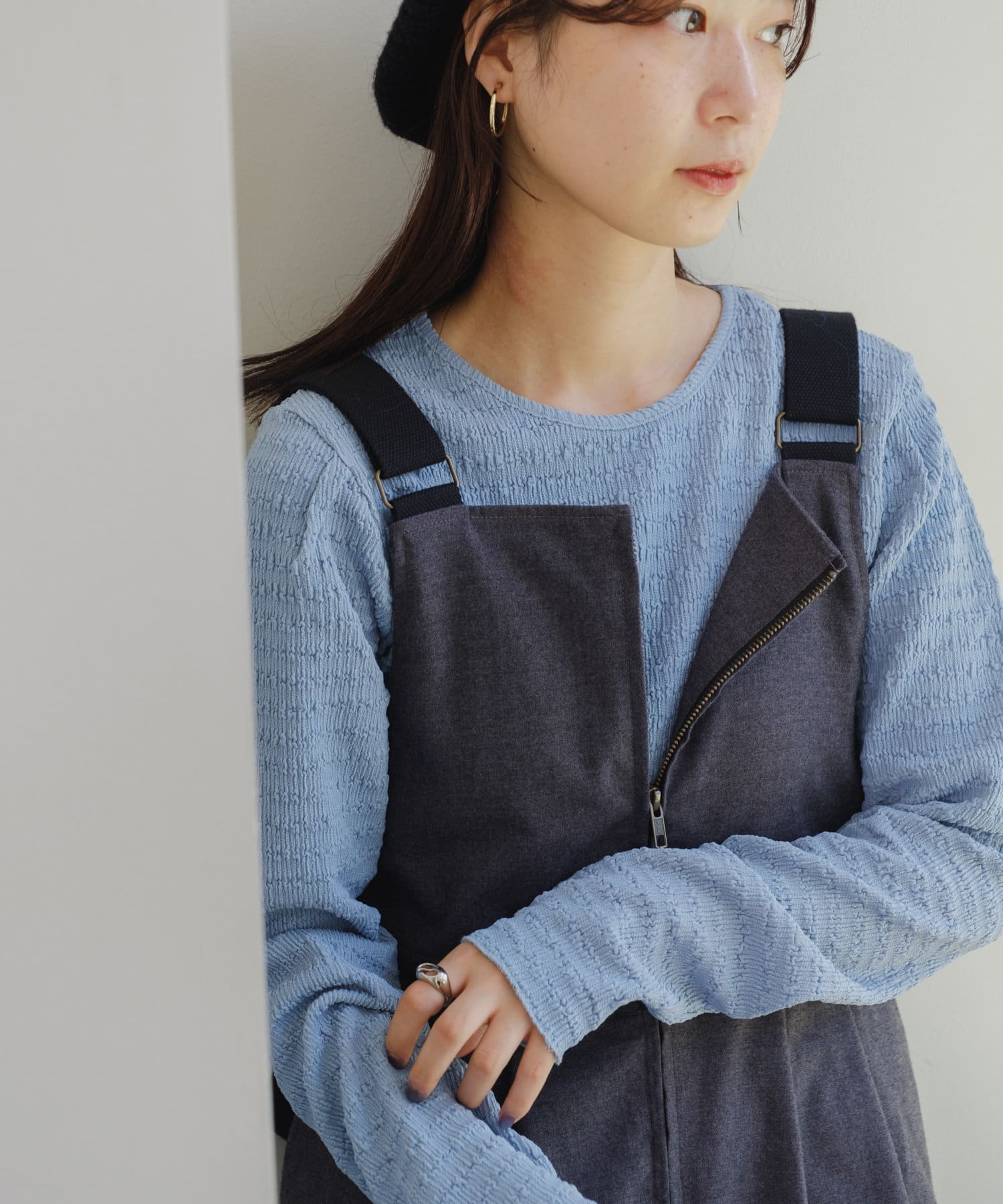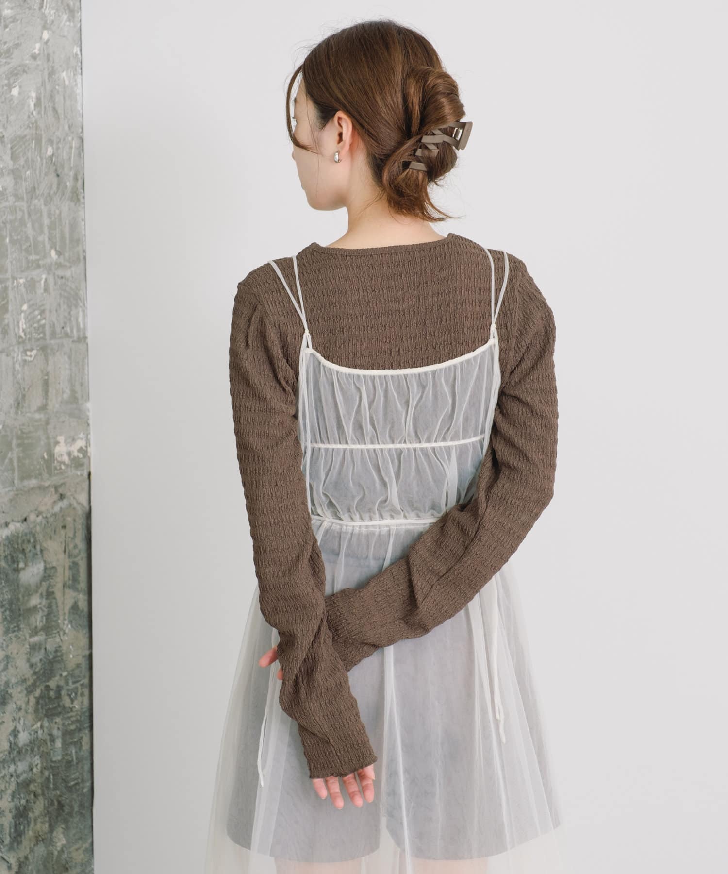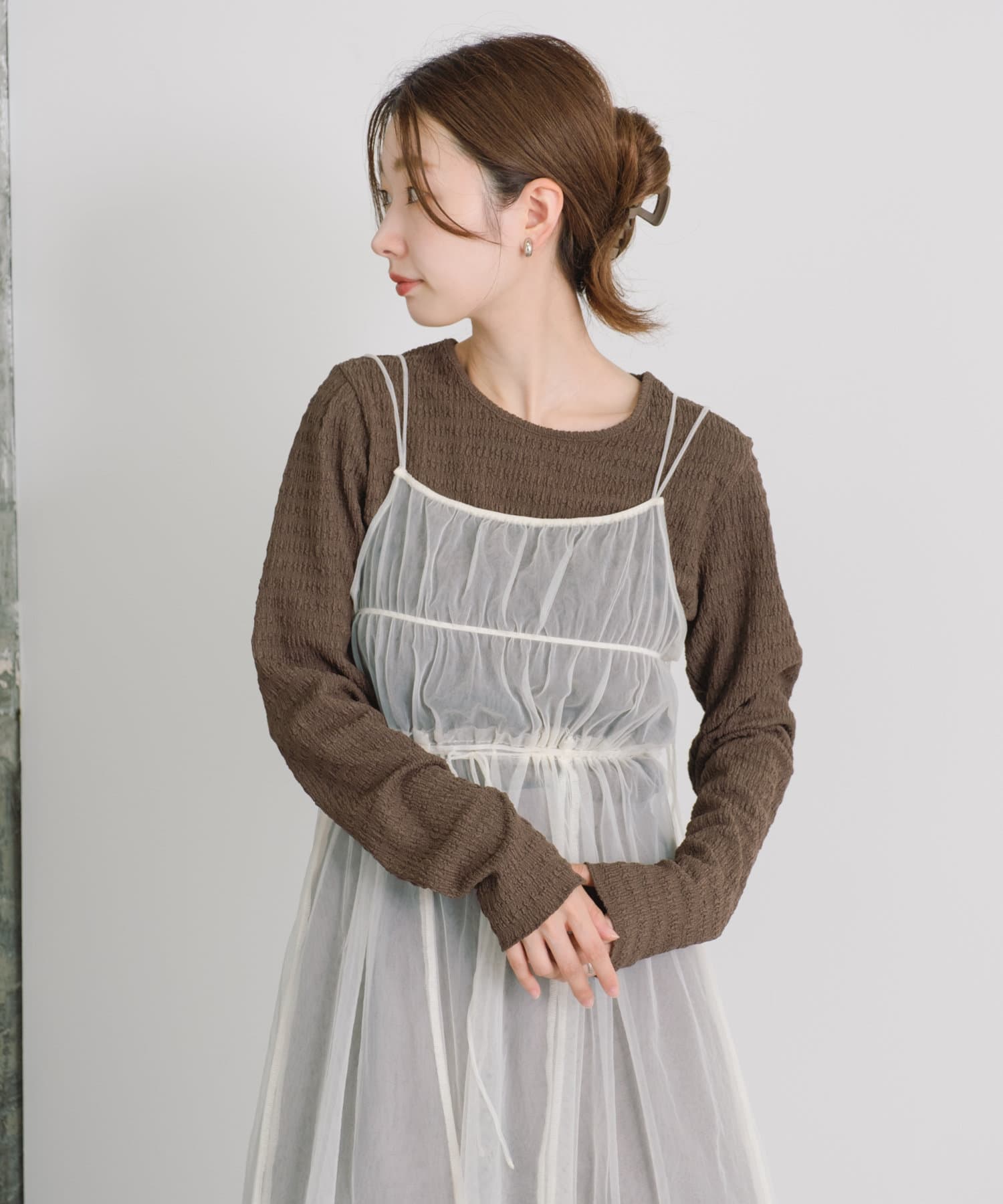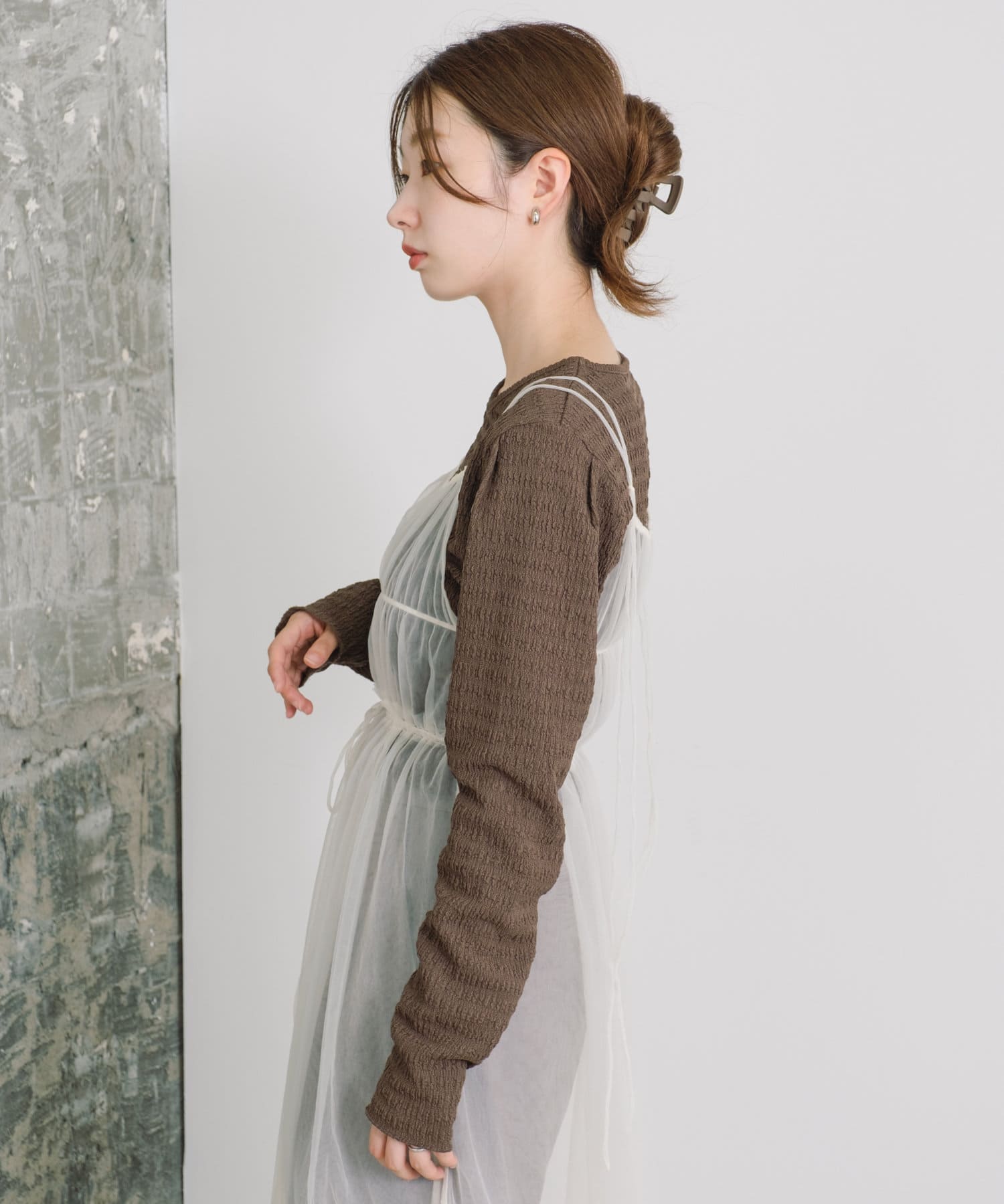 這種面料作為外套或吊帶裙的內搭時,還能突出外套或吊帶裙的外觀。