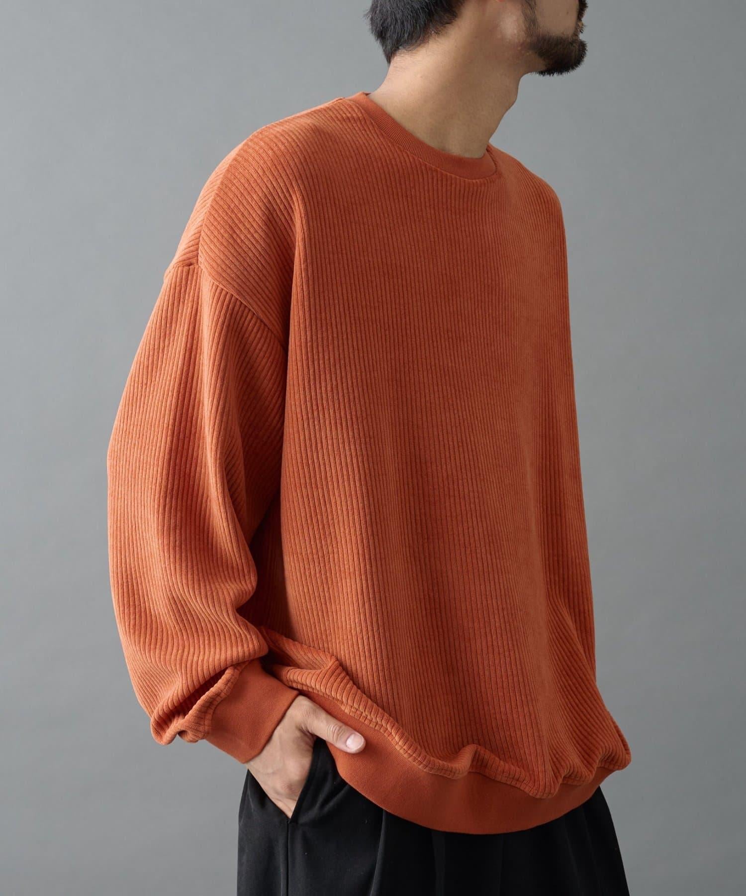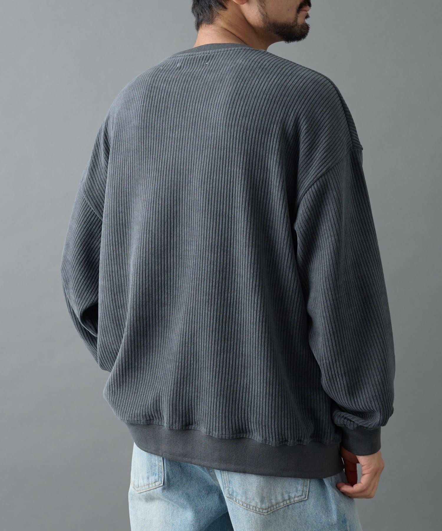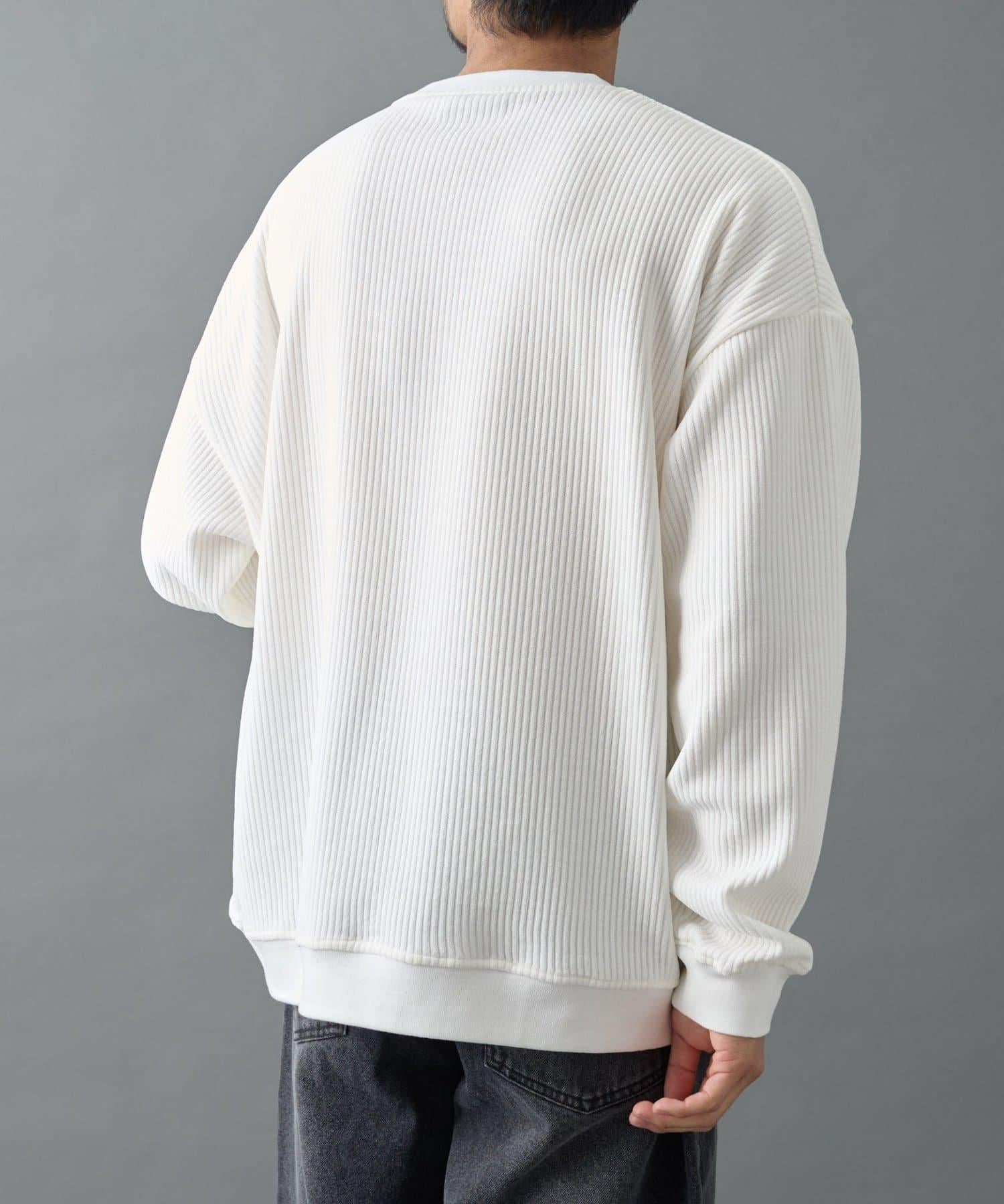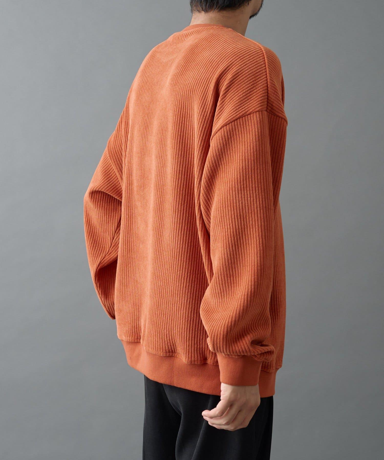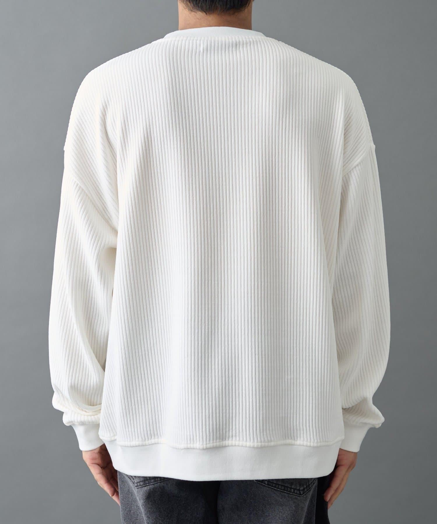 這款圓領衫由燈芯絨面料製成,帶有獨特的垂直脊紋。