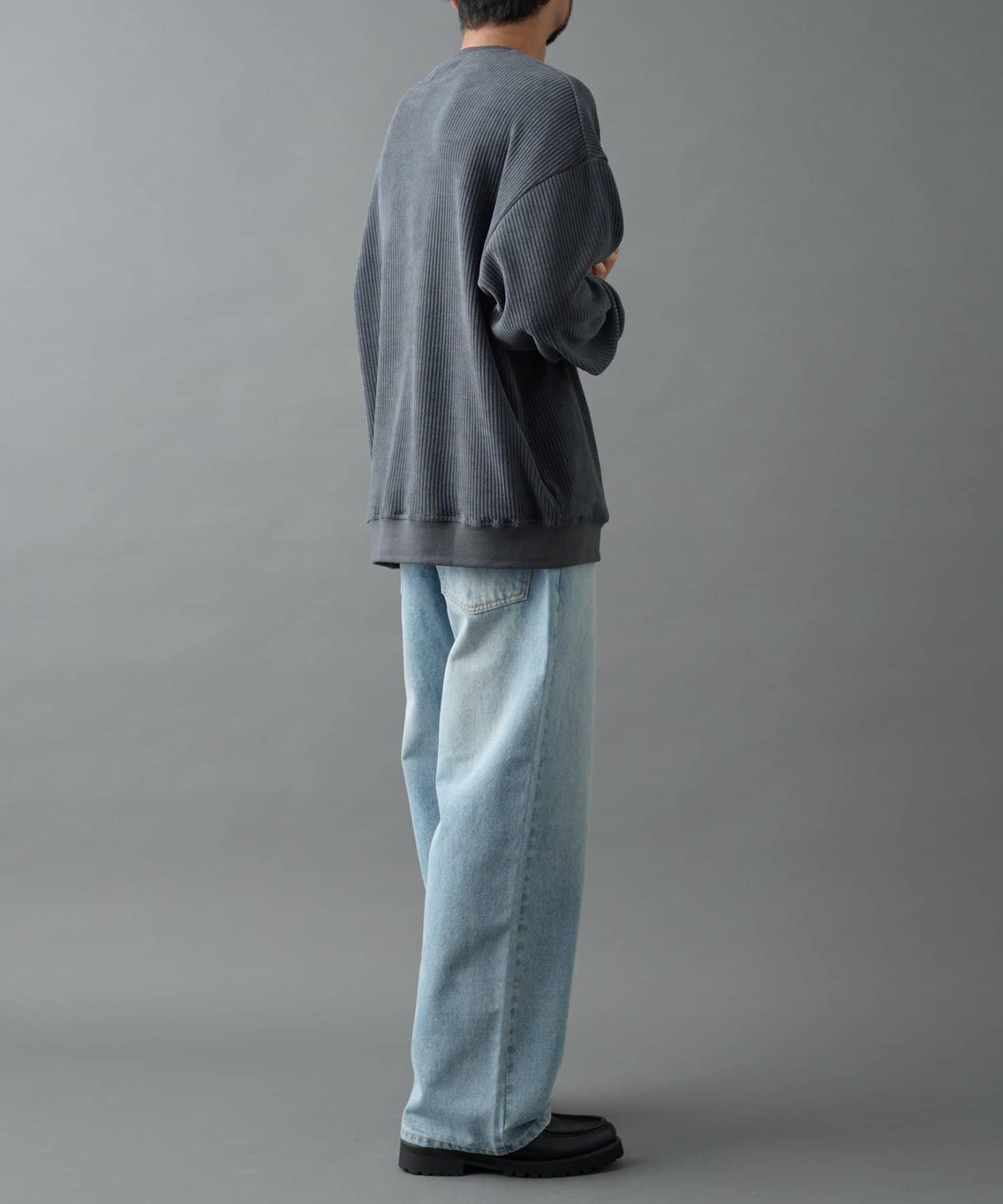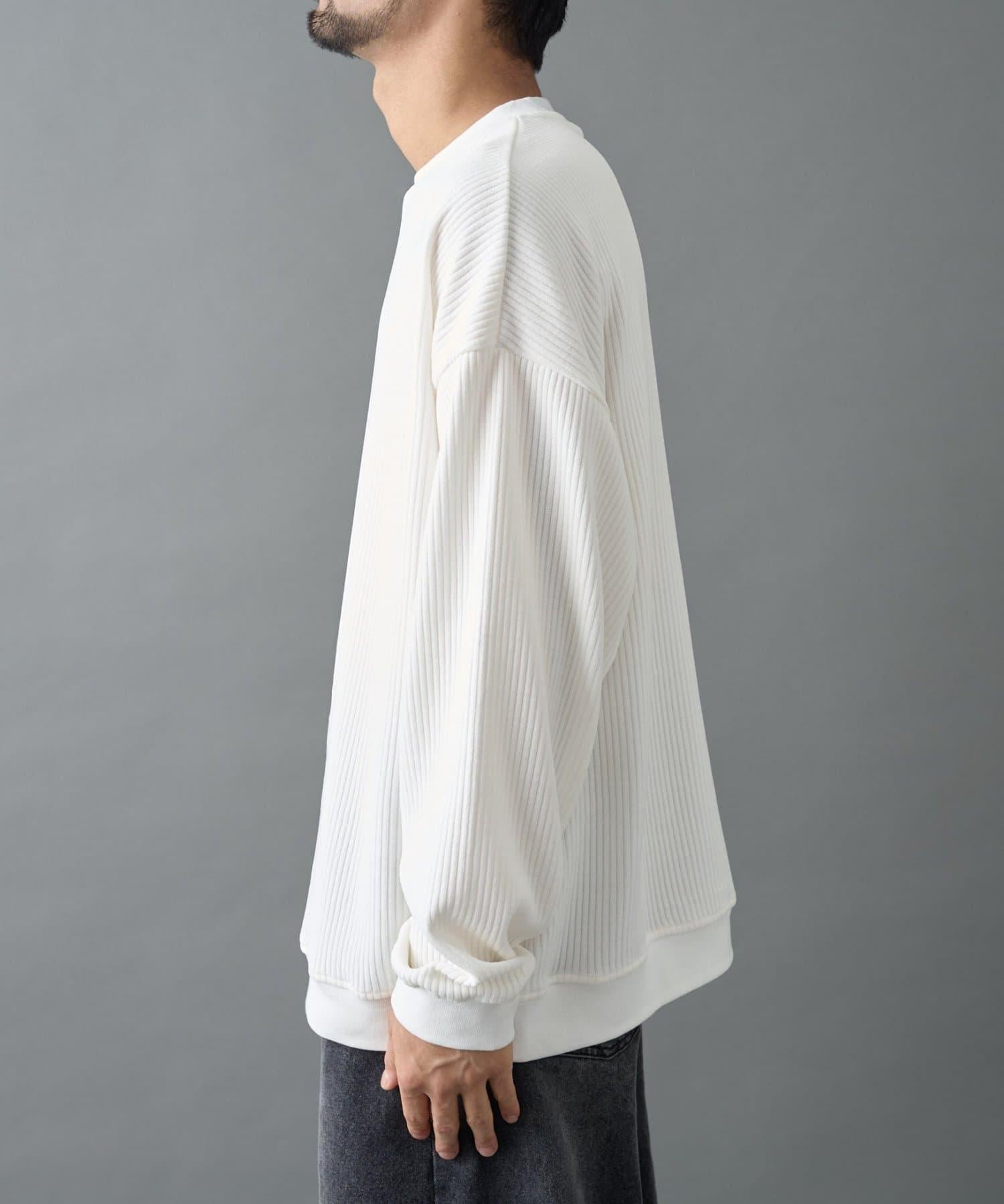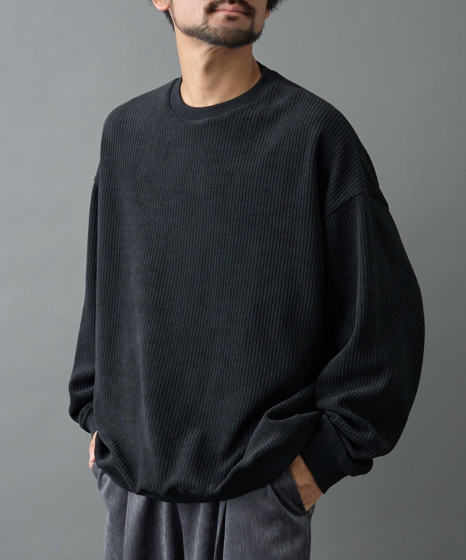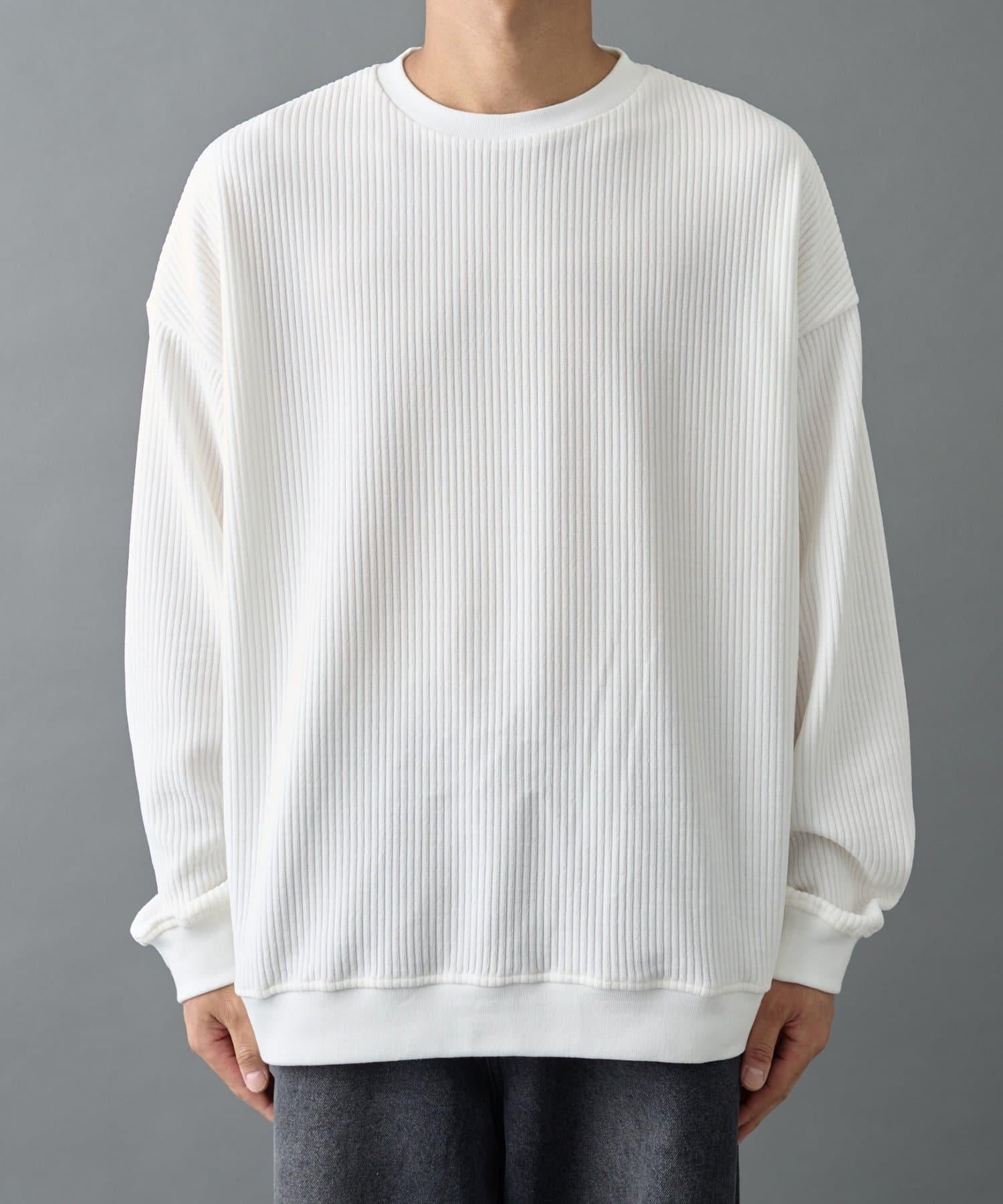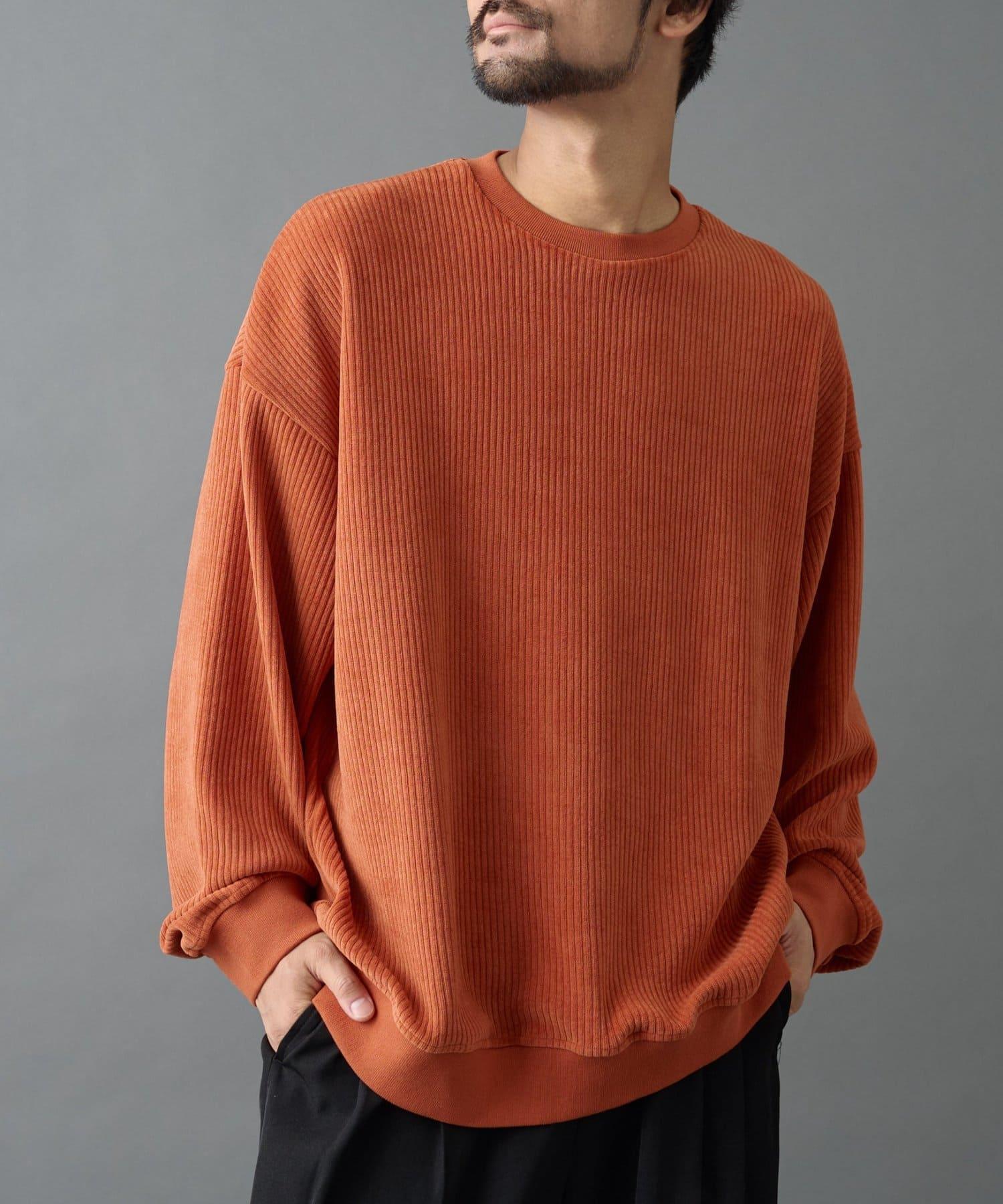 這款圓領衫由燈芯絨面料製成,帶有獨特的垂直脊紋。