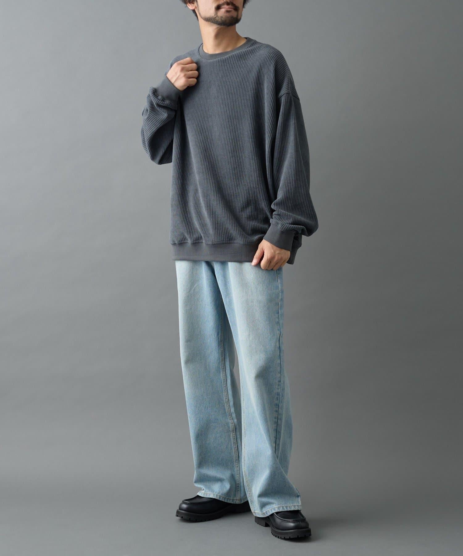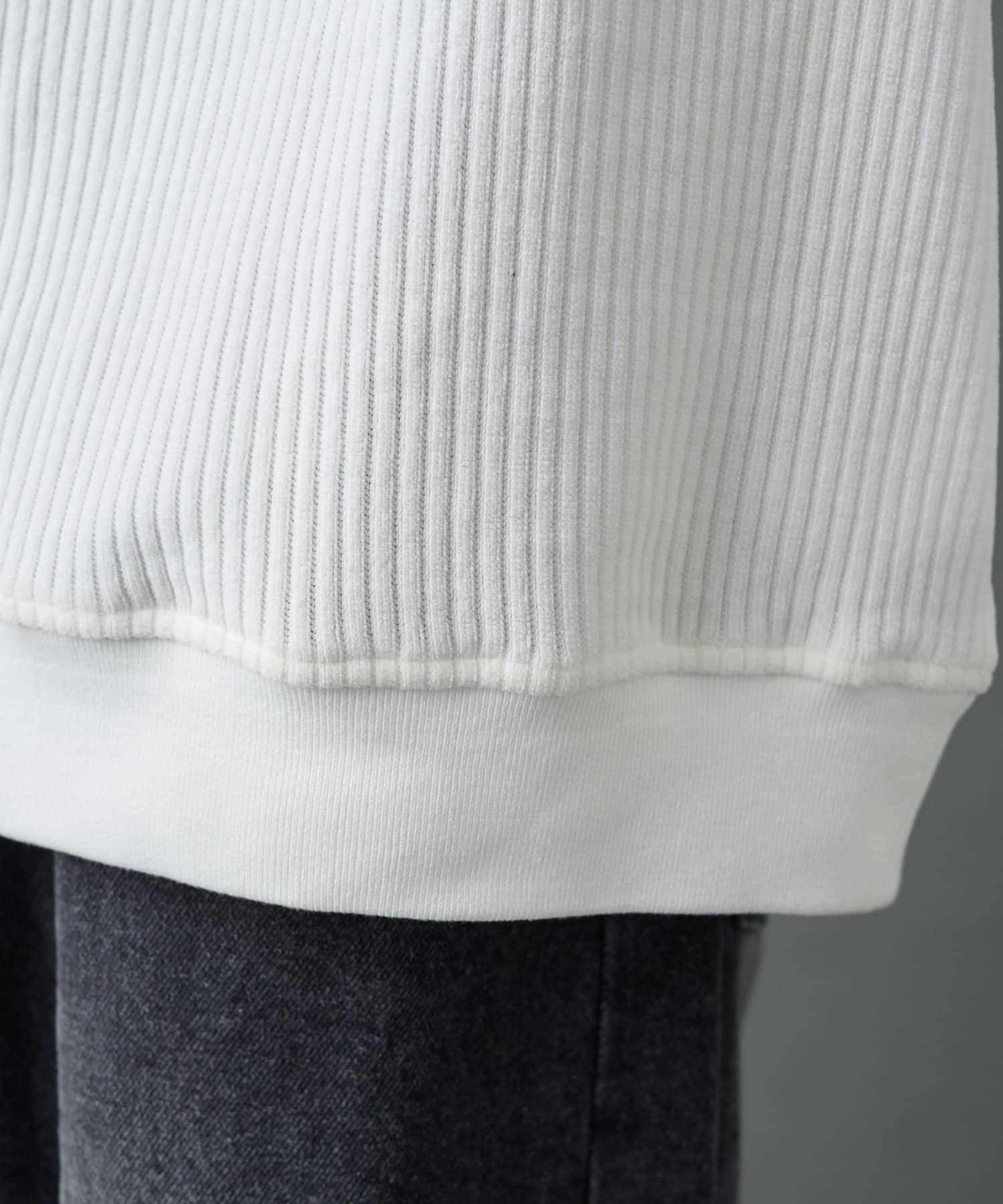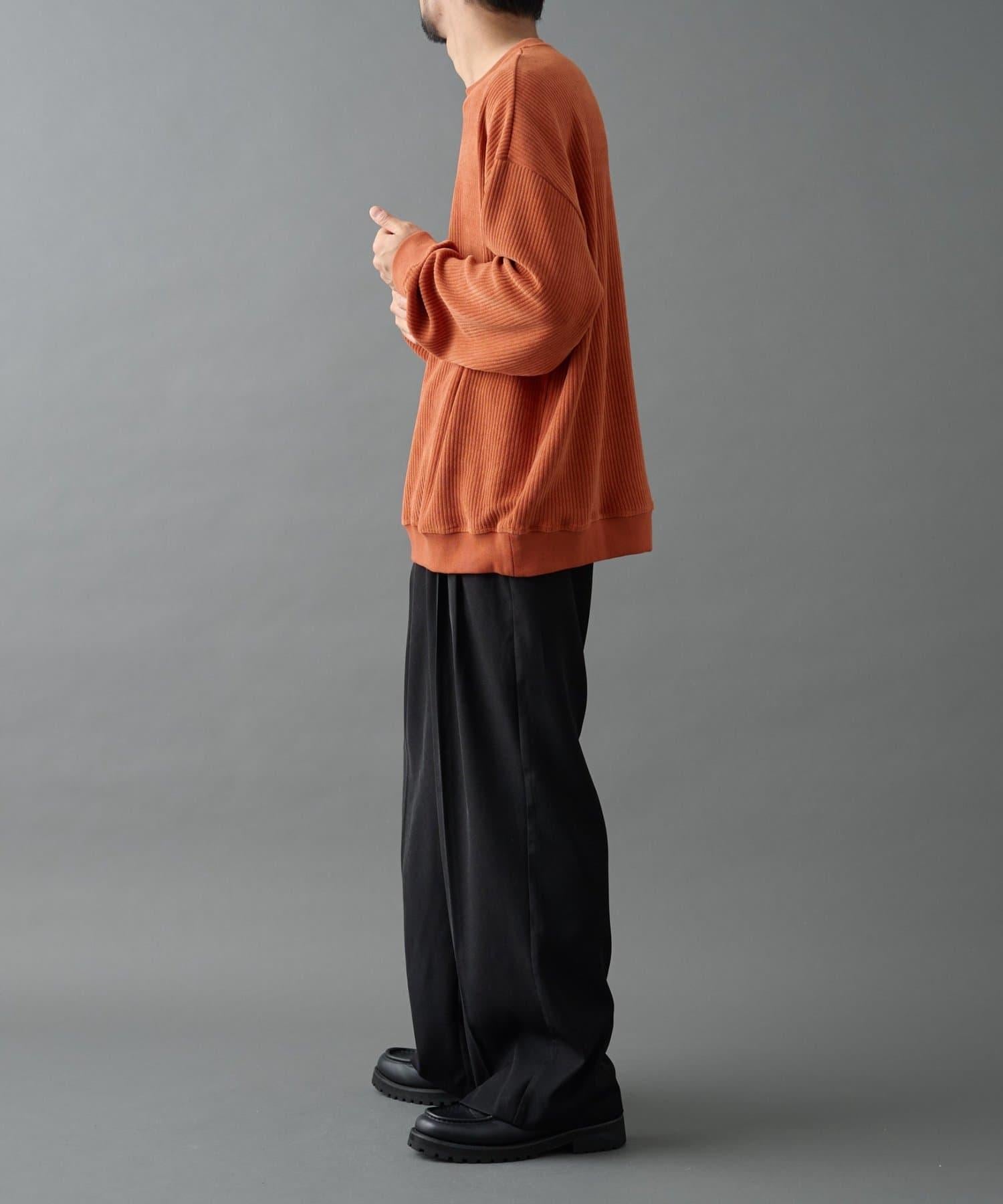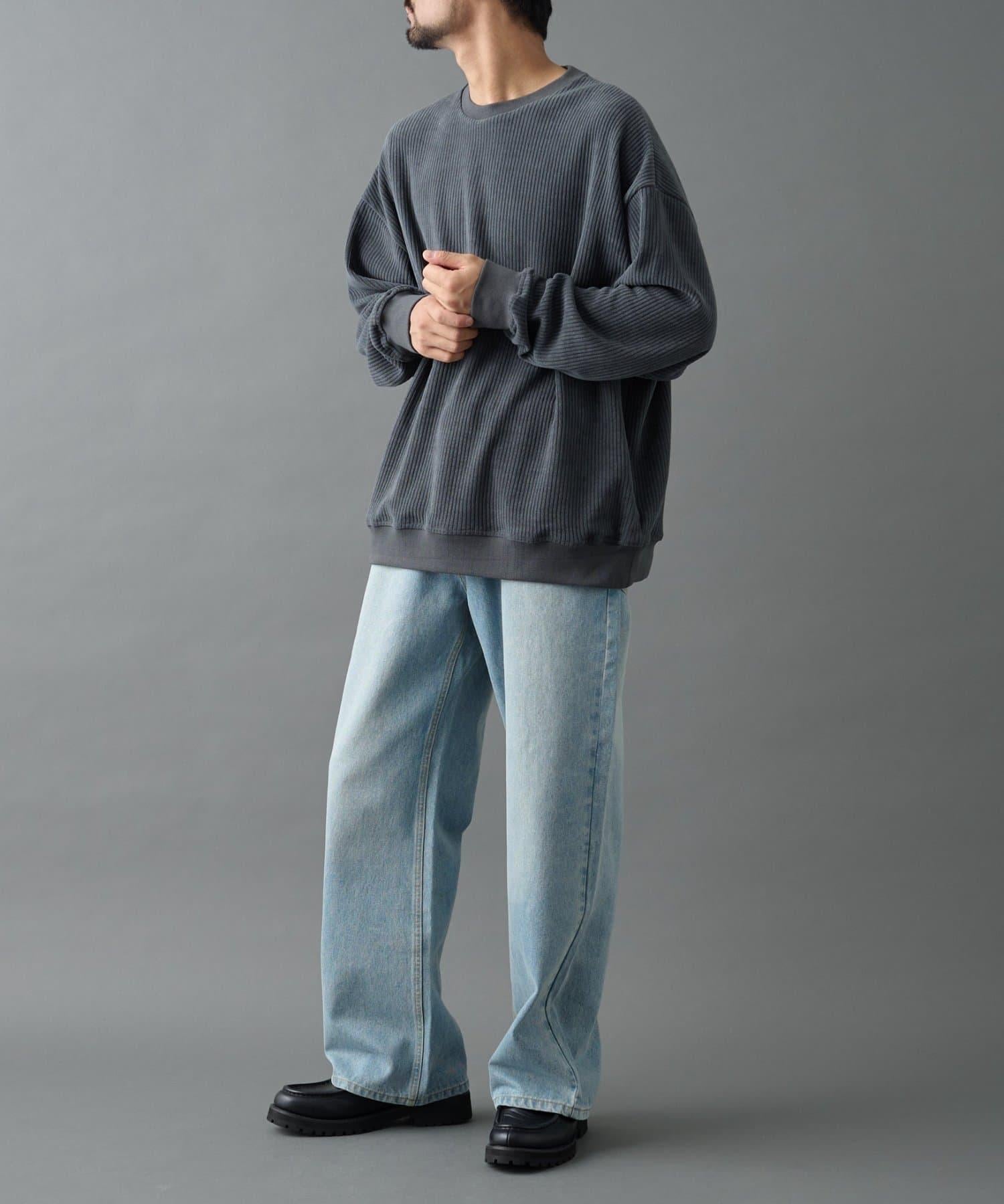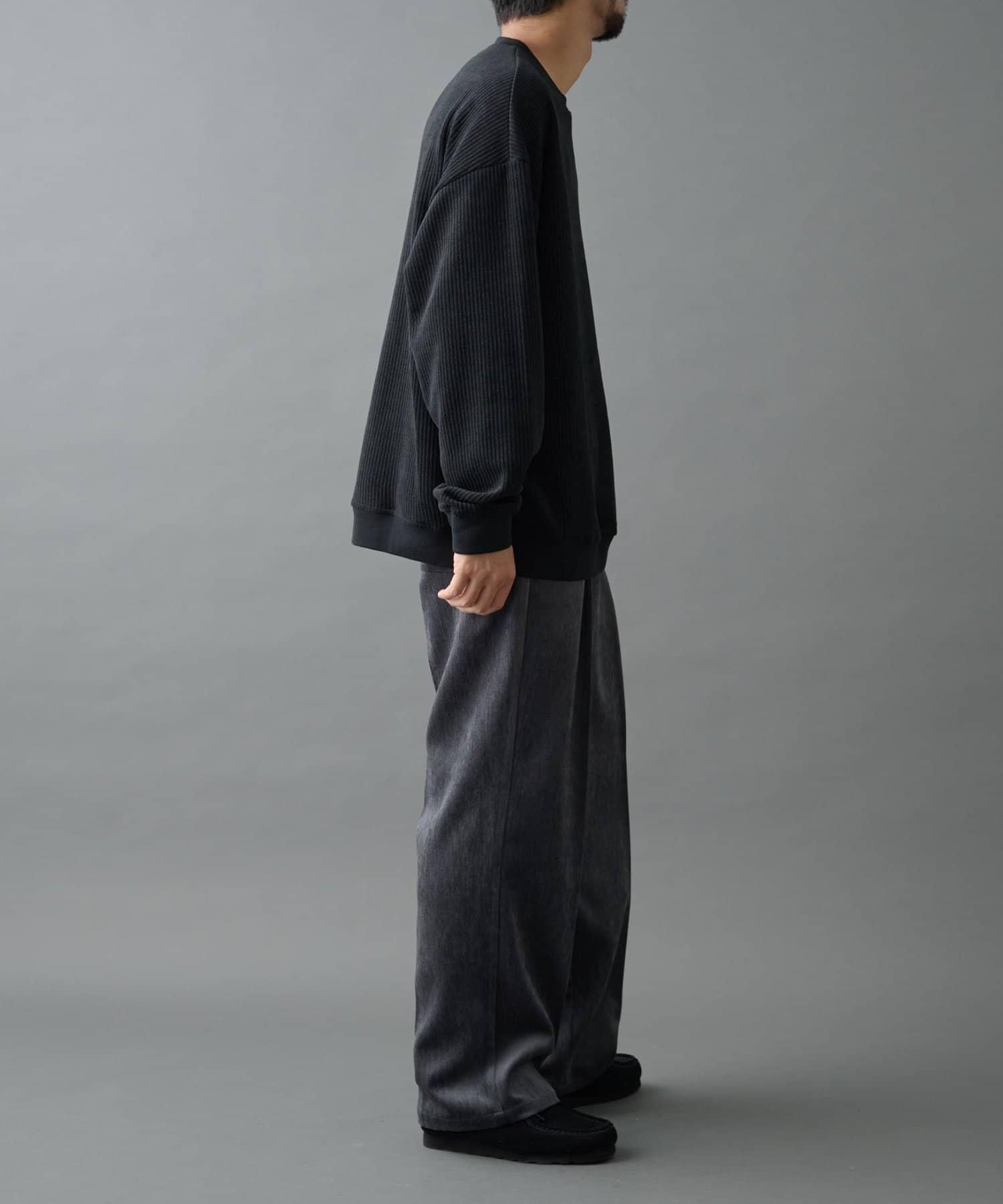 這款圓領衫由燈芯絨面料製成,帶有獨特的垂直脊紋。