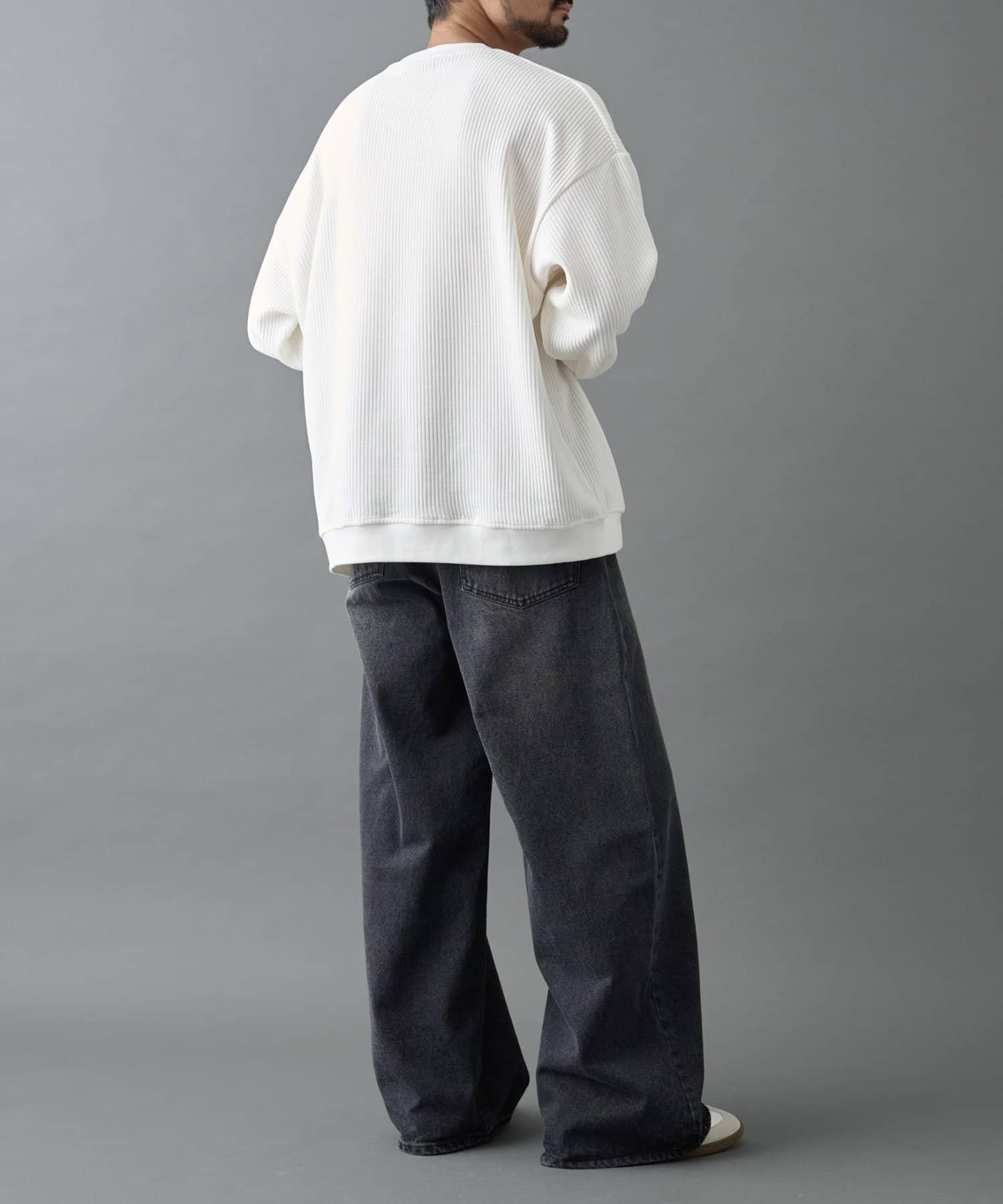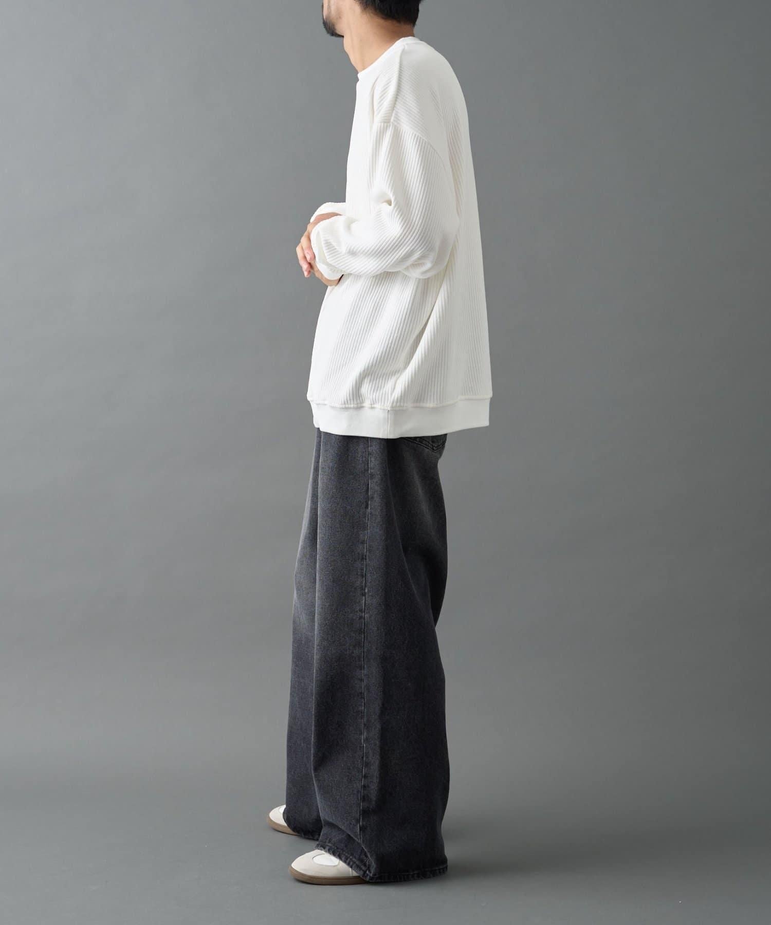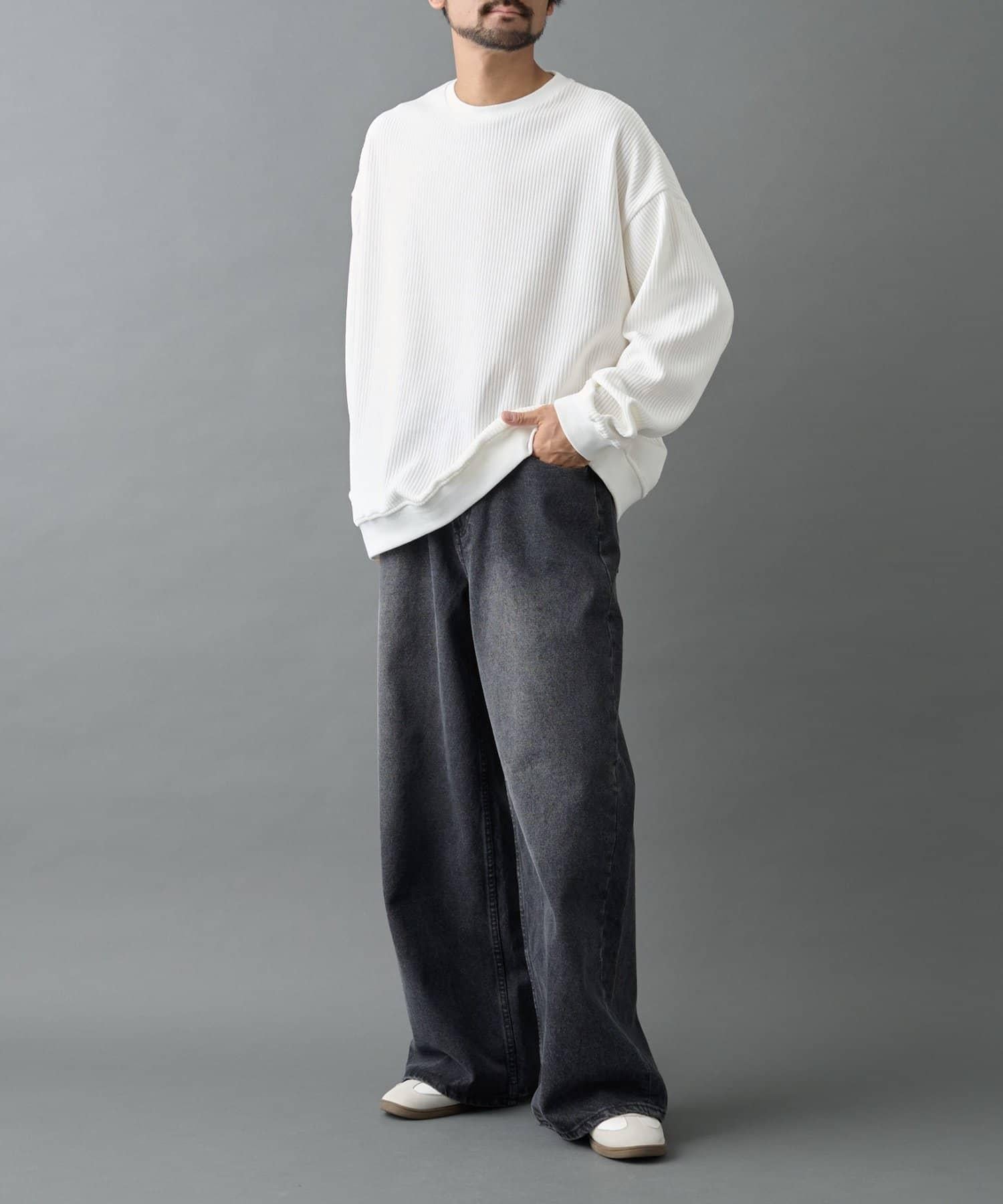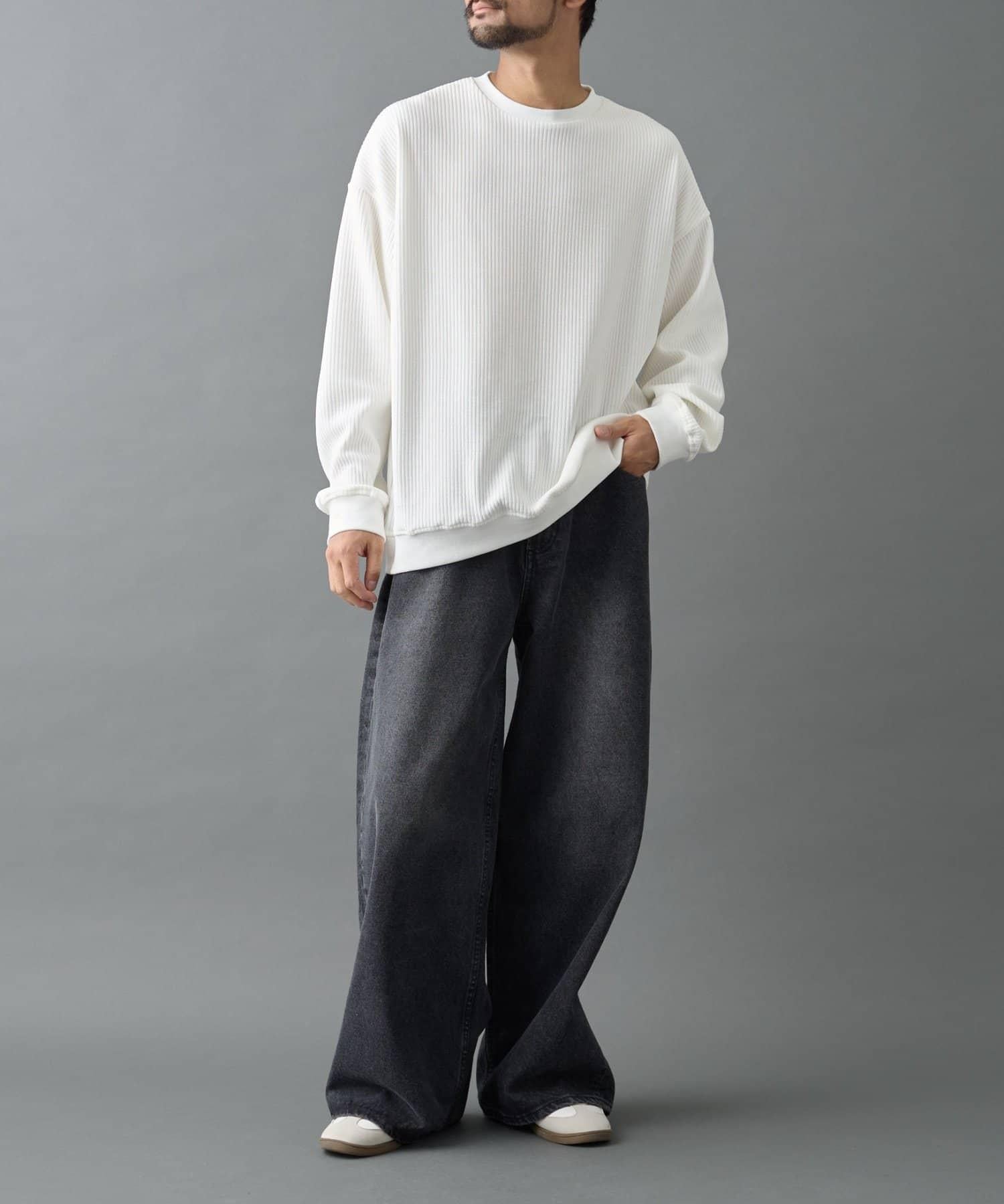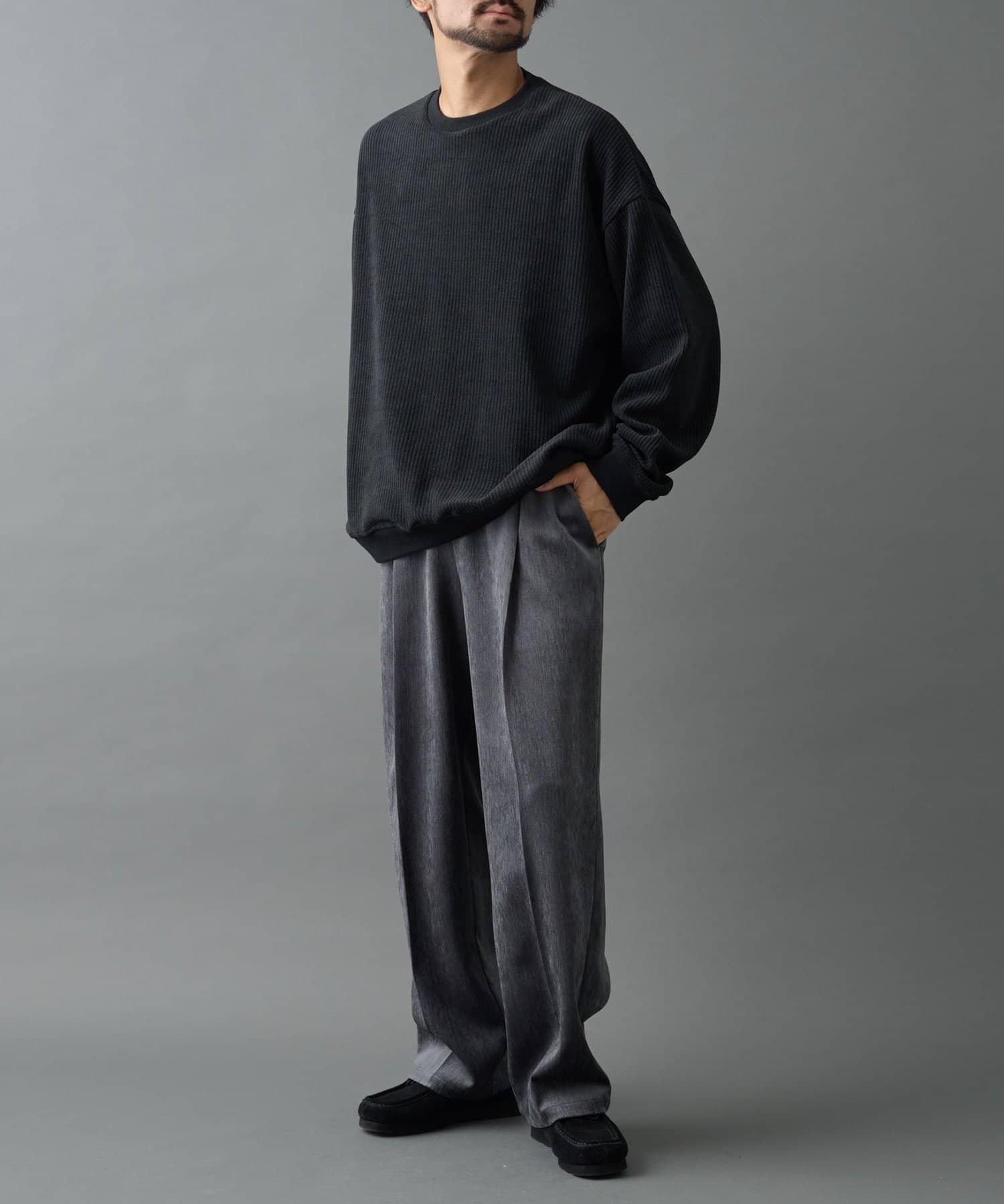 這款圓領衫由燈芯絨面料製成,帶有獨特的垂直脊紋。