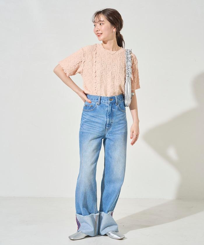 圓潤的 T 恤即使在簡單的搭配中也很好看。