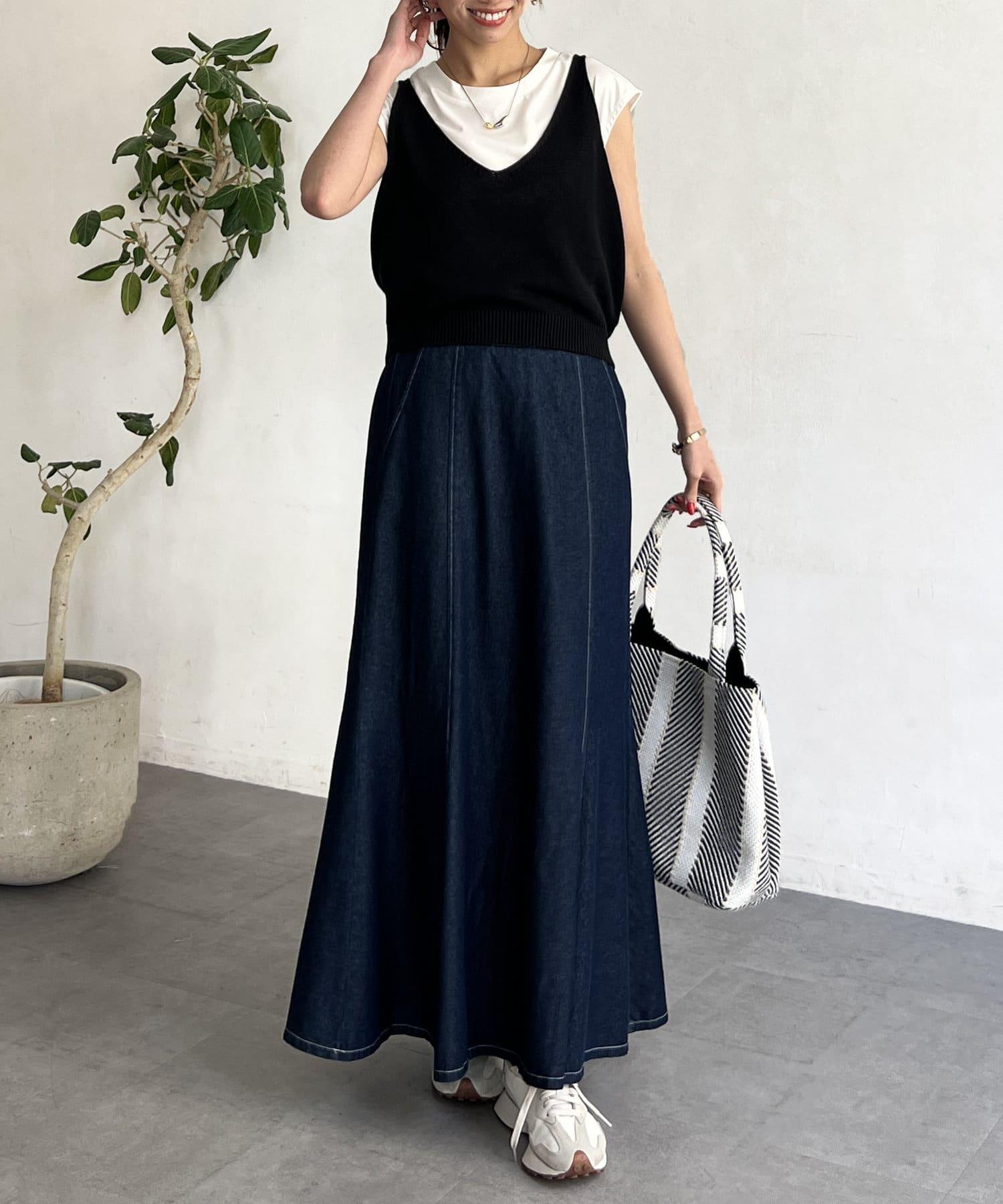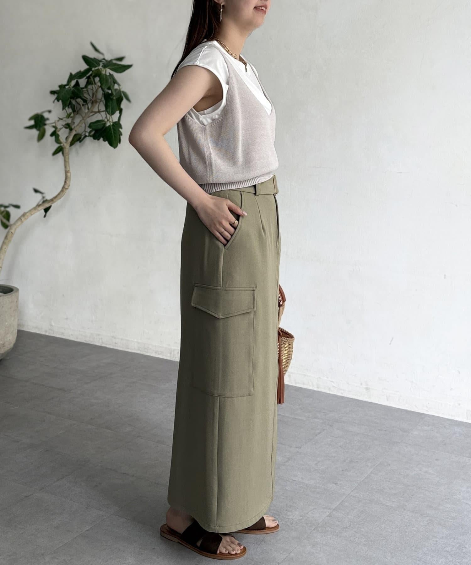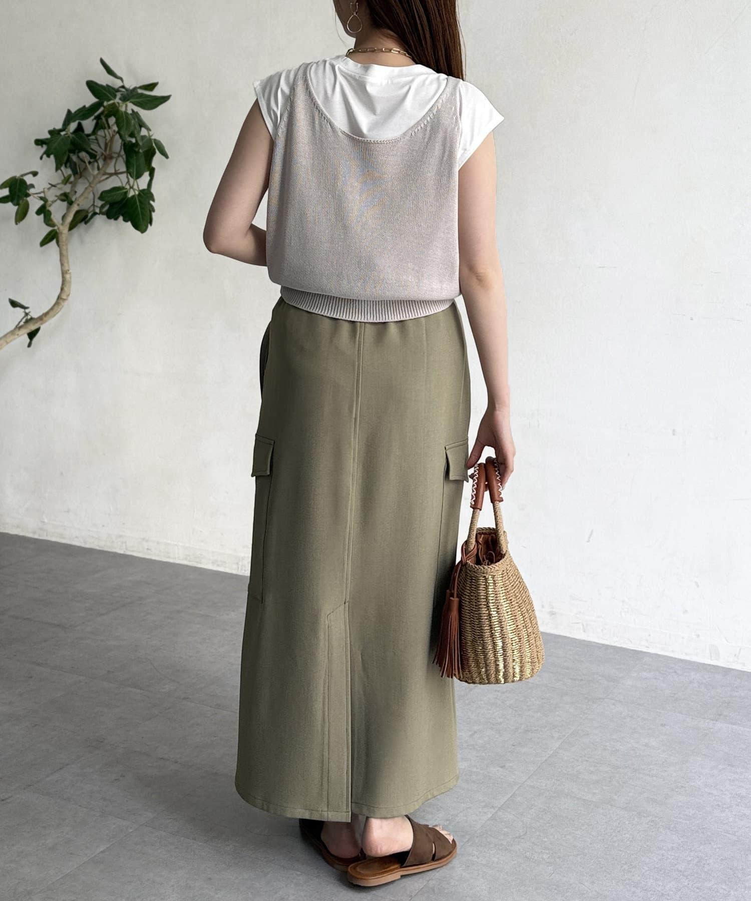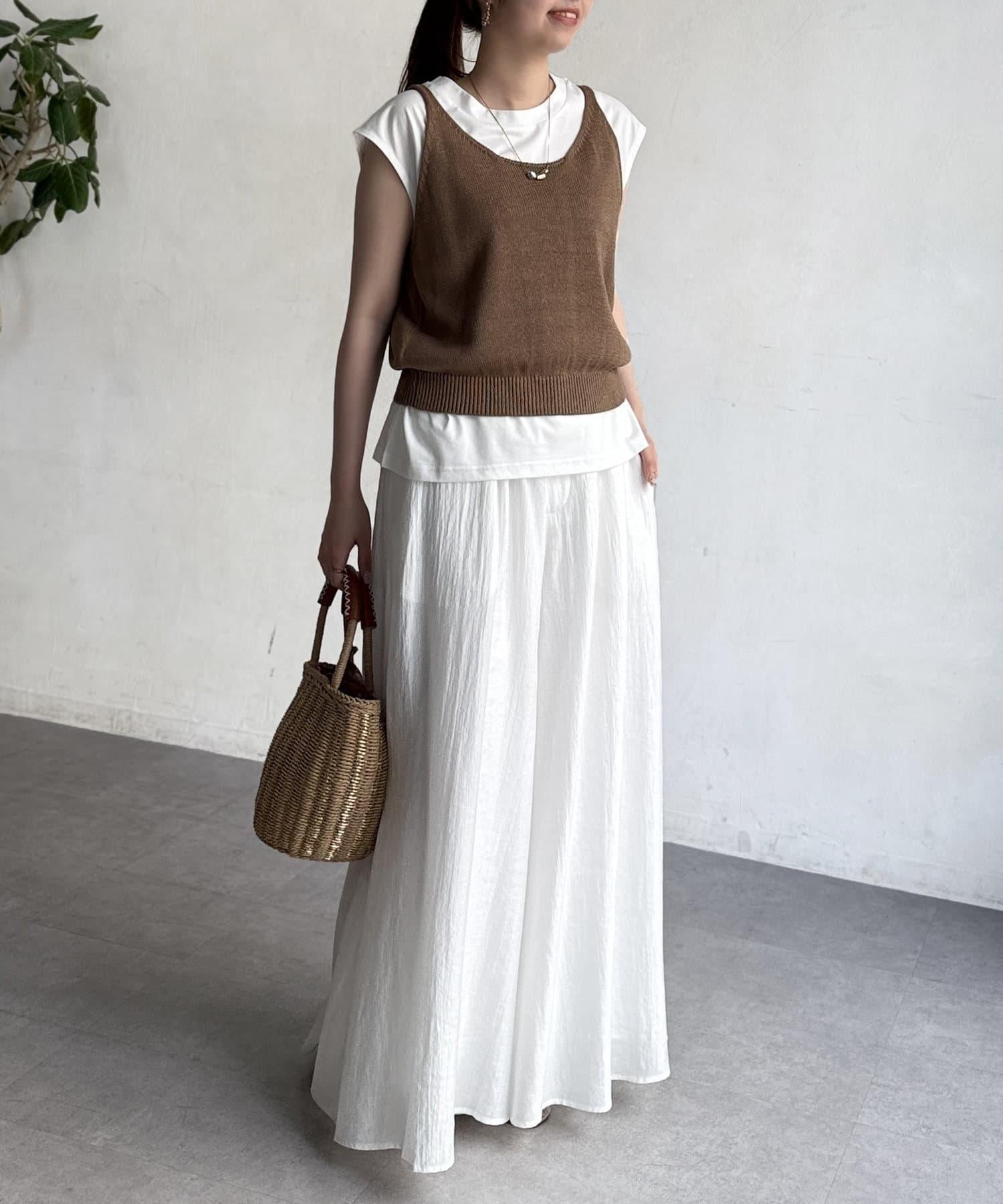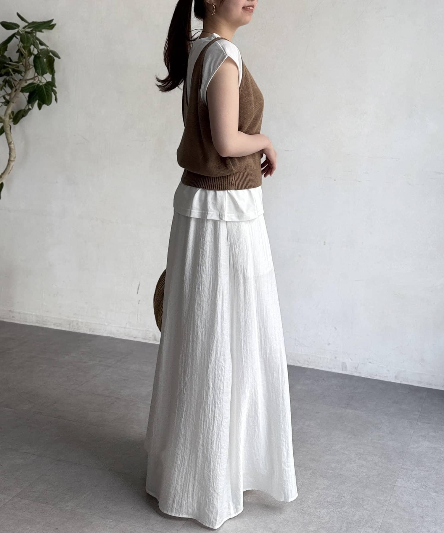 半身裙為針織材質,可搭配襯衫,打造時尚造型!