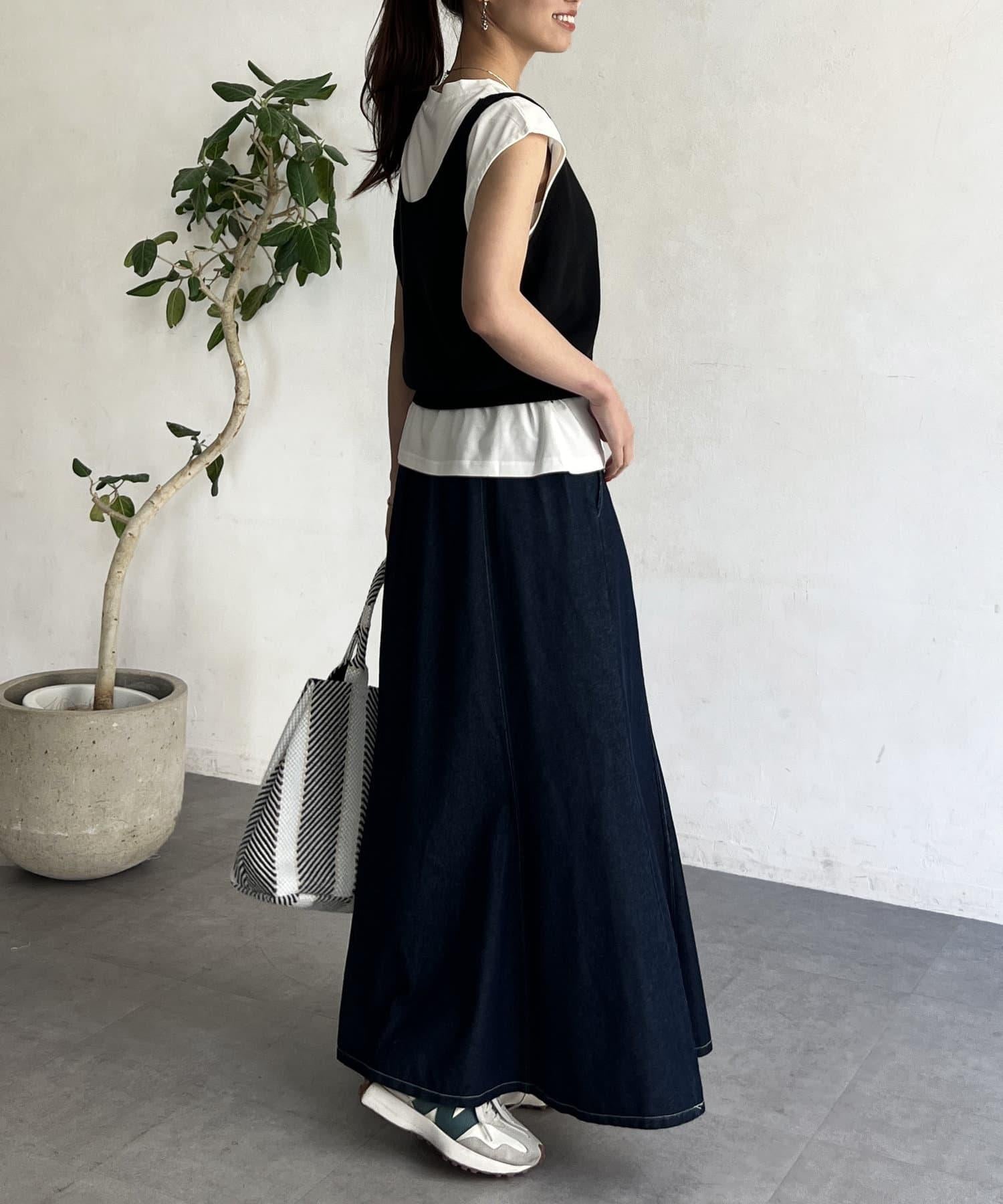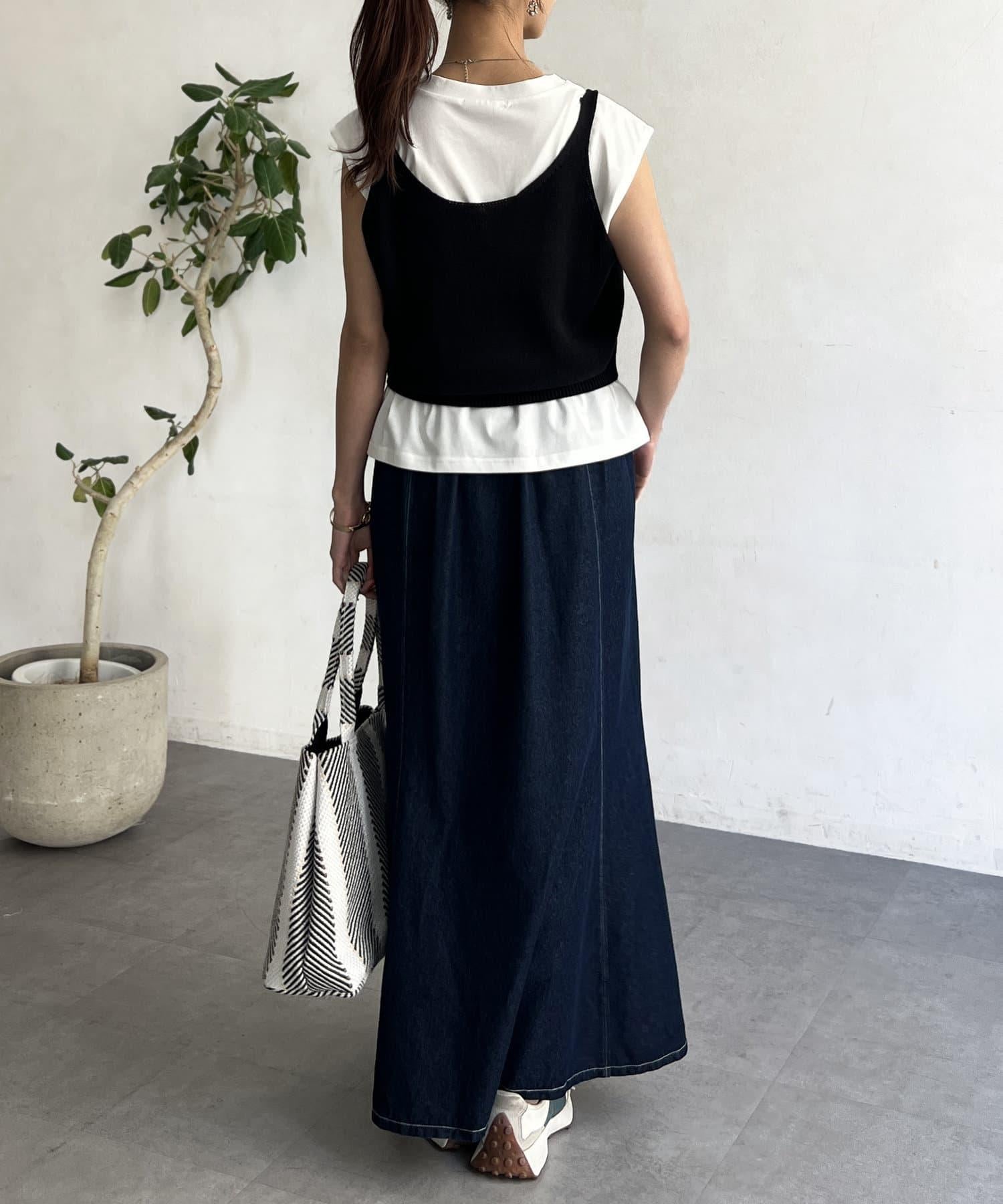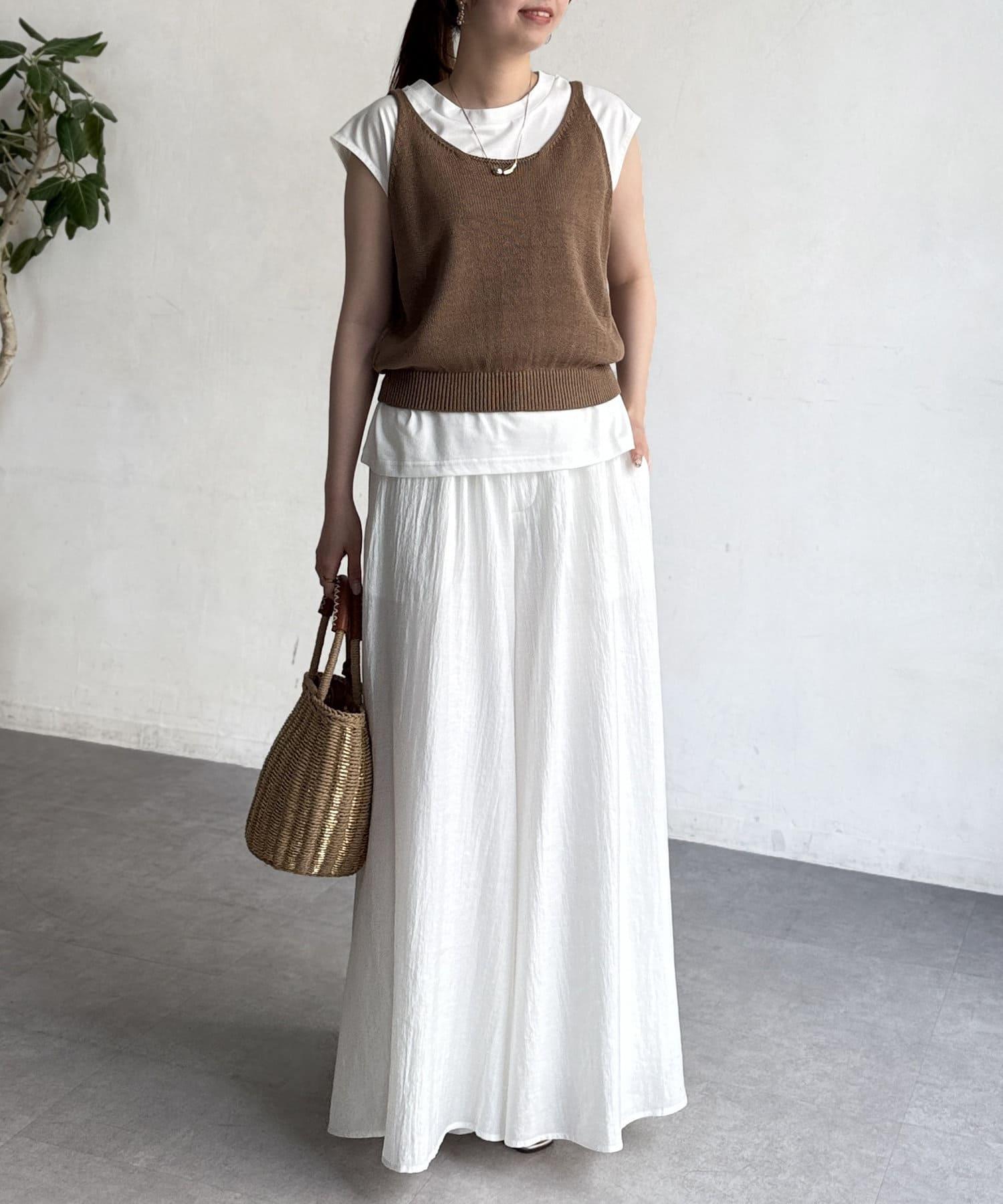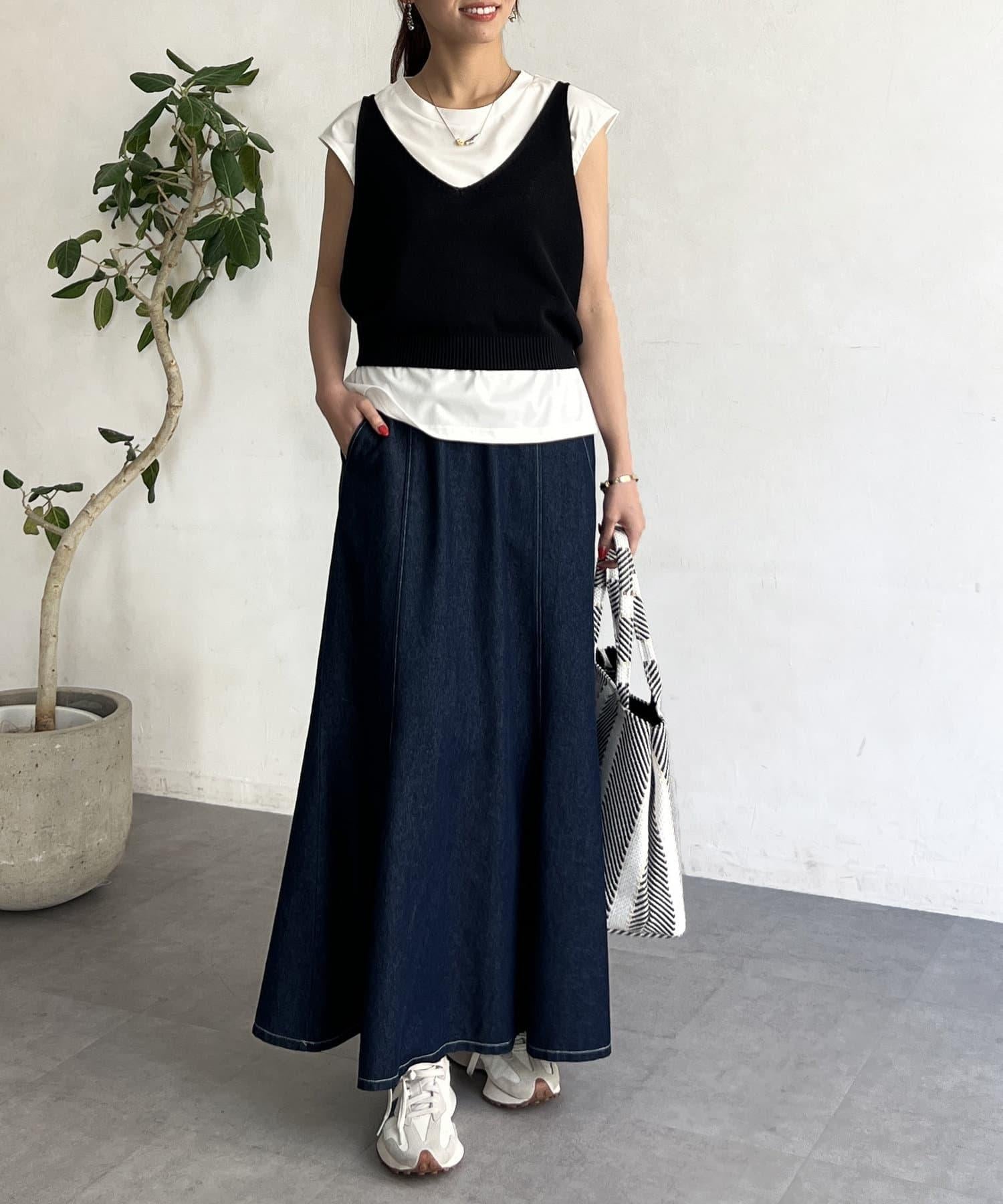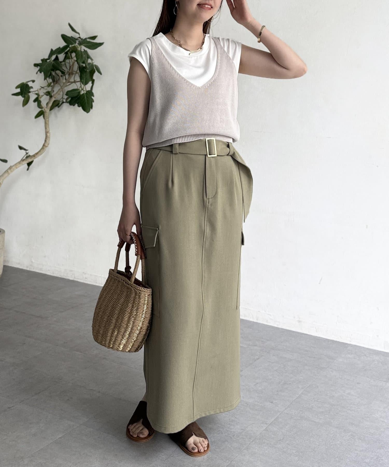 半身裙為針織材質,可搭配襯衫,打造時尚造型!
