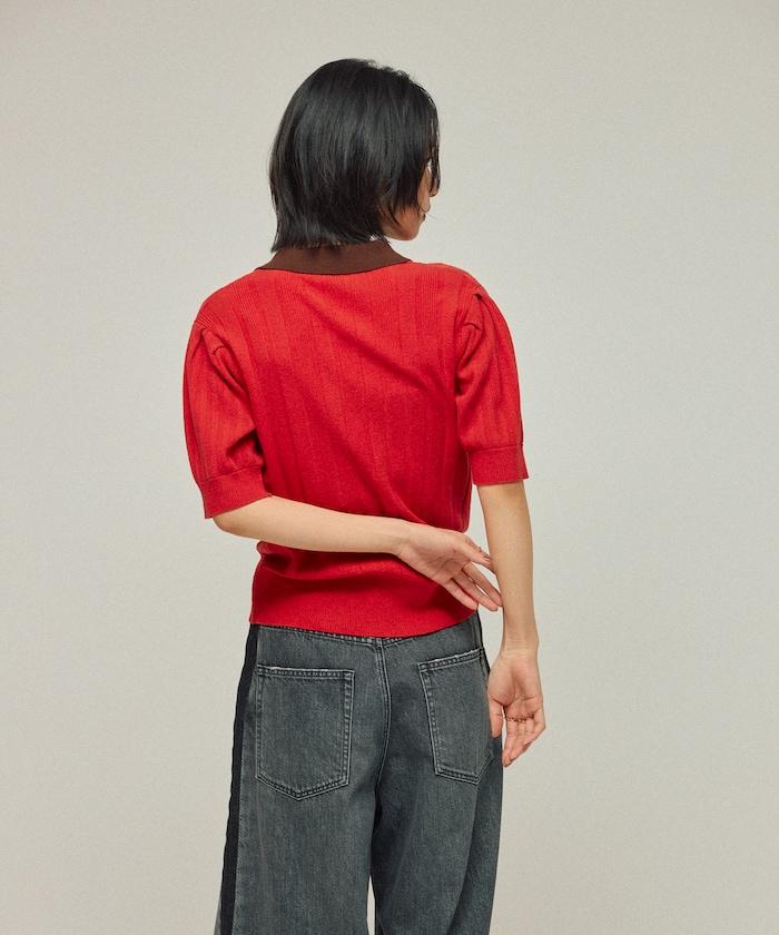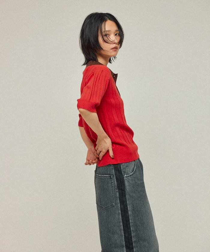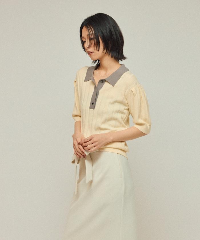 這款上衣採用雙色設計,因此可以搭配簡單的下裝,完成協調的造型。