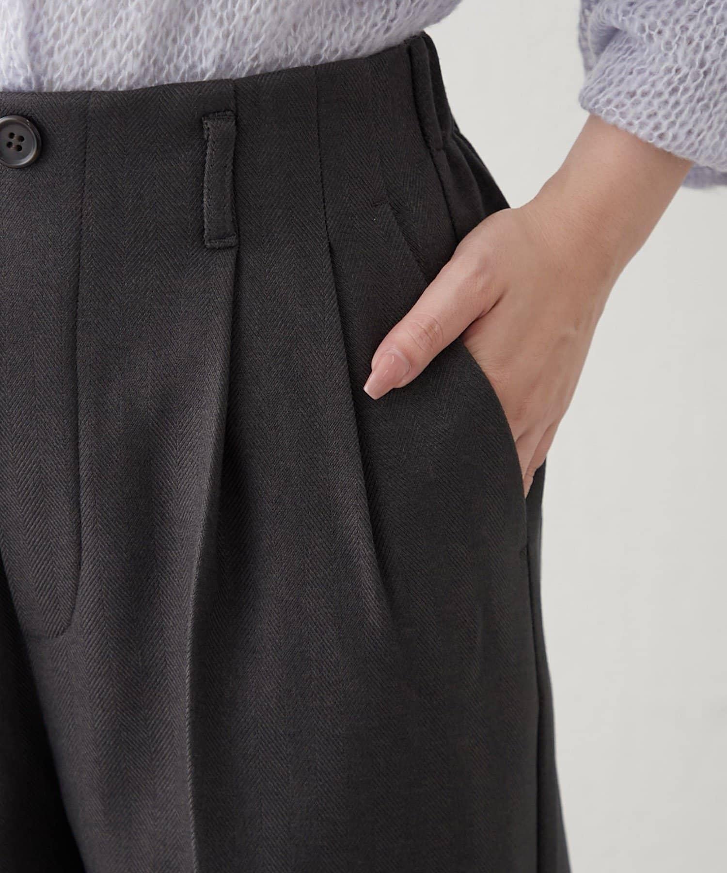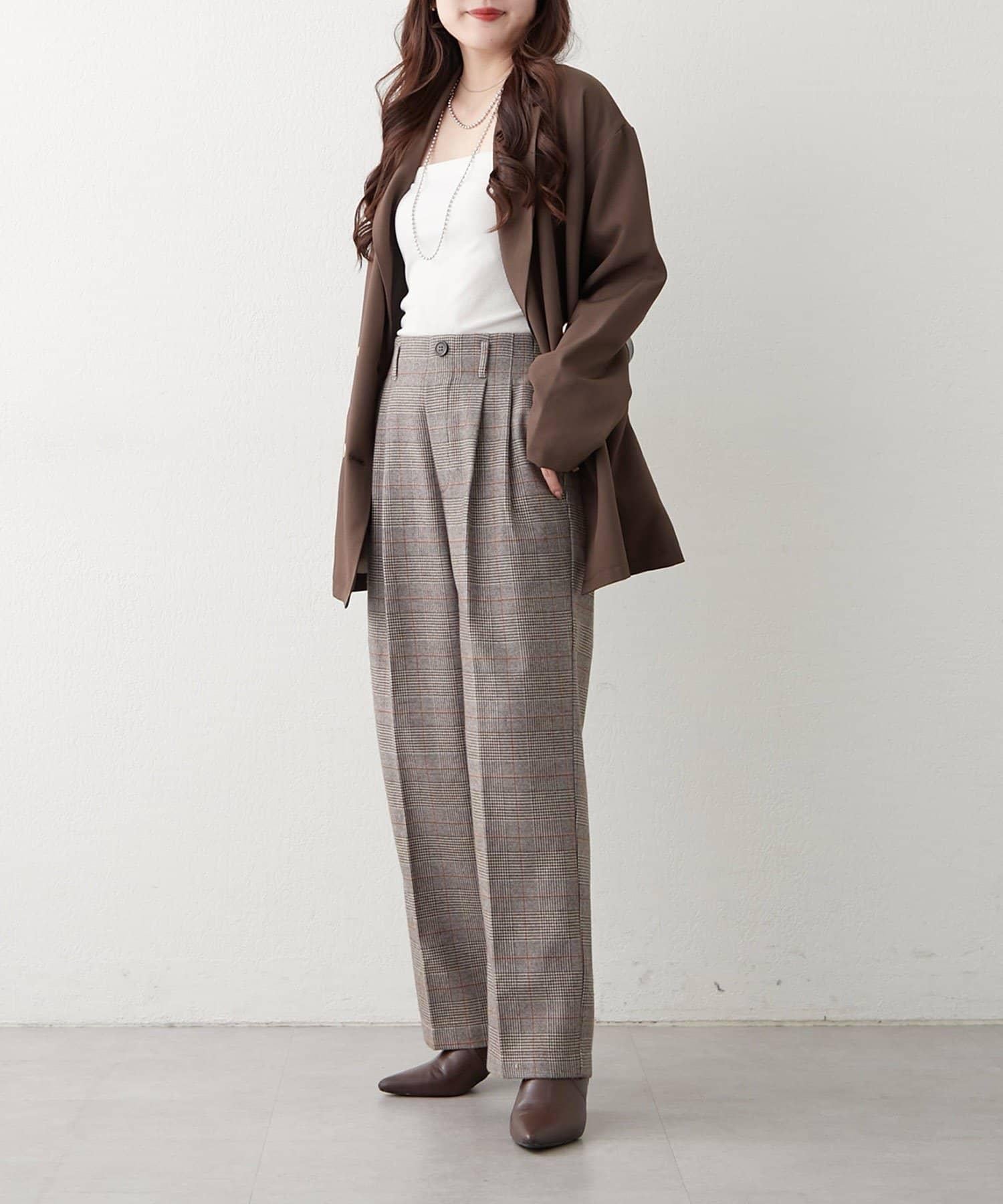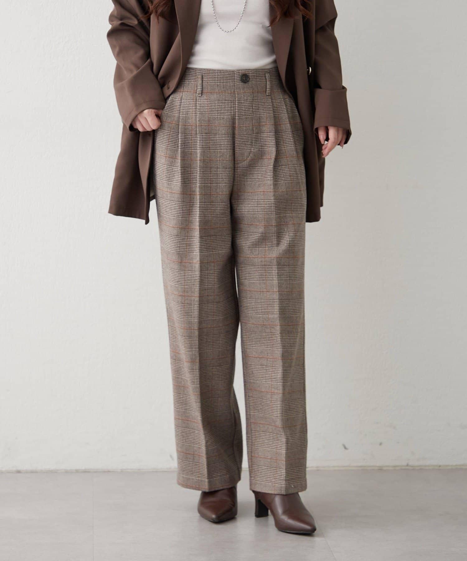 雙襉設計使腰部看起來整潔利落,兩種純色人字形和兩種格紋顏色則增強了季節感。