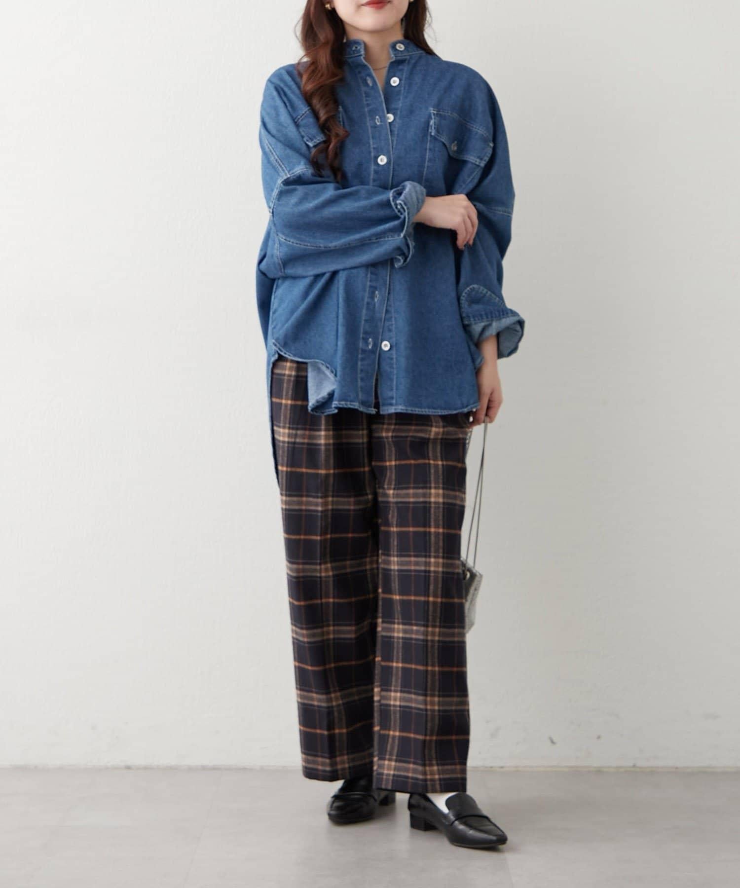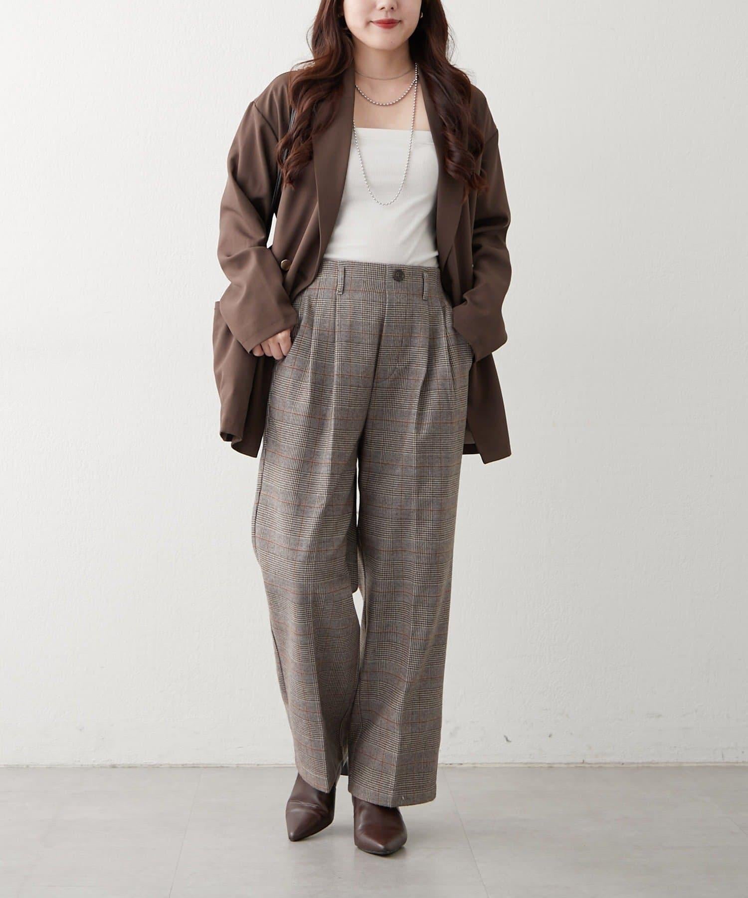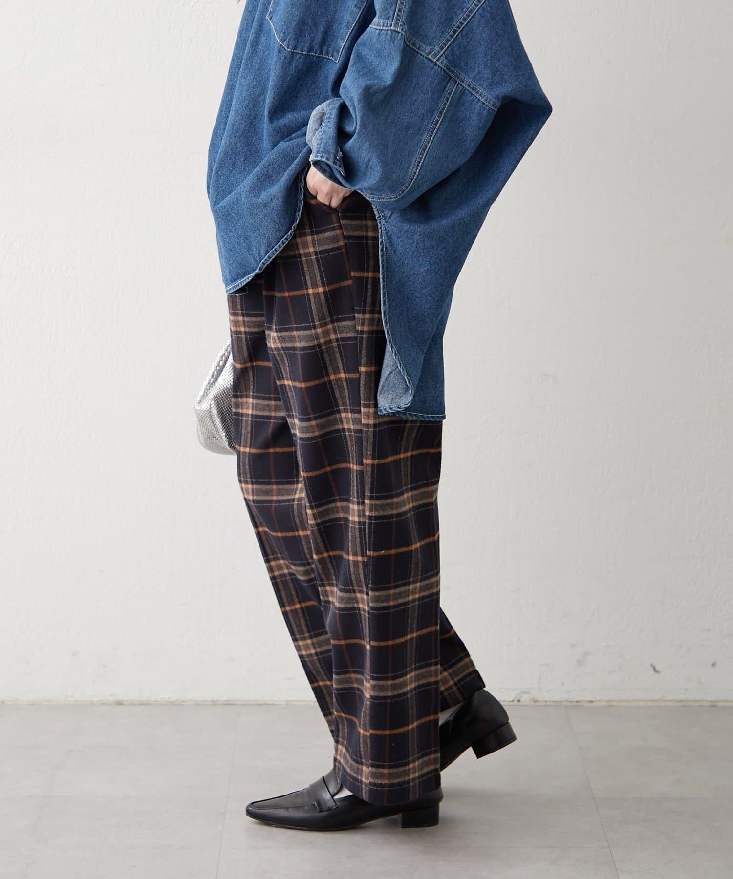雙襉設計使腰部看起來整潔利落,兩種純色人字形和兩種格紋顏色則增強了季節感。