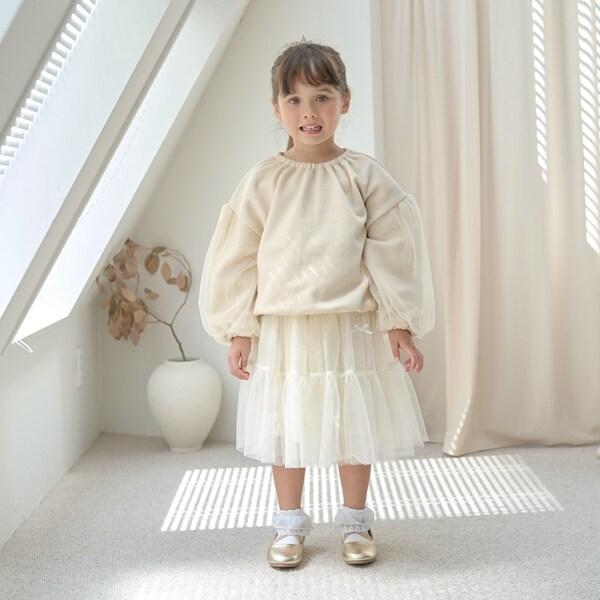 袖子上的薄紗層層疊疊,營造出豐盈的輪廓。