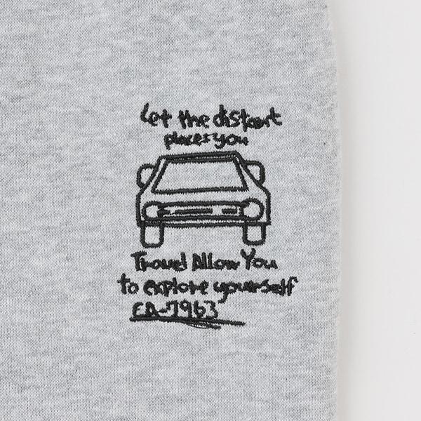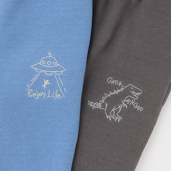 左大腿處繡有與上衣相匹配的單點圖案,因此可根據顏色進行搭配。
