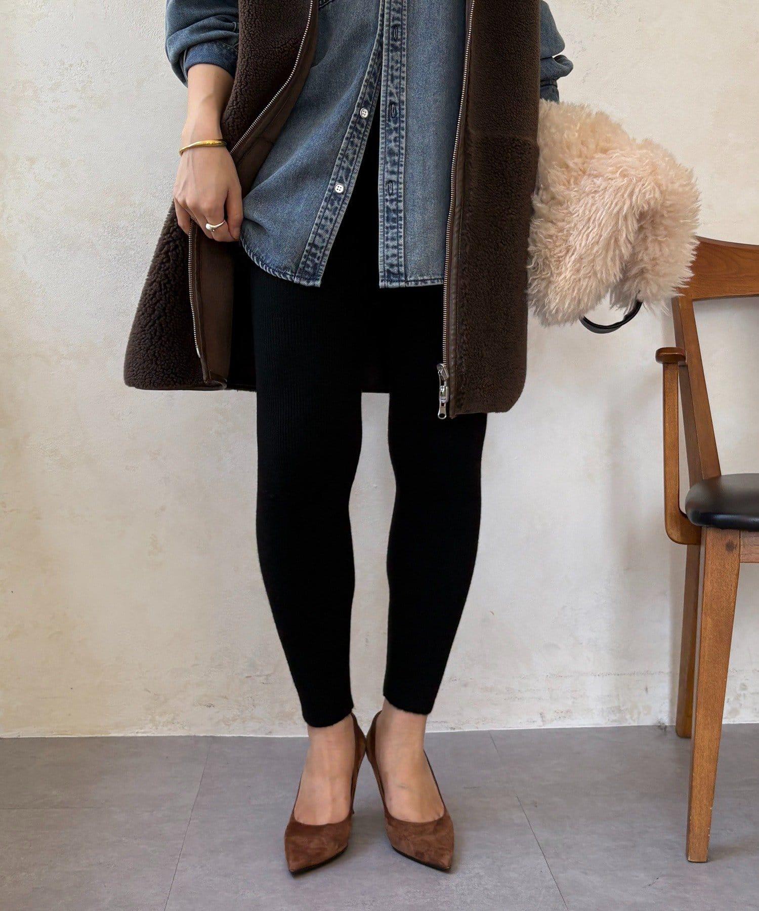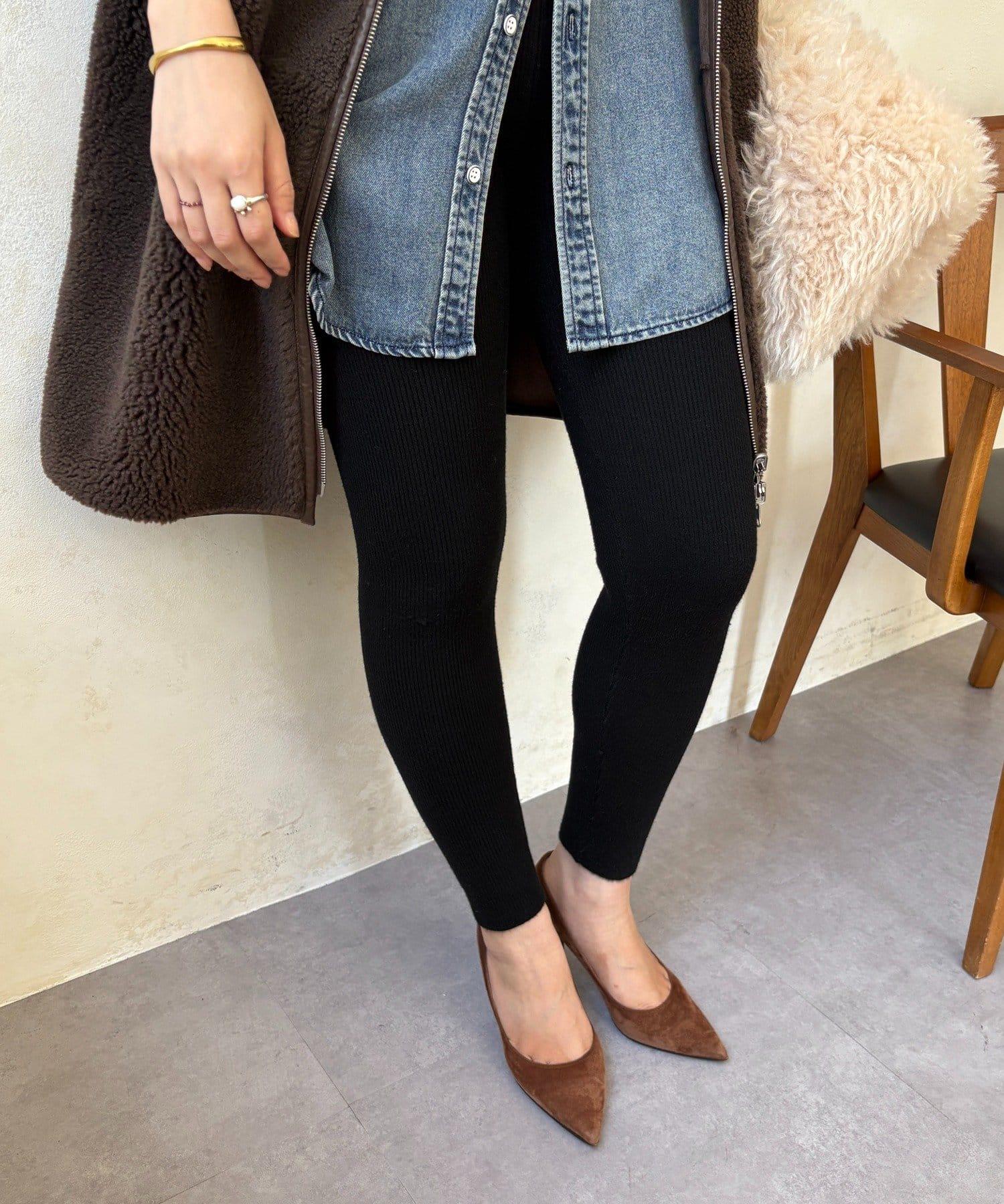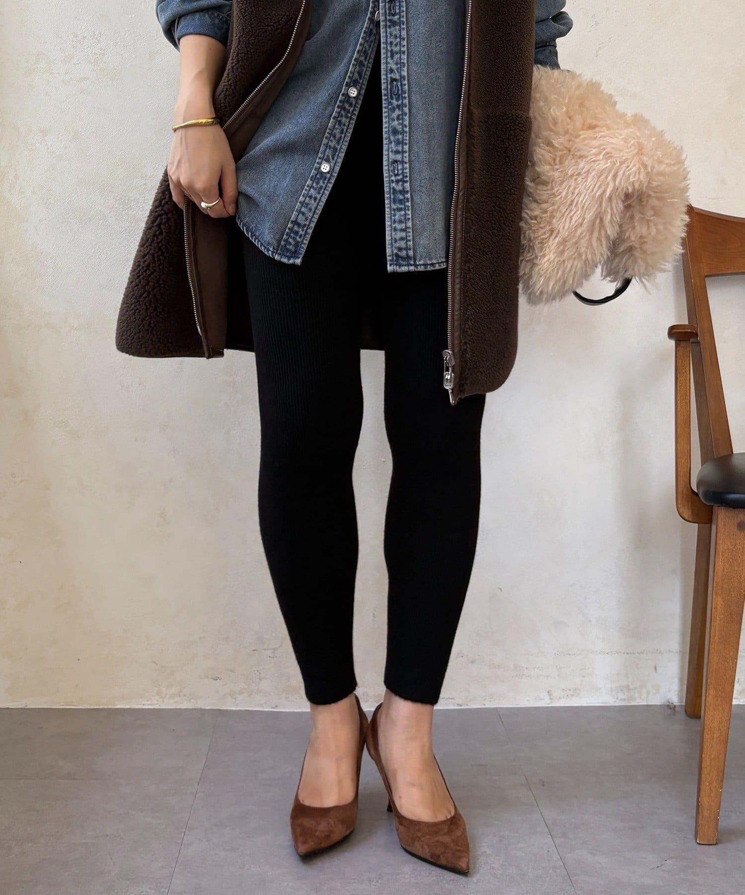 絨毛針織緊身褲,絨毛內襯,溫暖舒適。