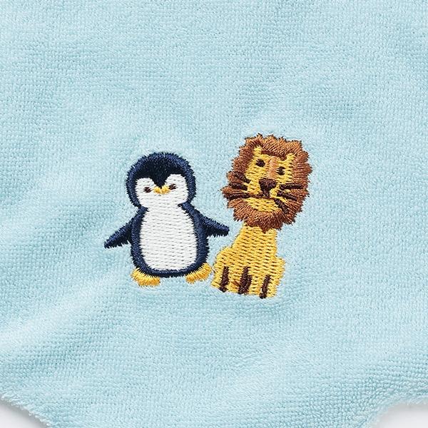 奶油色設計上繡有綿羊和小熊,薩克斯風設計上繡有企鵝和獅子。