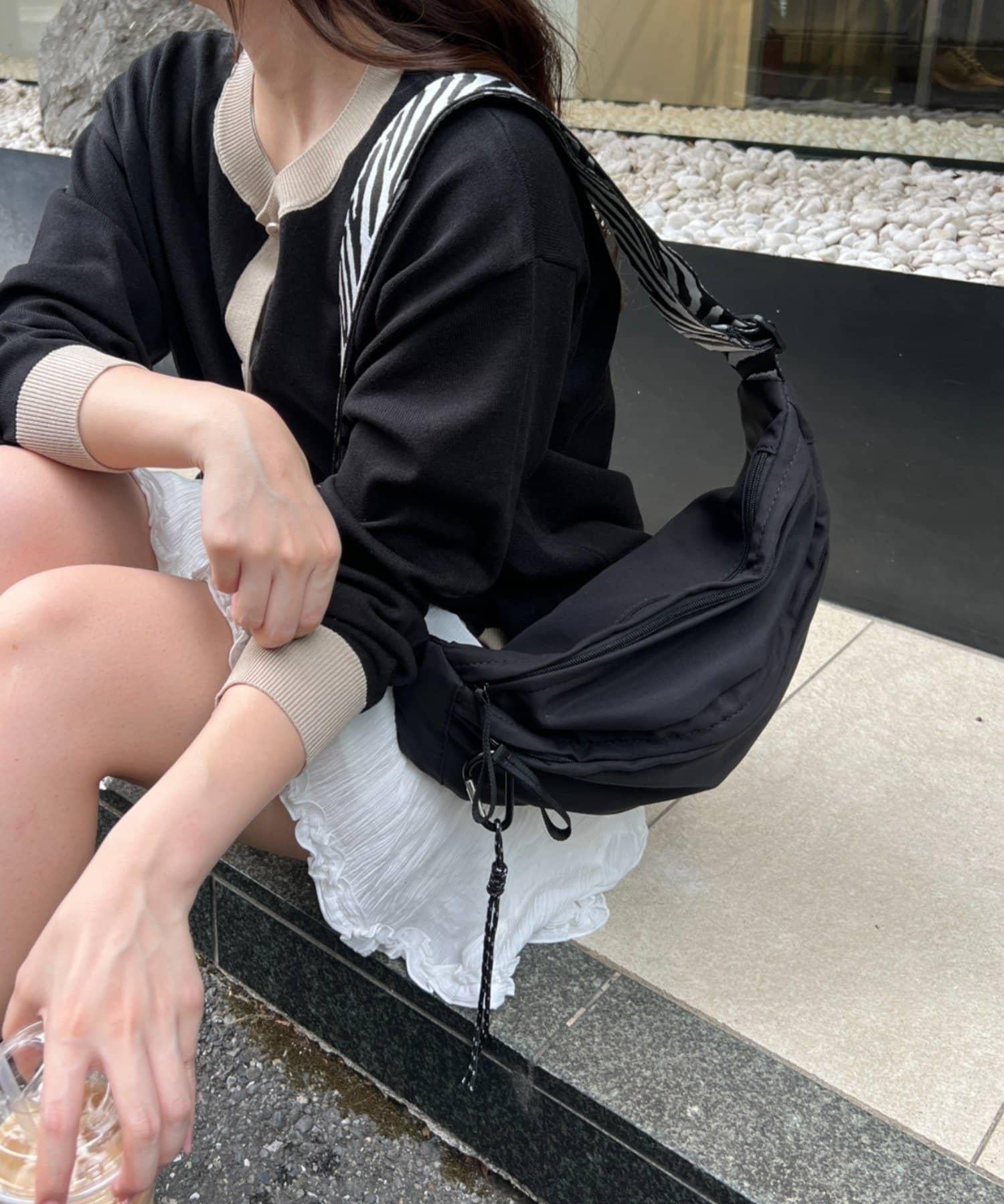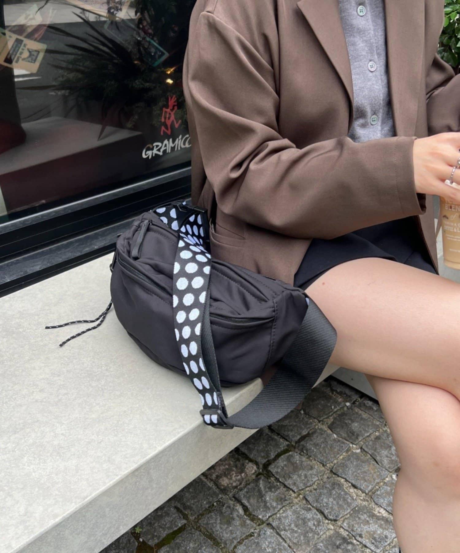 帶有動物和圓點圖案的寬膠帶是這款手袋的一大亮點。