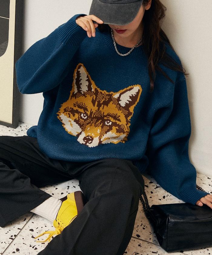 動物針織衫,狐狸和牛的臉部設計極具衝擊力。