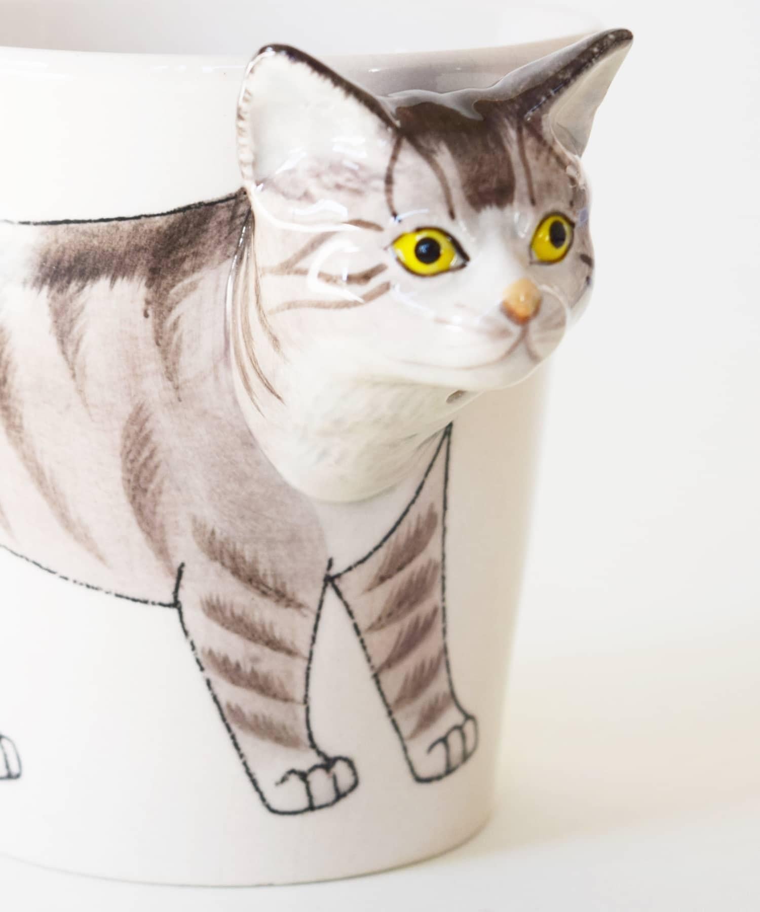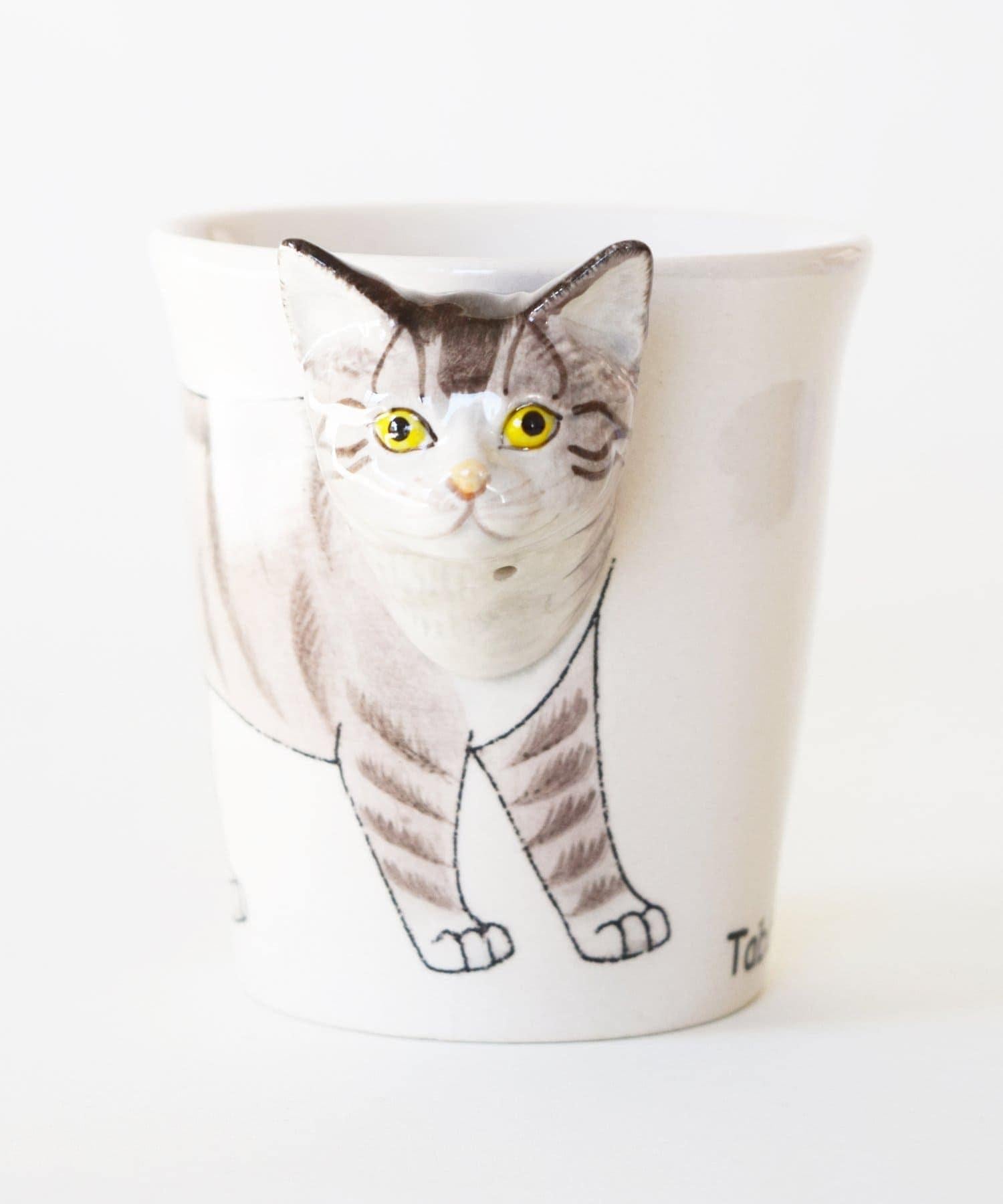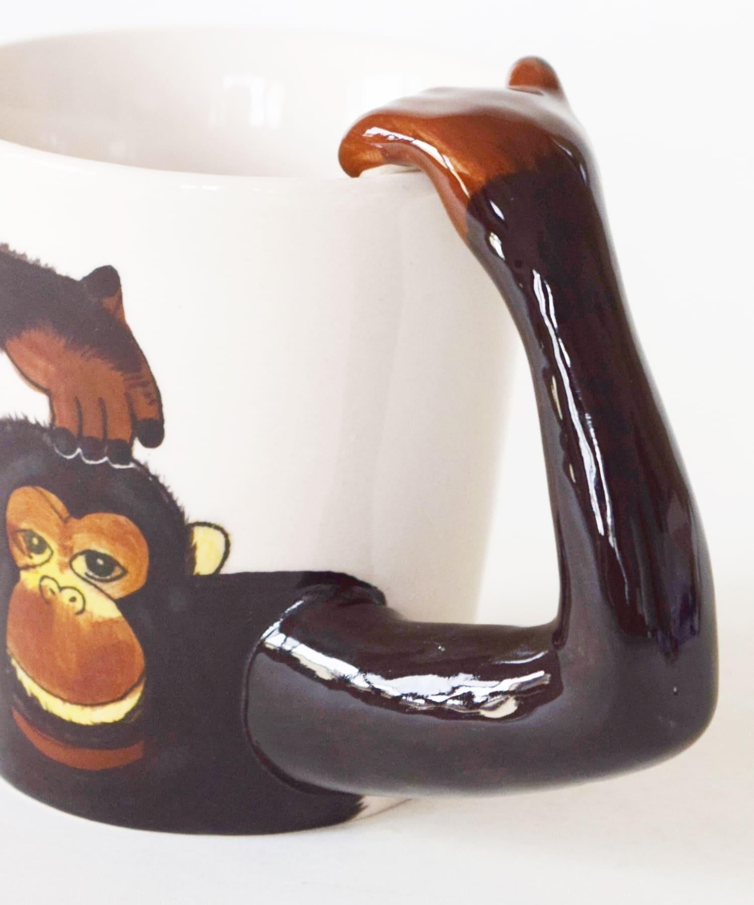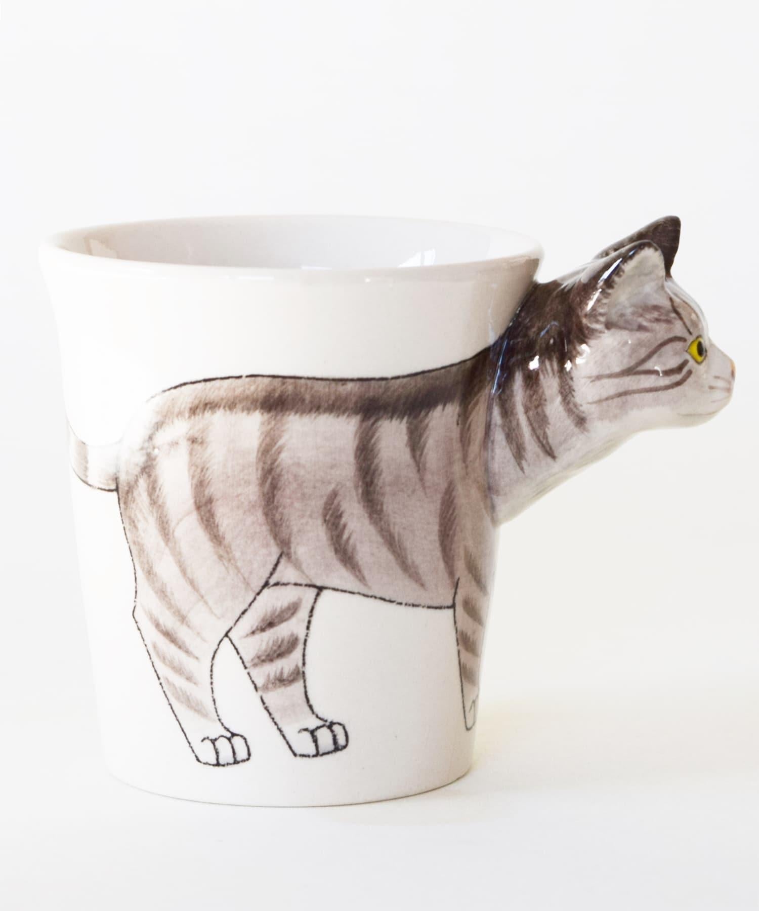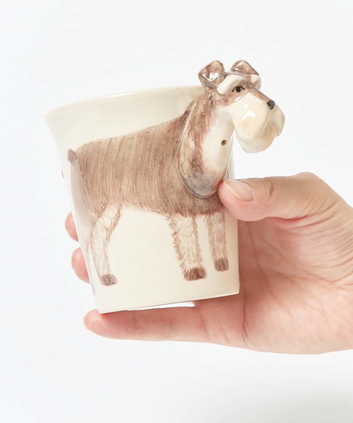 以動物的臉和手為把手的立體杯。每個杯子都是精心手繪而成,因此每個杯子都有不同的表情。