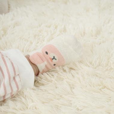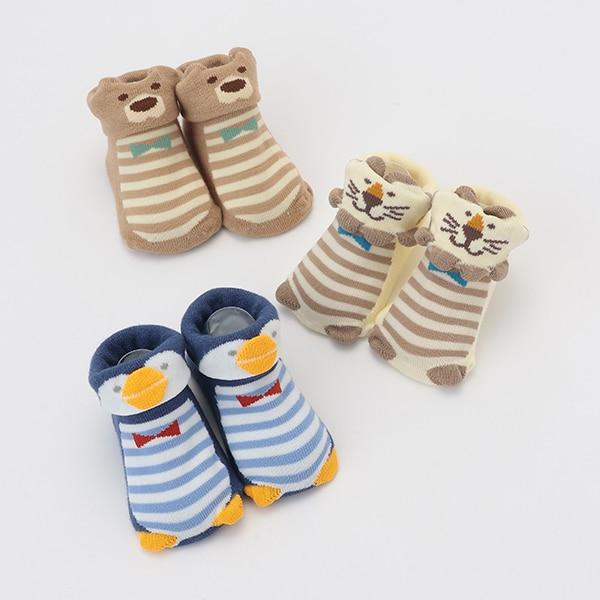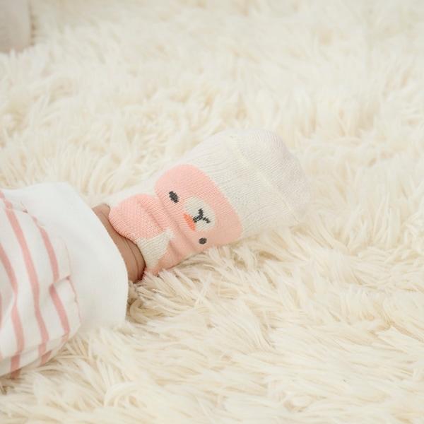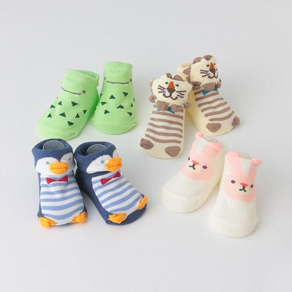 米白色是兔子圖案,米黃色是獅子圖案,摩卡棕色是小熊圖案,黃綠色是恐龍圖案,深藍色是企鵝圖案。