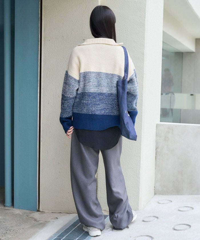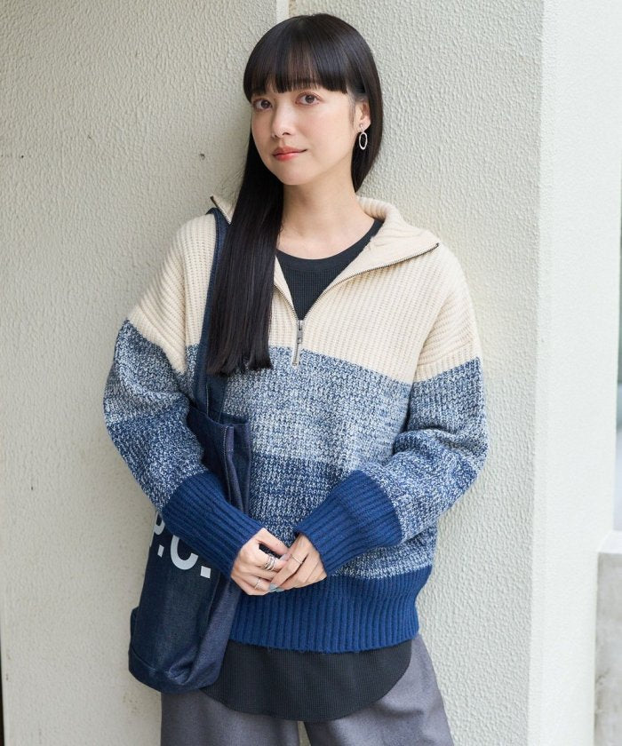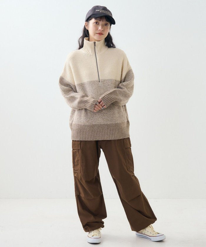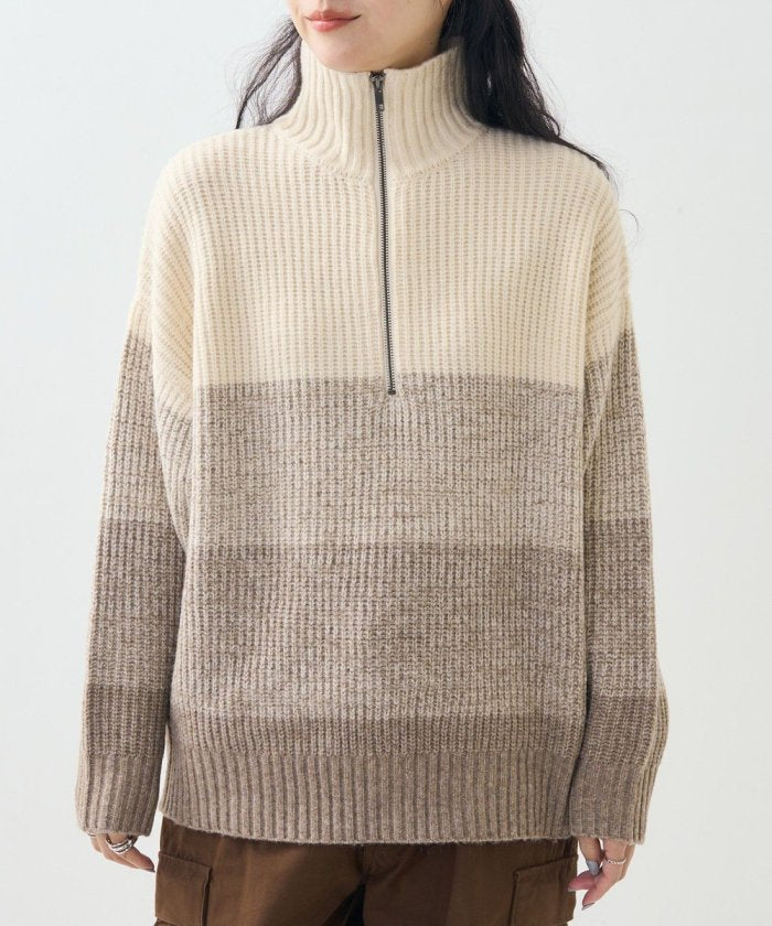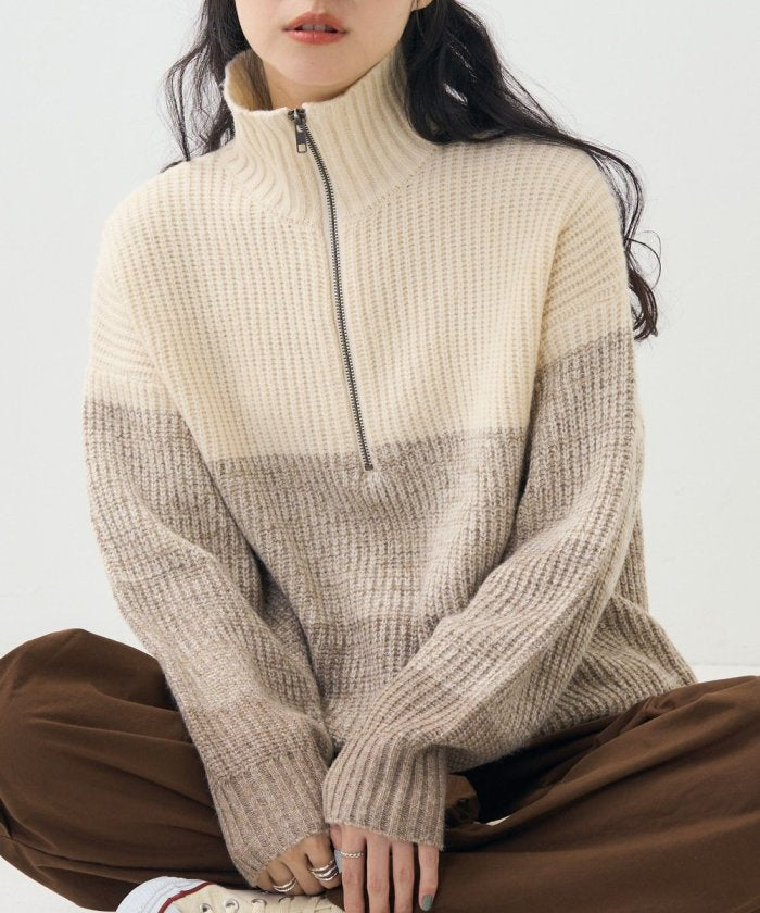 漸變半拉鍊針織衫