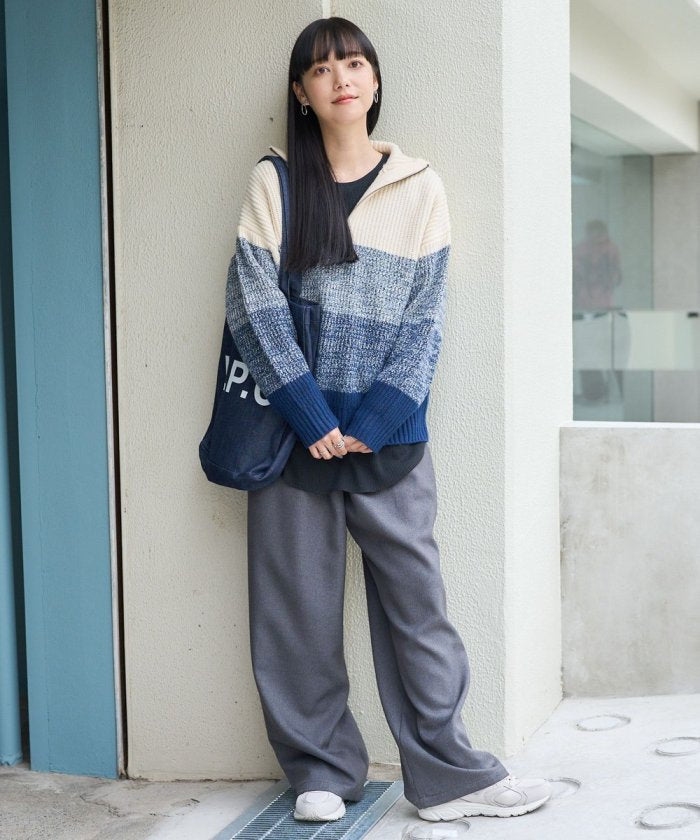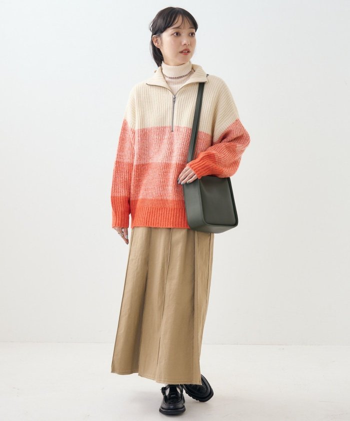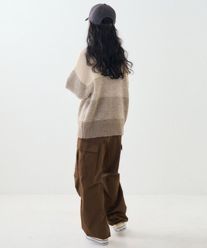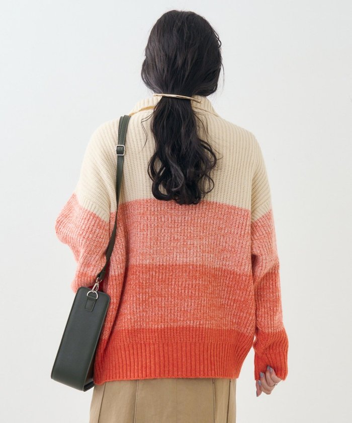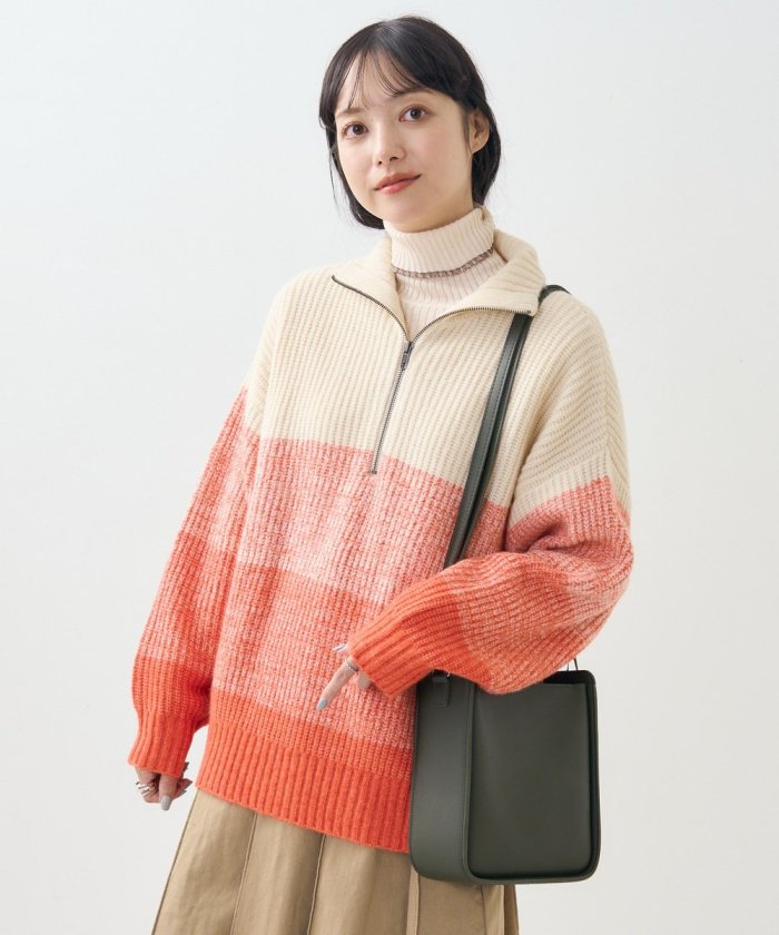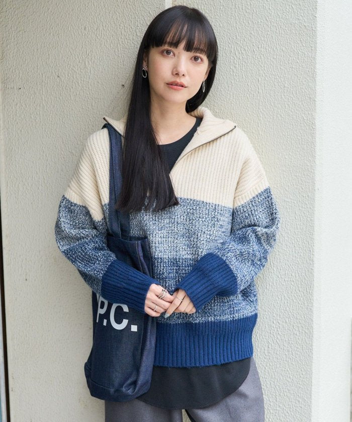 漸變半拉鍊針織衫