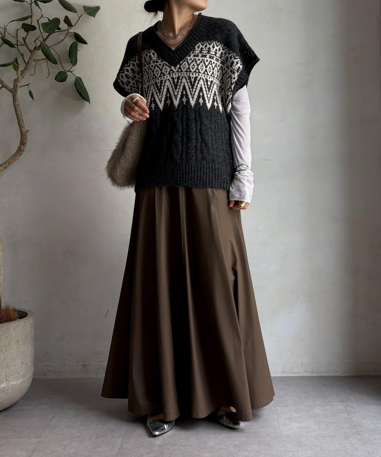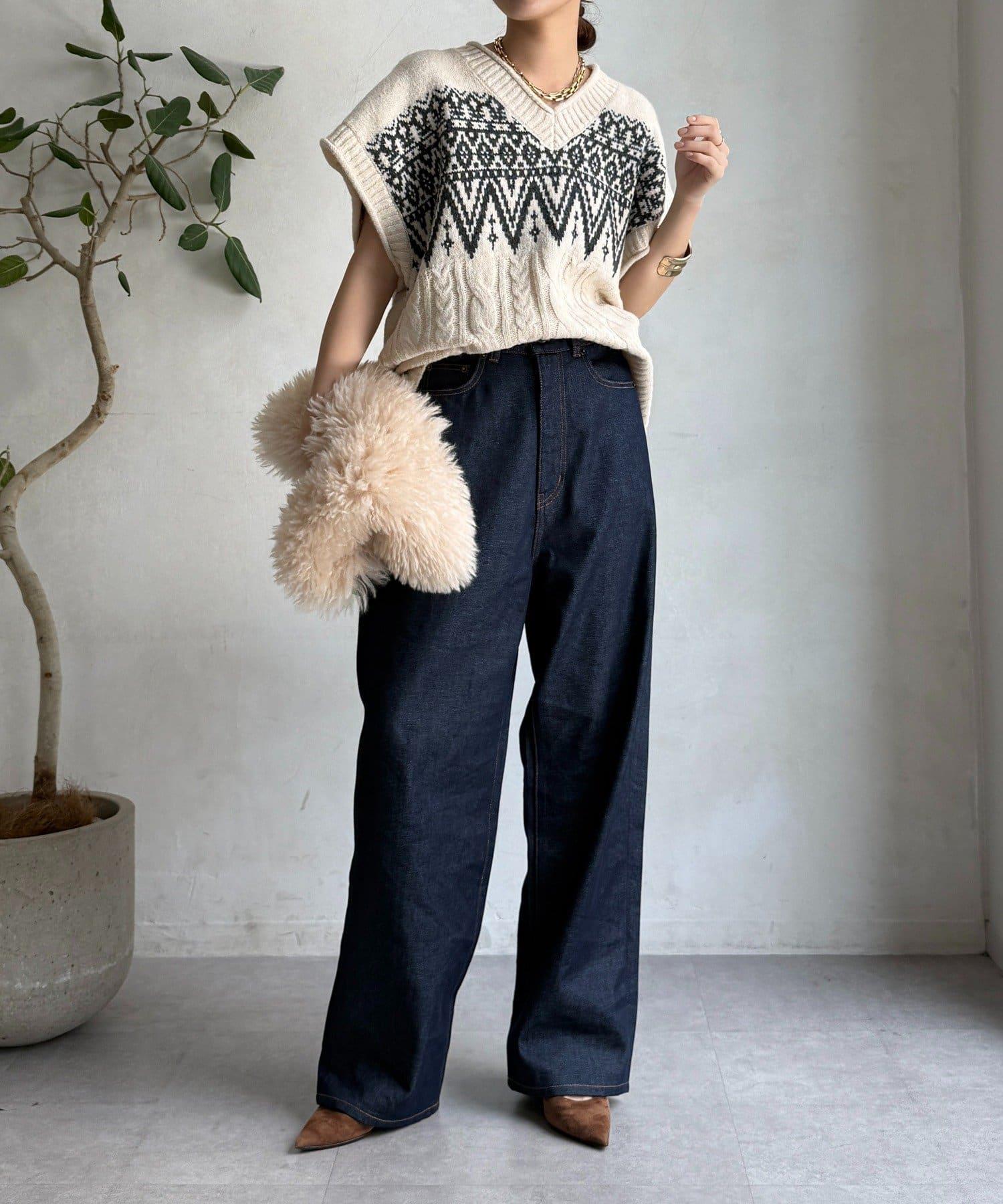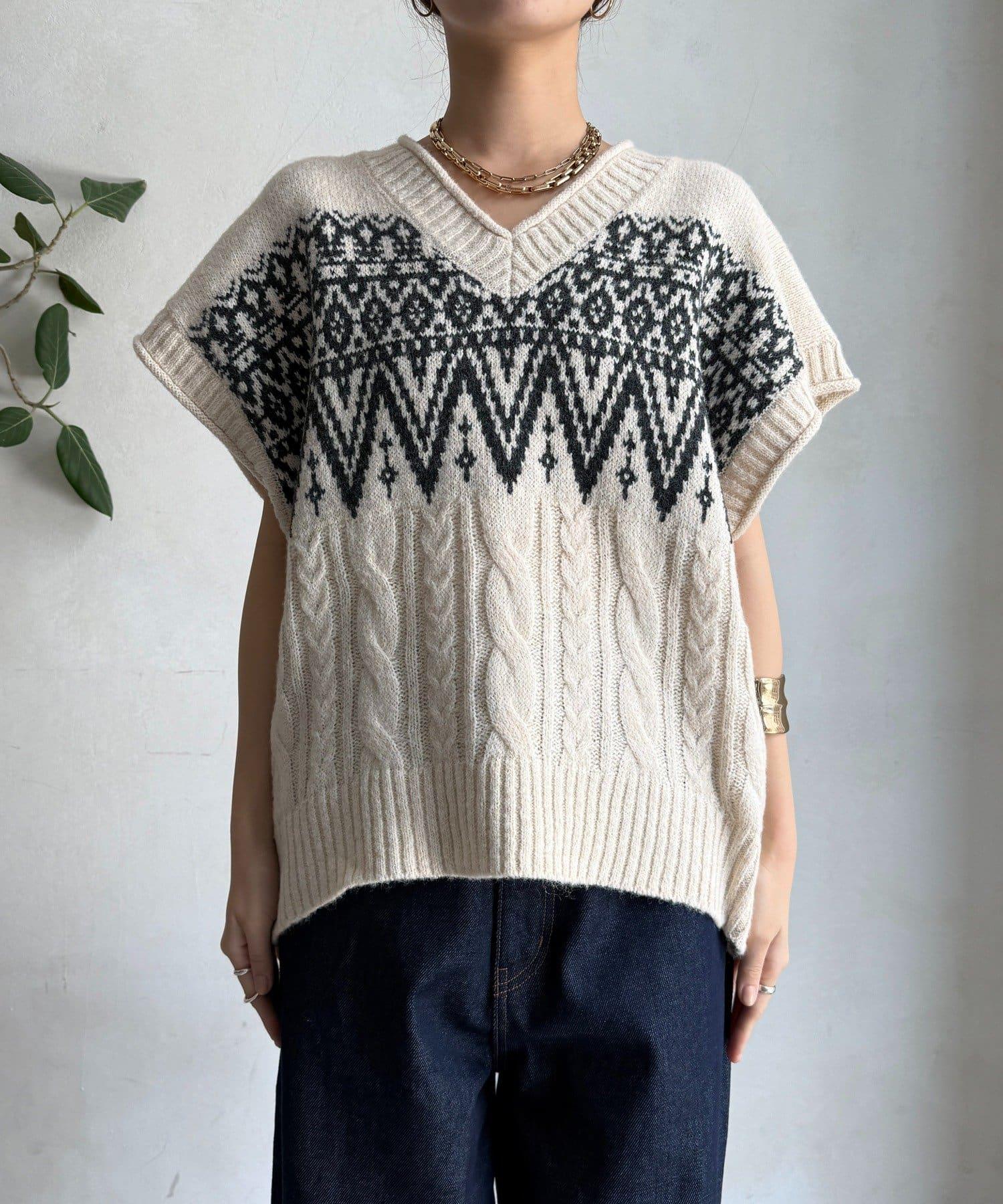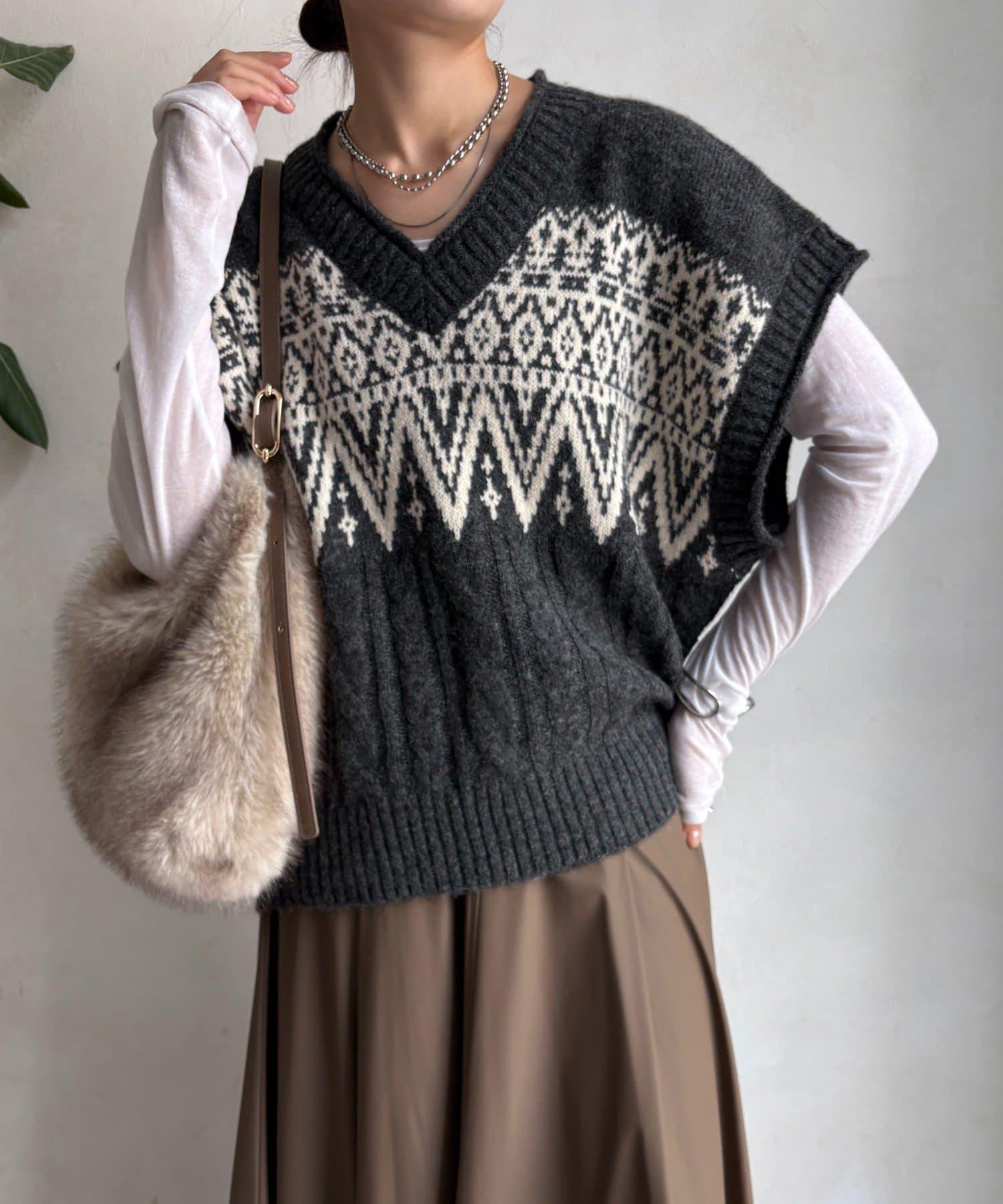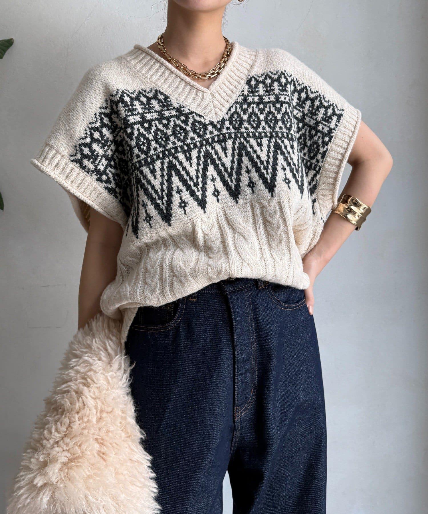 北歐圖案也以單色表現,將其昇華為馬甲,搭配襯衫,會給人更清新、更鮮明的印象。