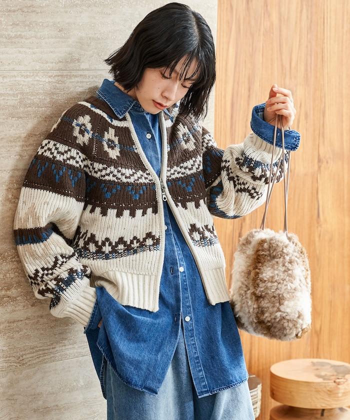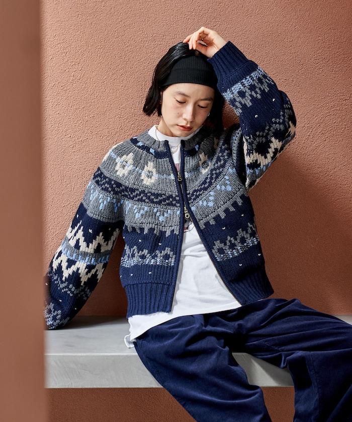 北歐風拉鍊短款針織開衫