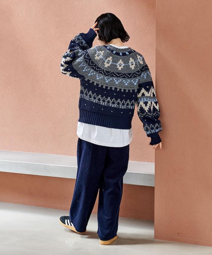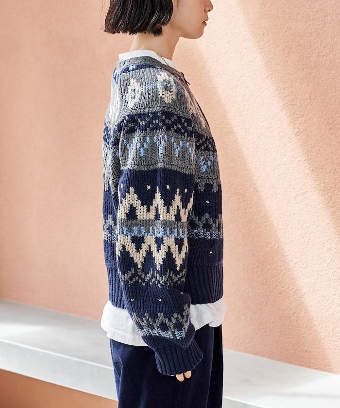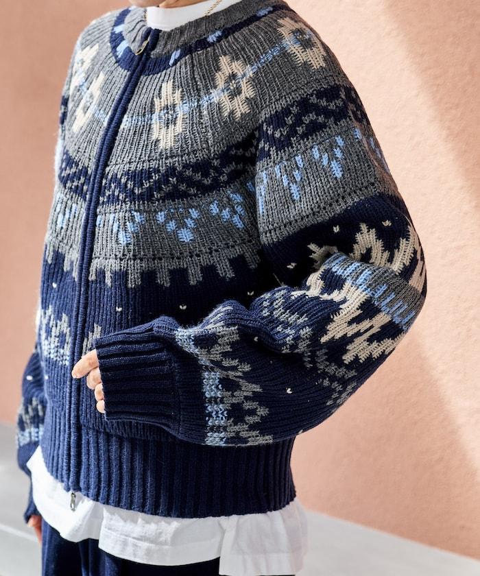 這是一款帶有溫暖北歐圖案的開衫。
