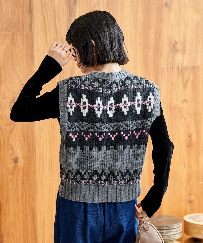 這款馬甲小巧而醒目,反映了當前北歐復古針織衫的流行趨勢。