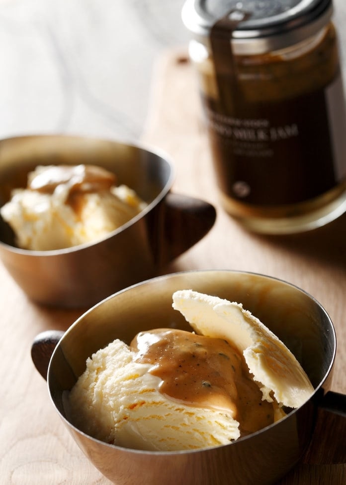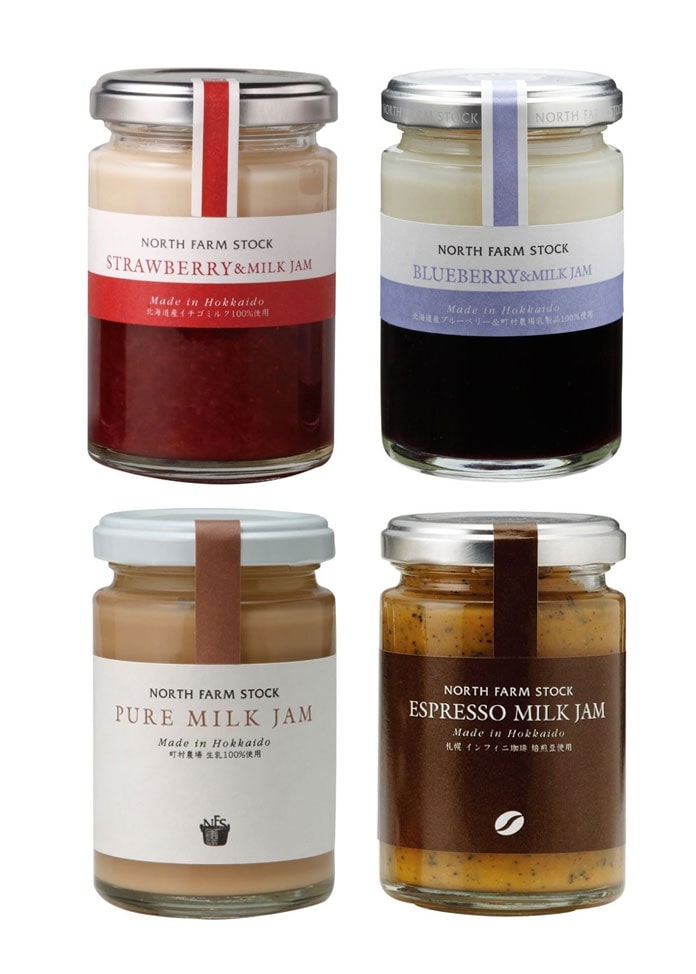👍的水果果醬是保存型的,由成熟的水果製成,其甜度因北海道惡劣的氣候而提高,使果醬具有堅實的果肉質感。牛奶果醬使用來自北海道江別市町村農場的新鮮原奶,該農場多年來一直在生產高質量的乳製品。