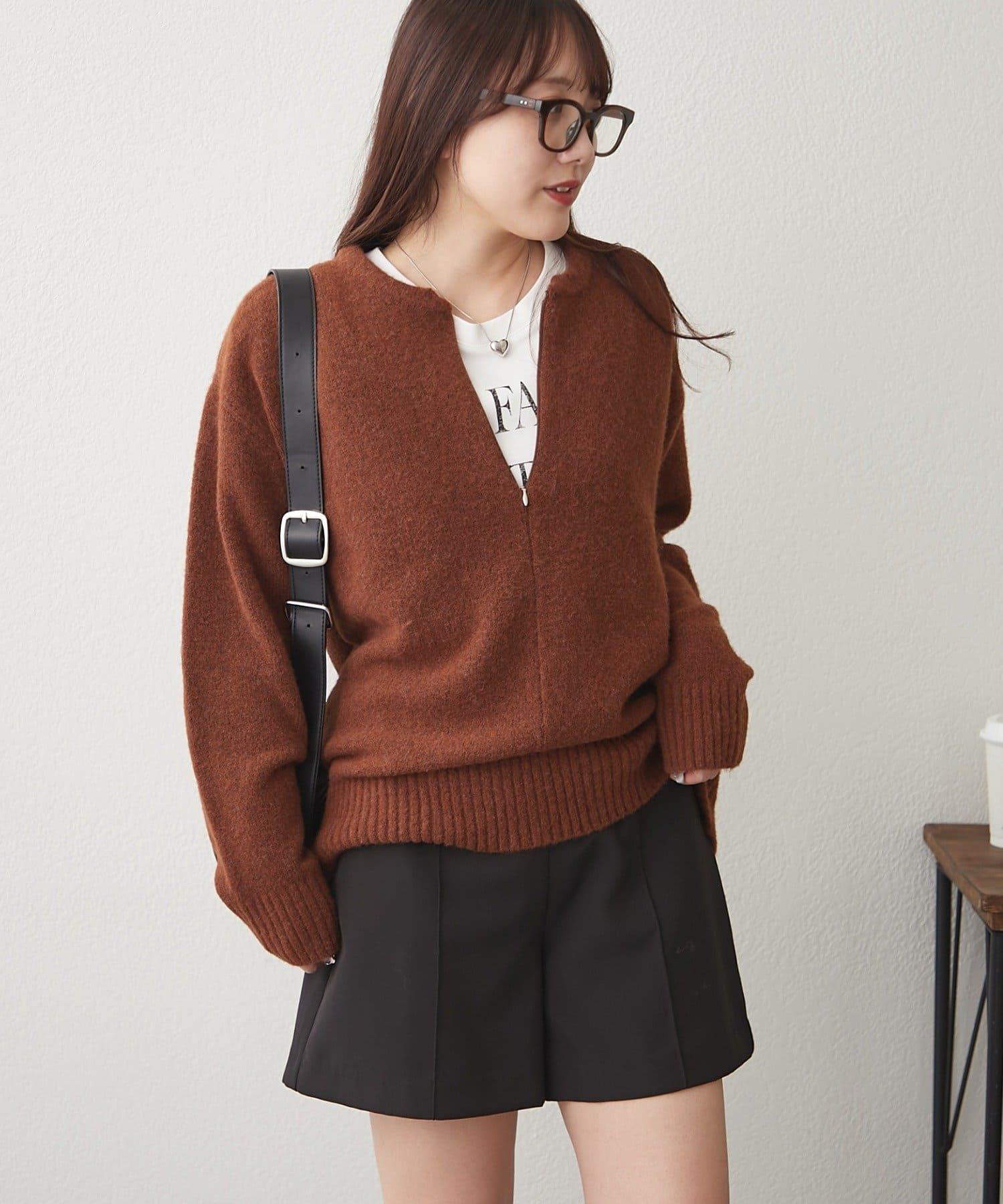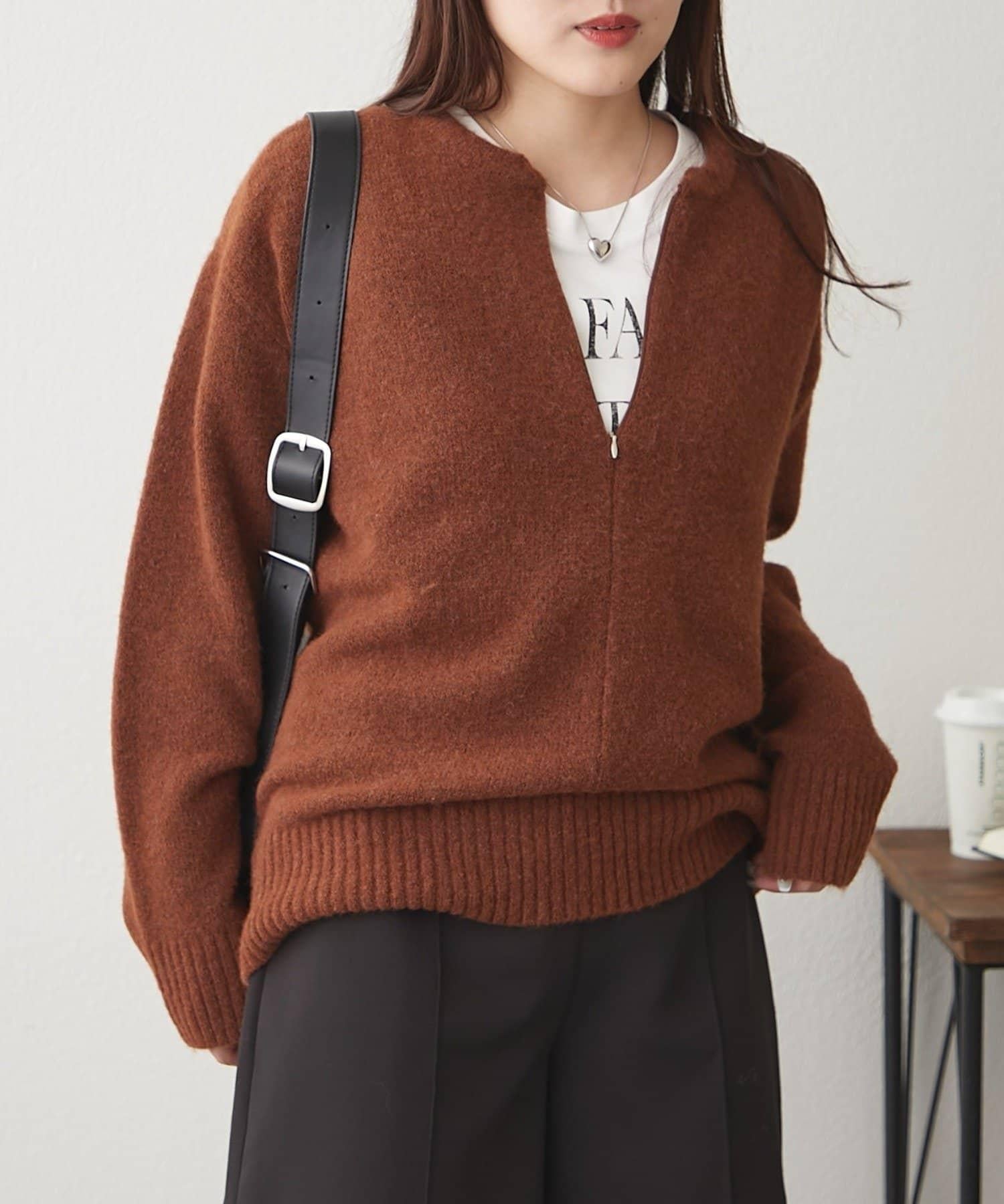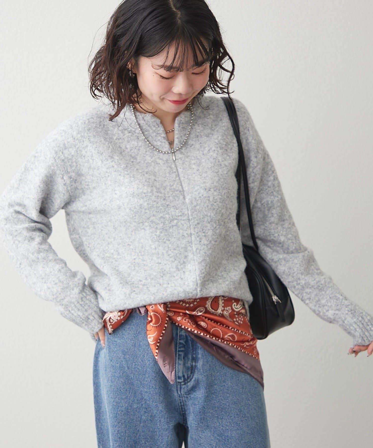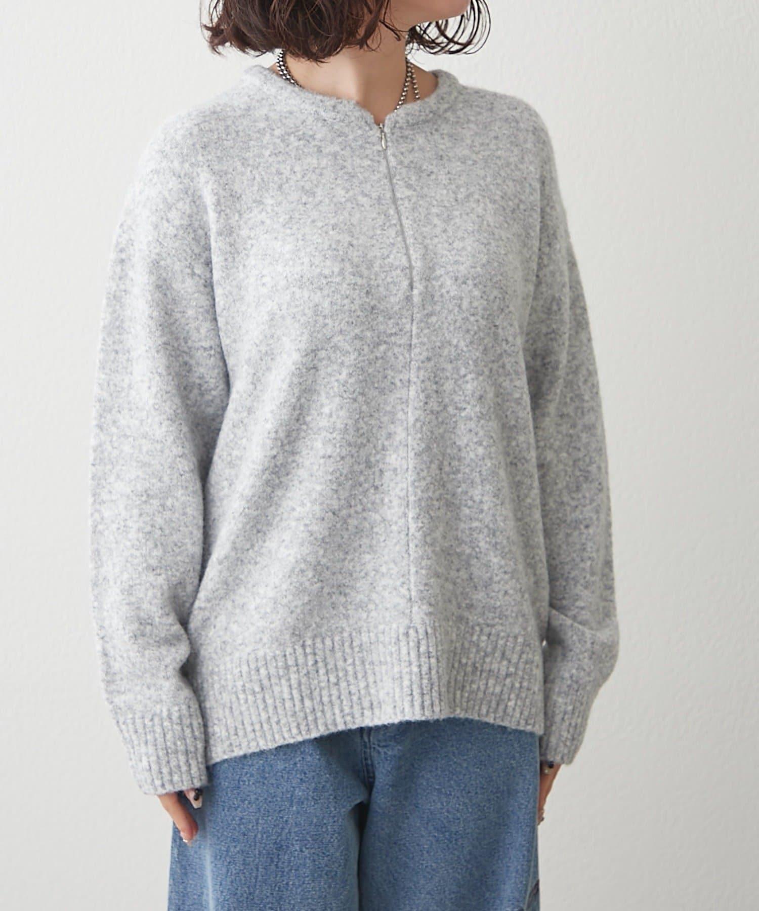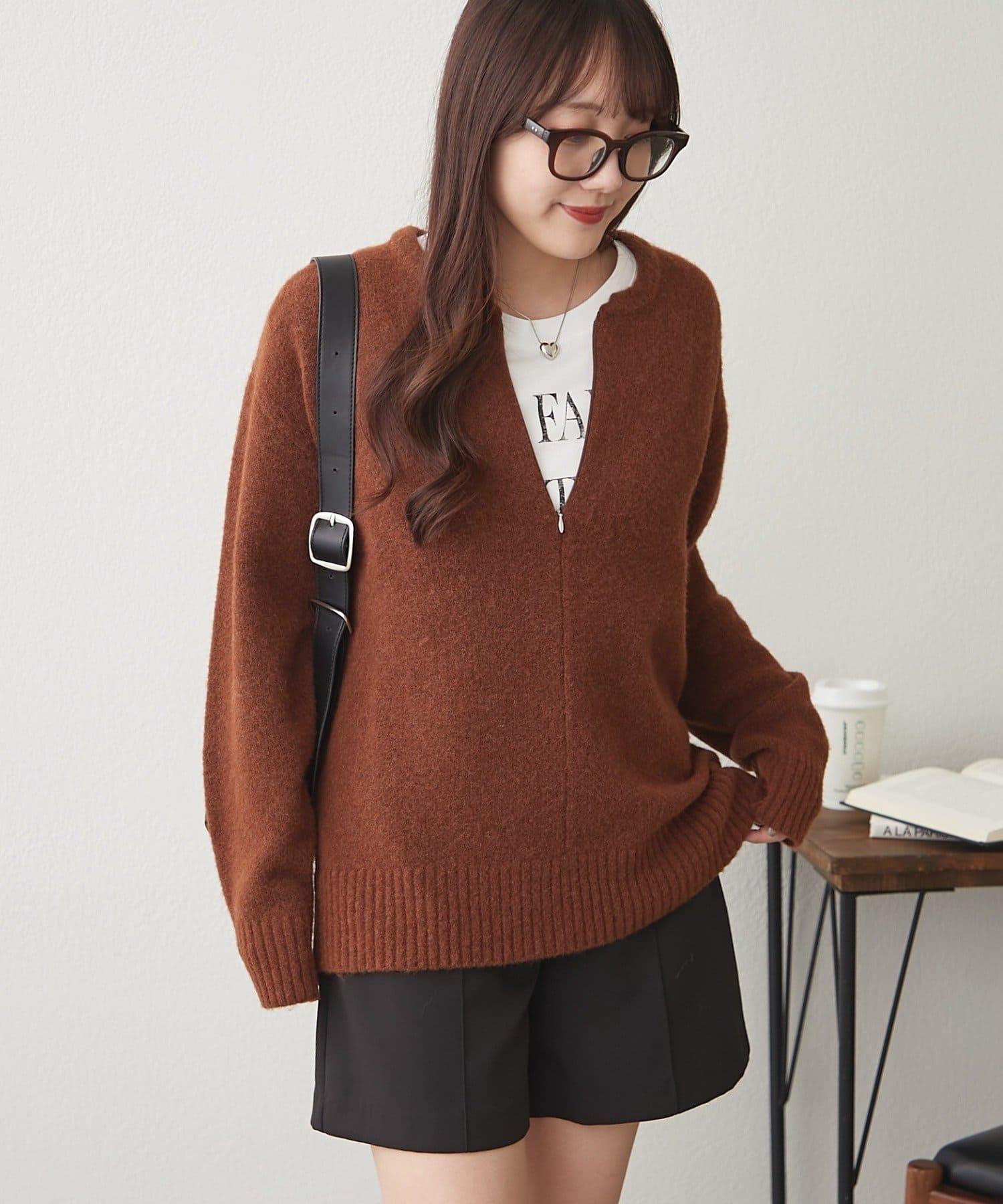 半拉鍊針織衫,材質手感柔軟,可寬鬆穿著。