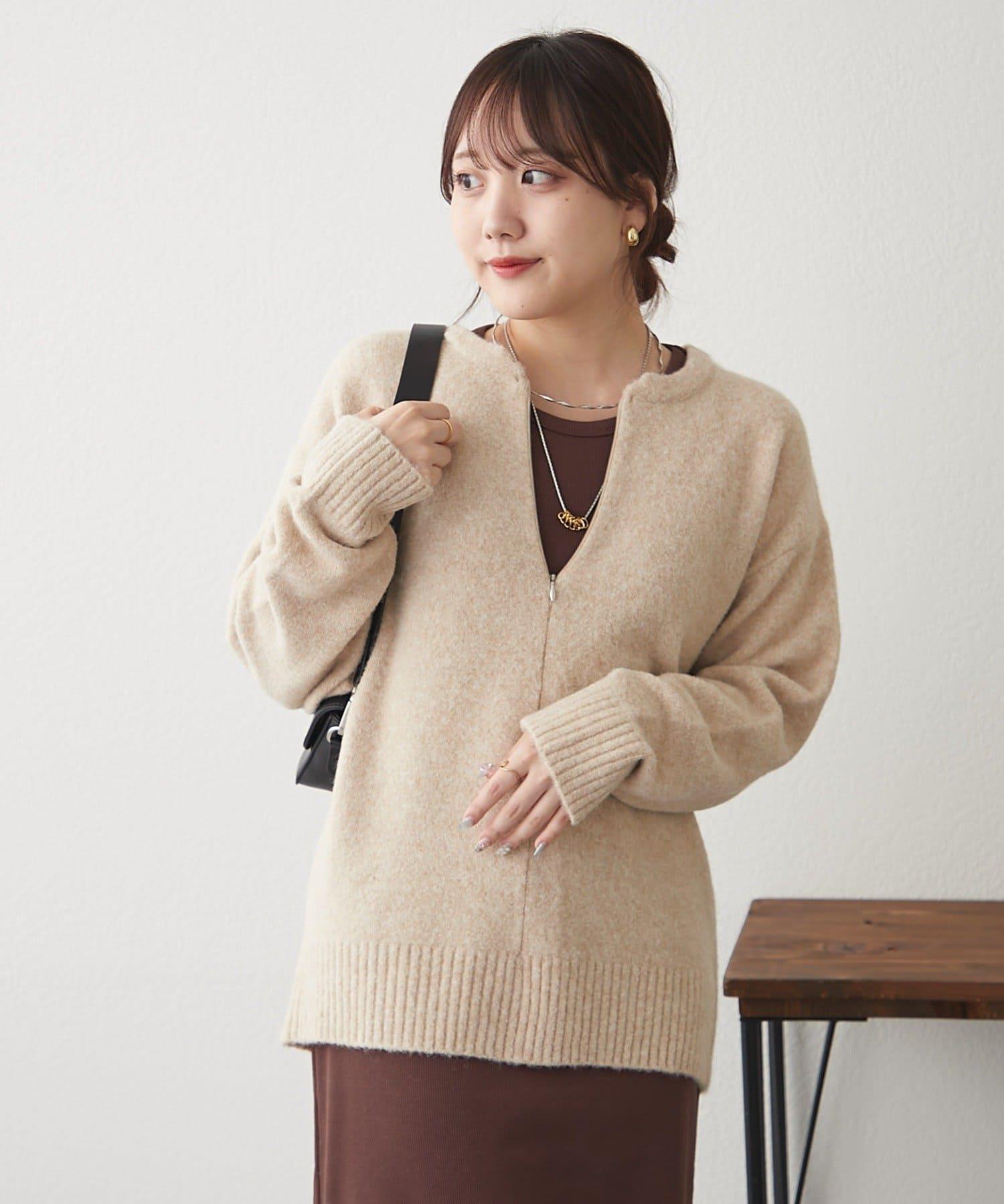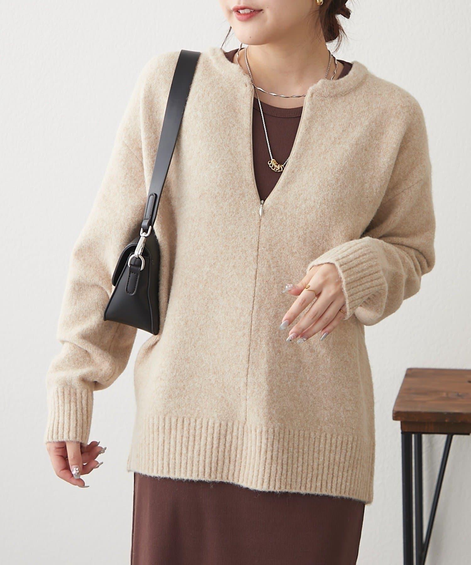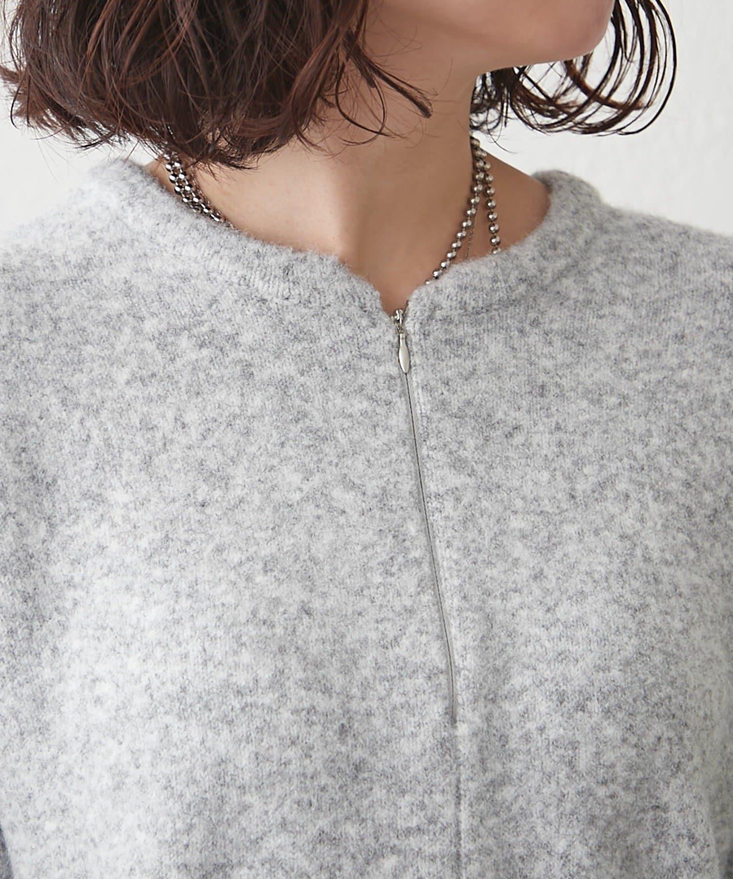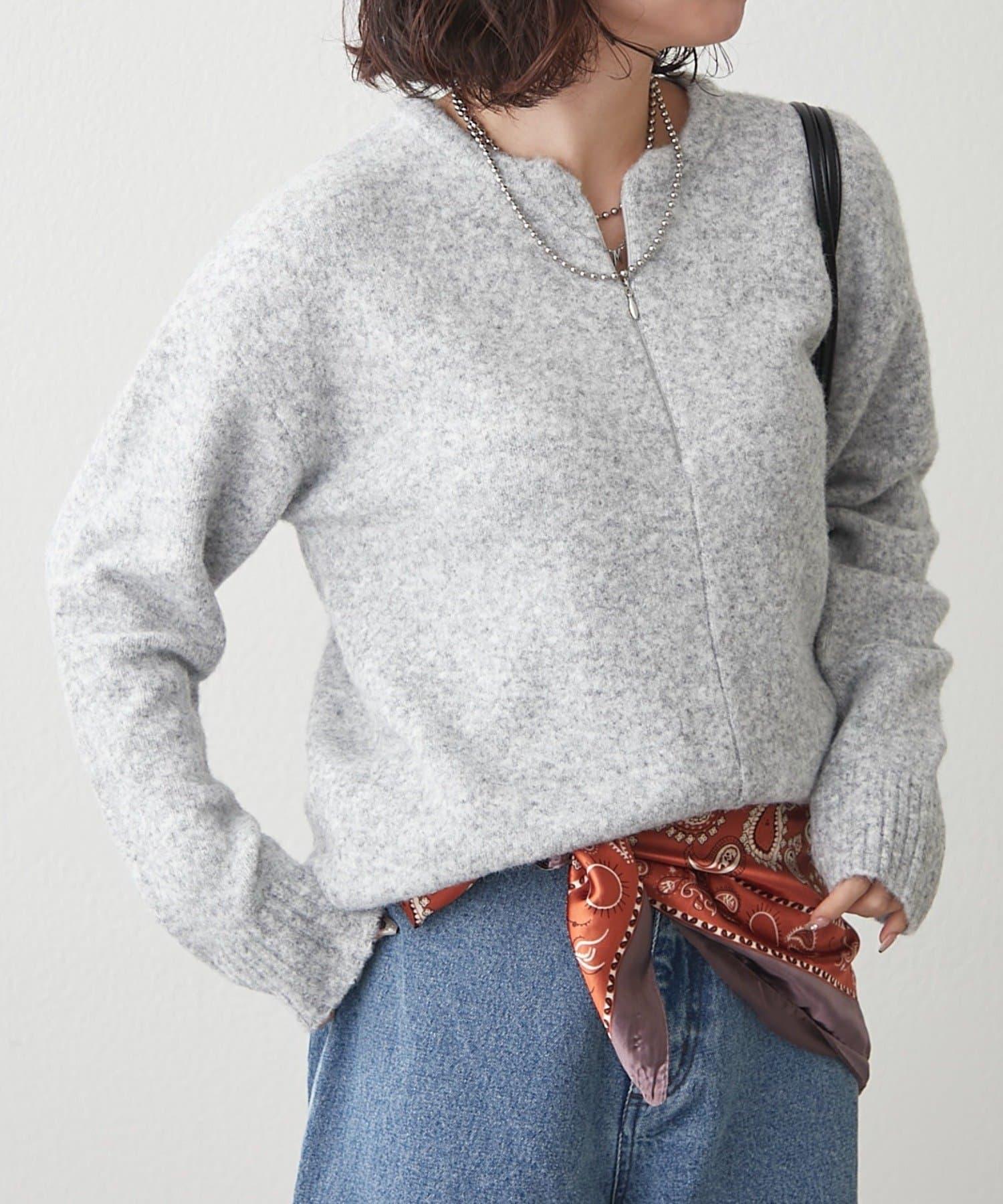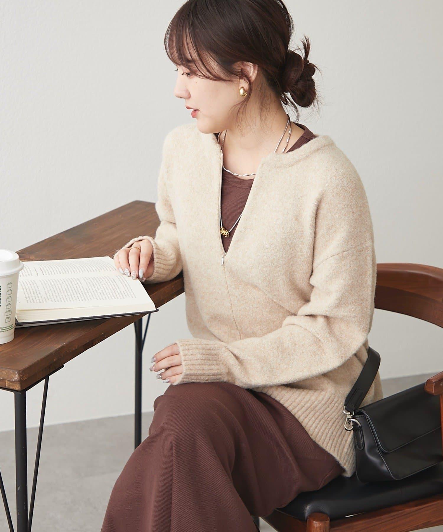 半拉鍊針織衫,材質手感柔軟,可寬鬆穿著。