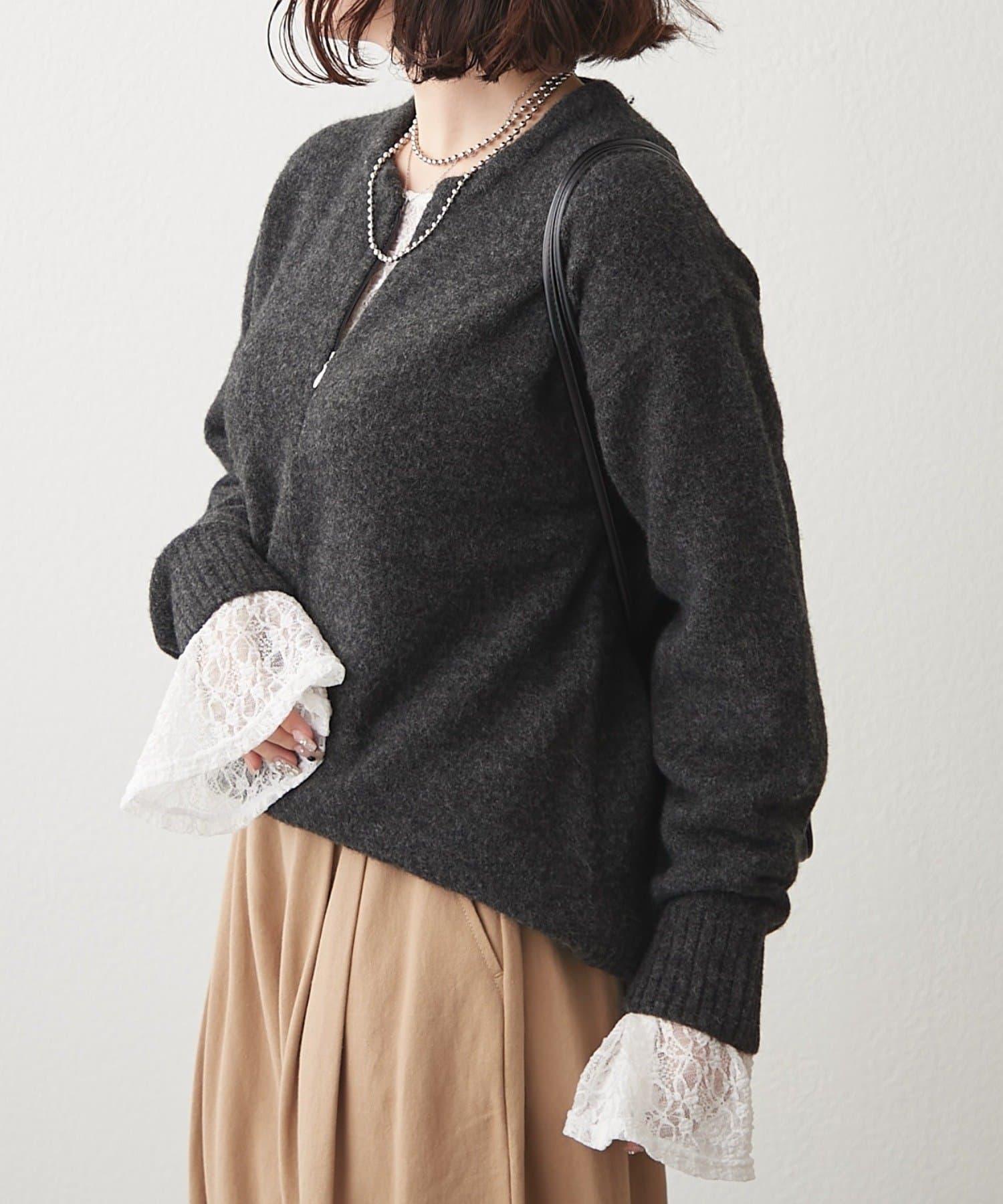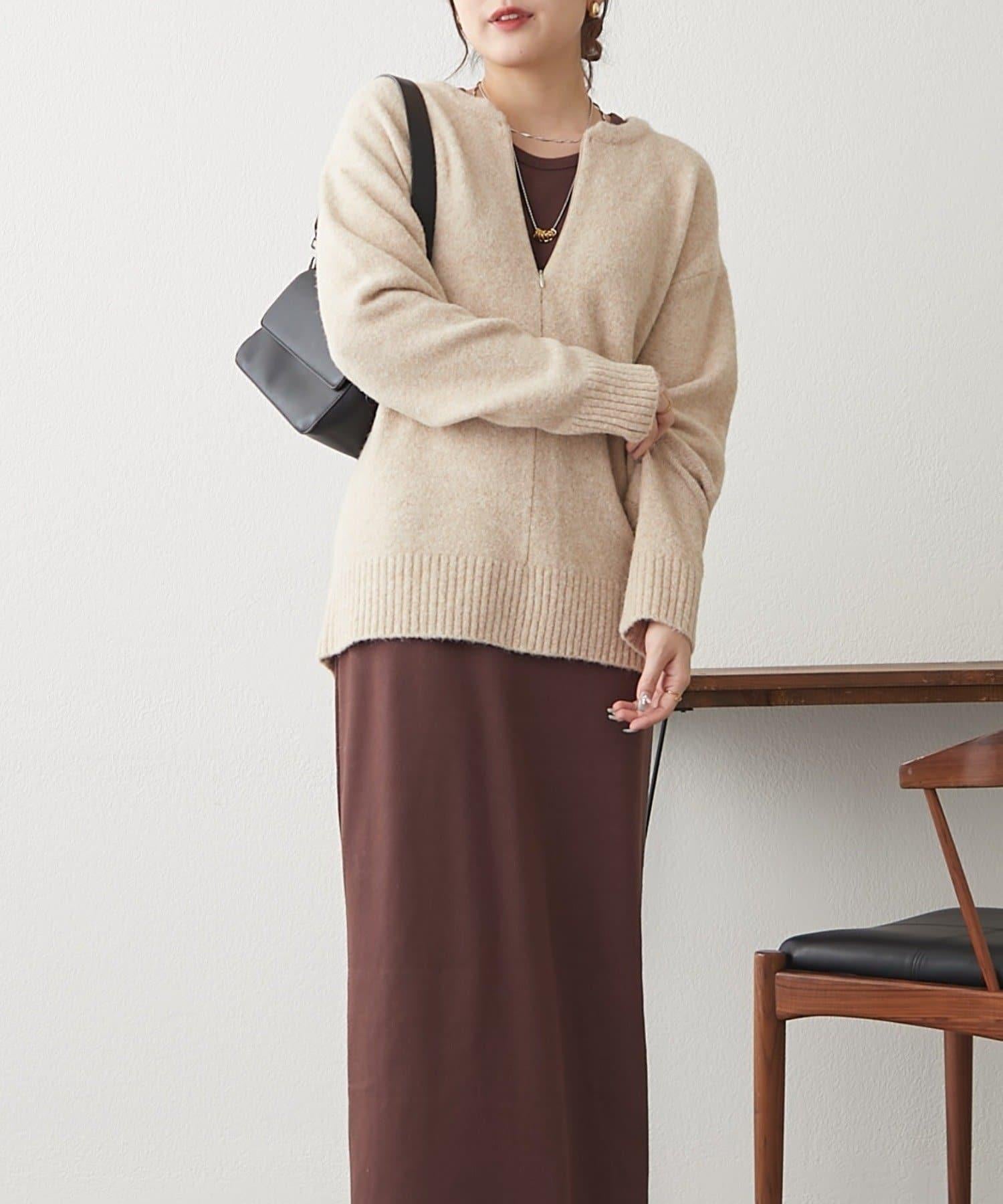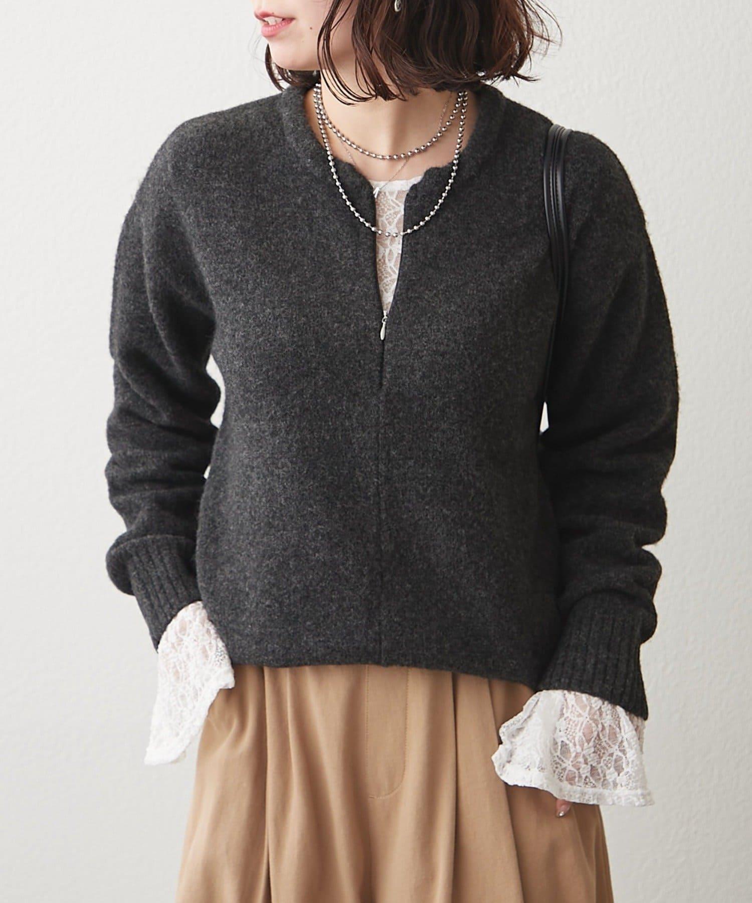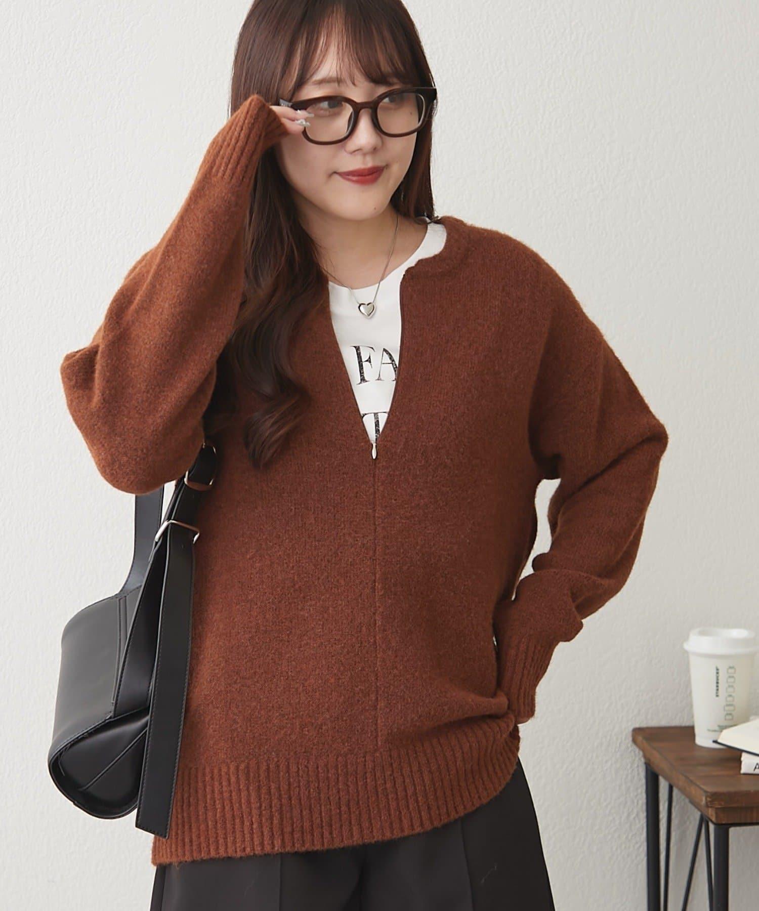 半拉鍊針織衫,材質手感柔軟,可寬鬆穿著。