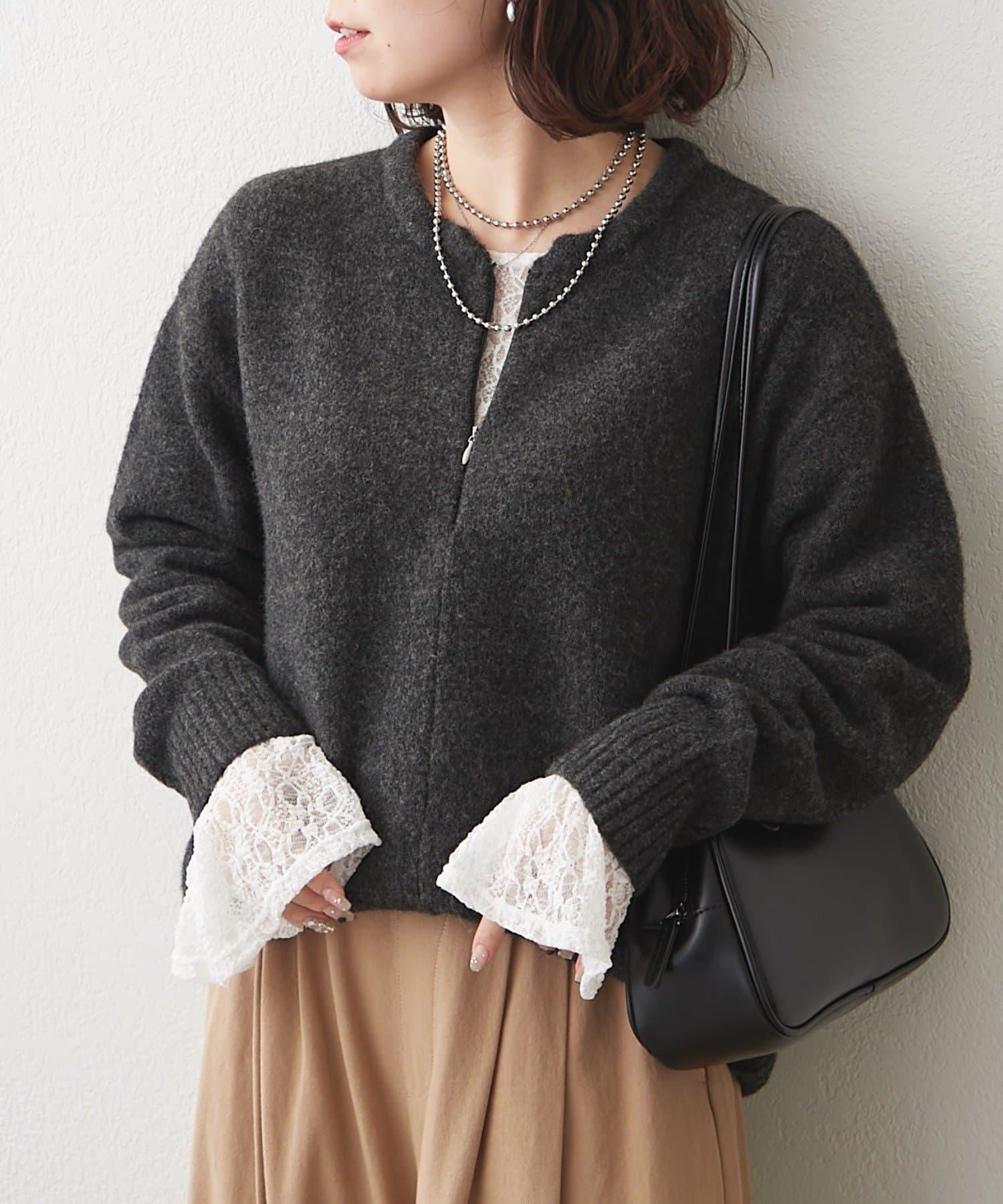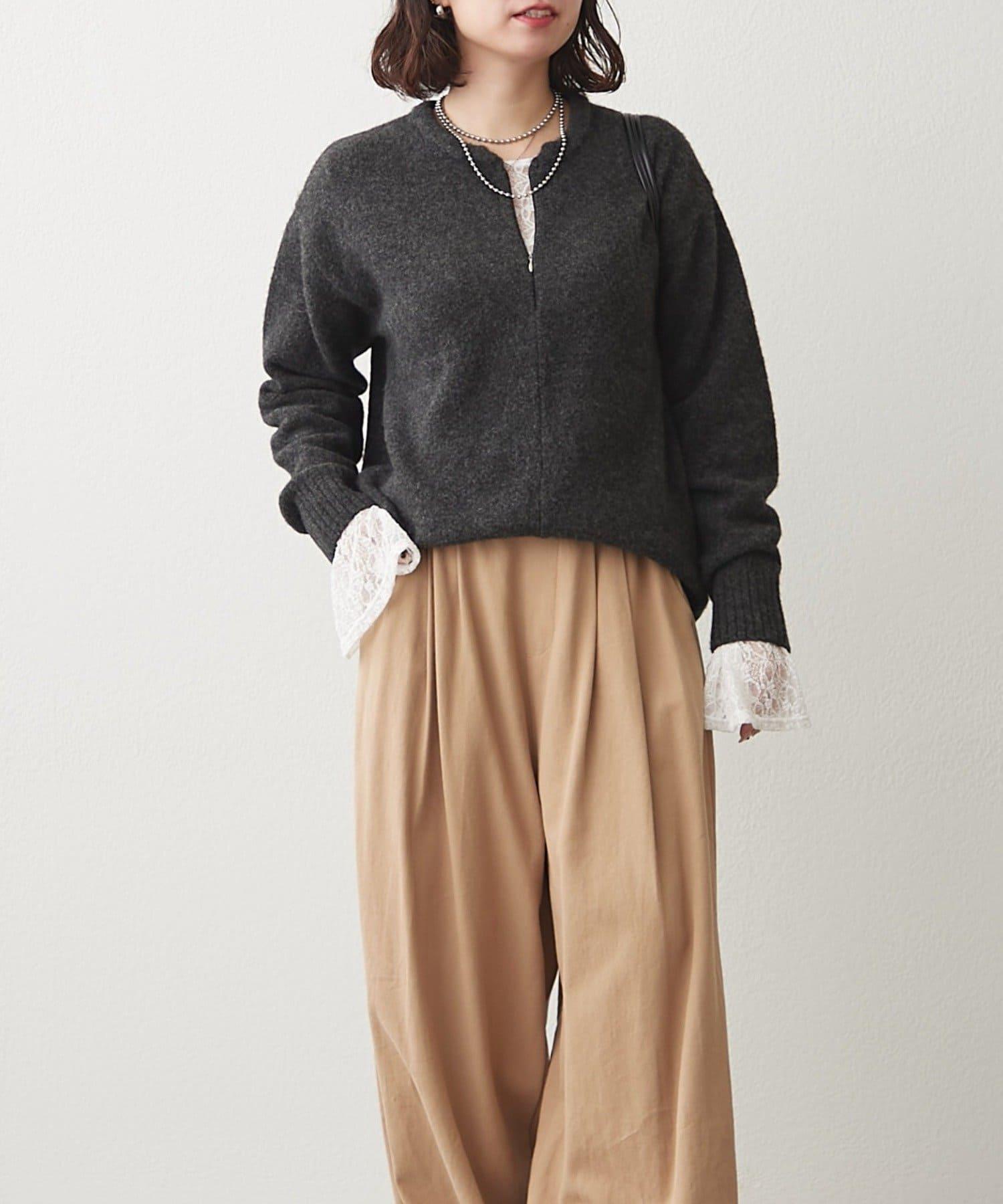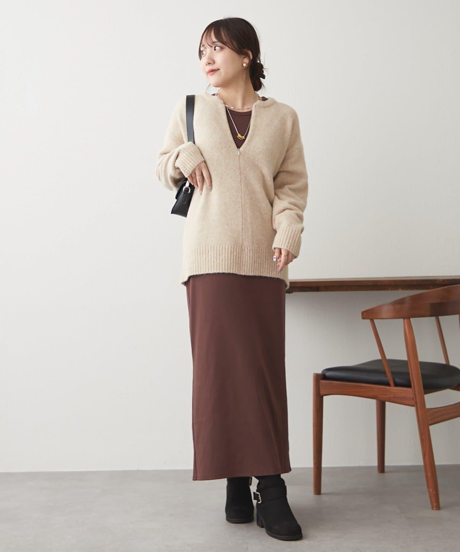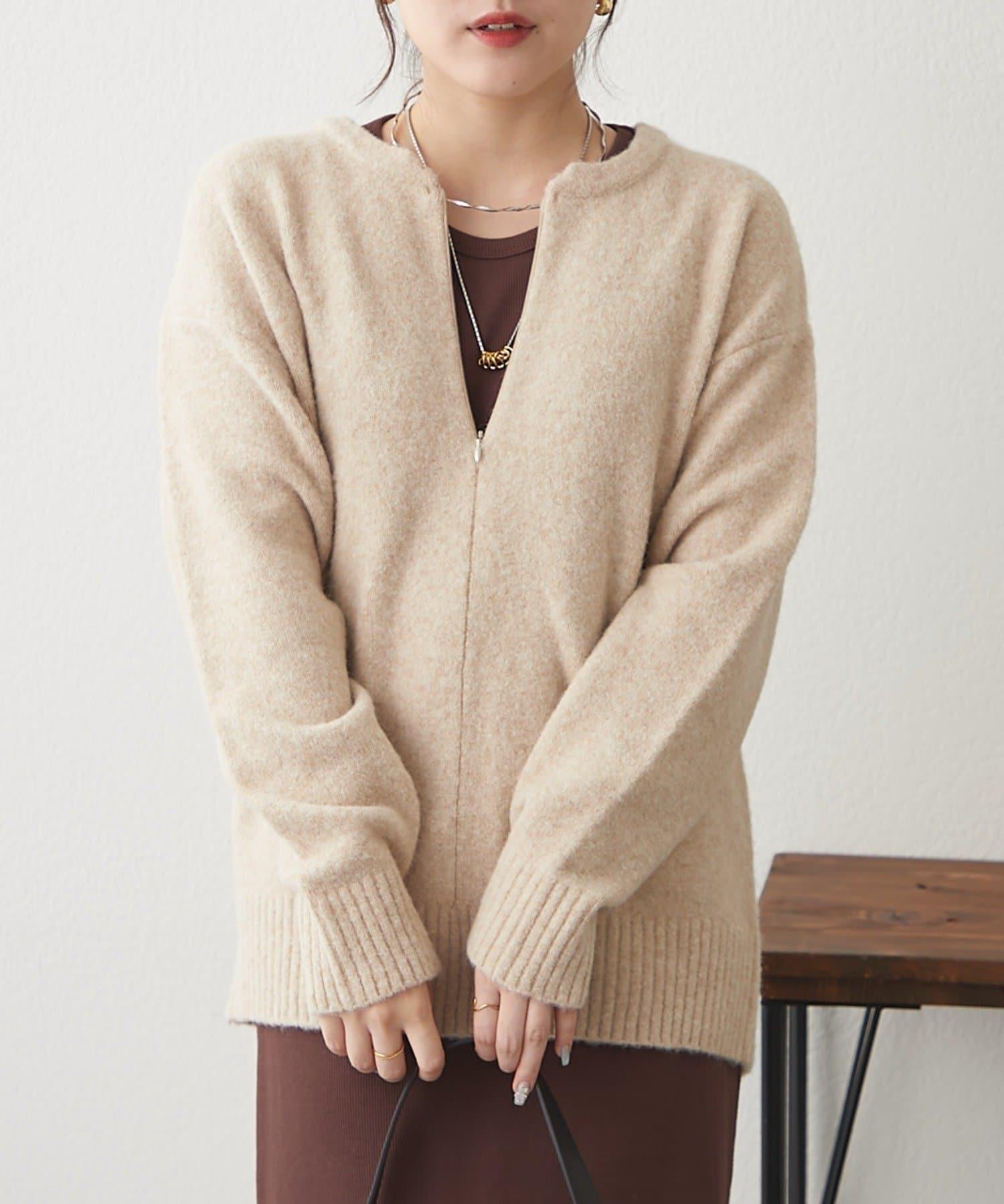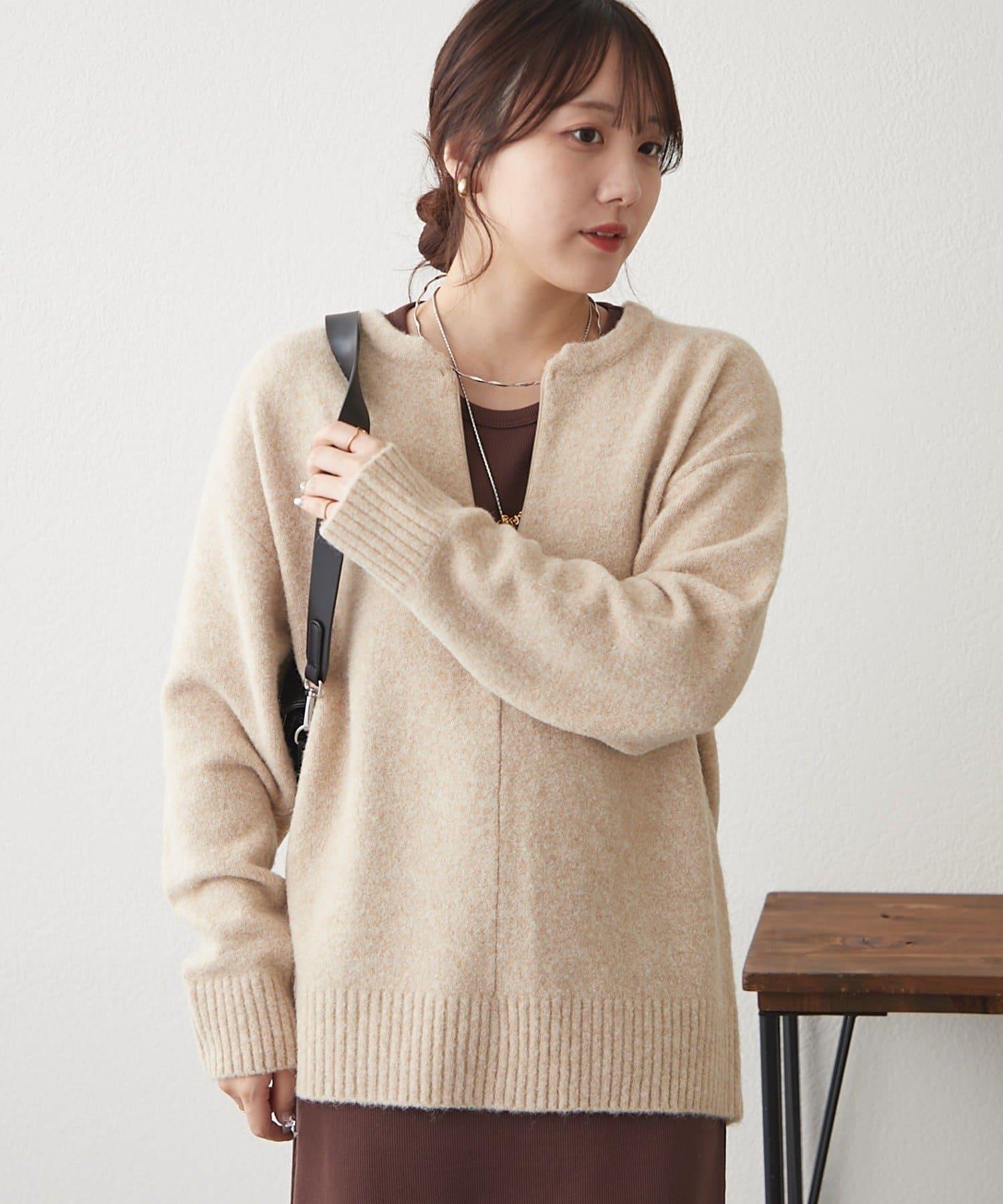 半拉鍊針織衫,材質手感柔軟,可寬鬆穿著。