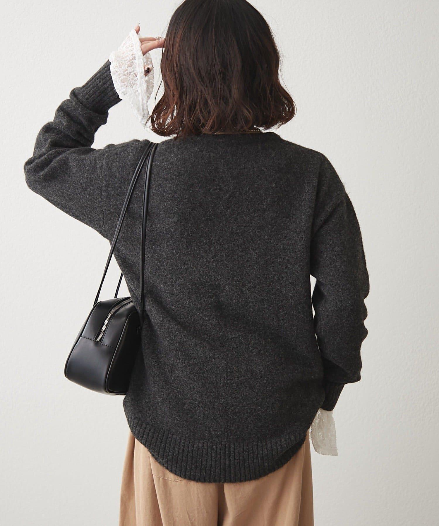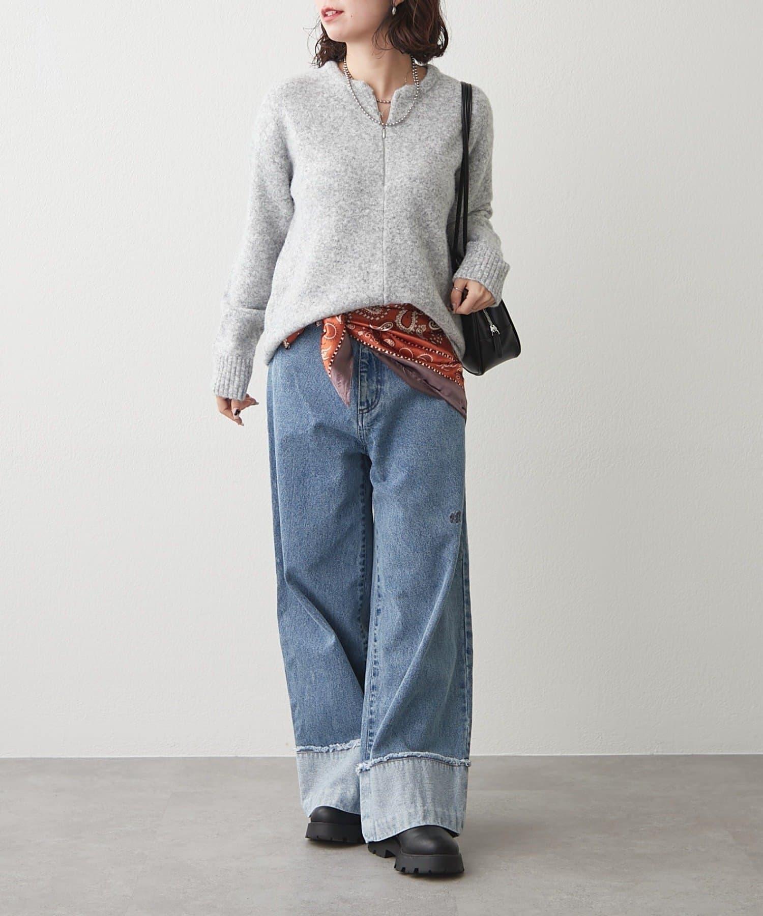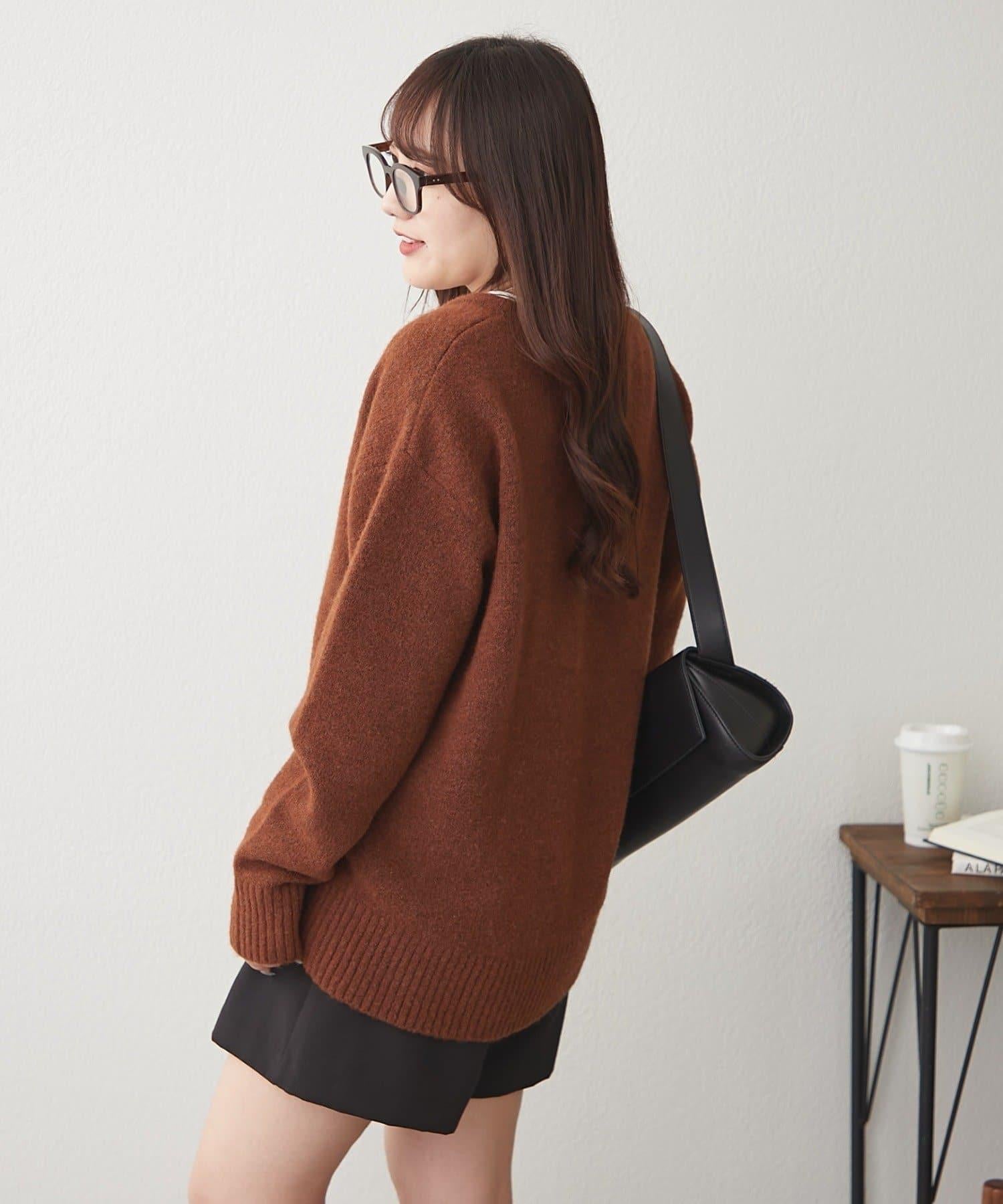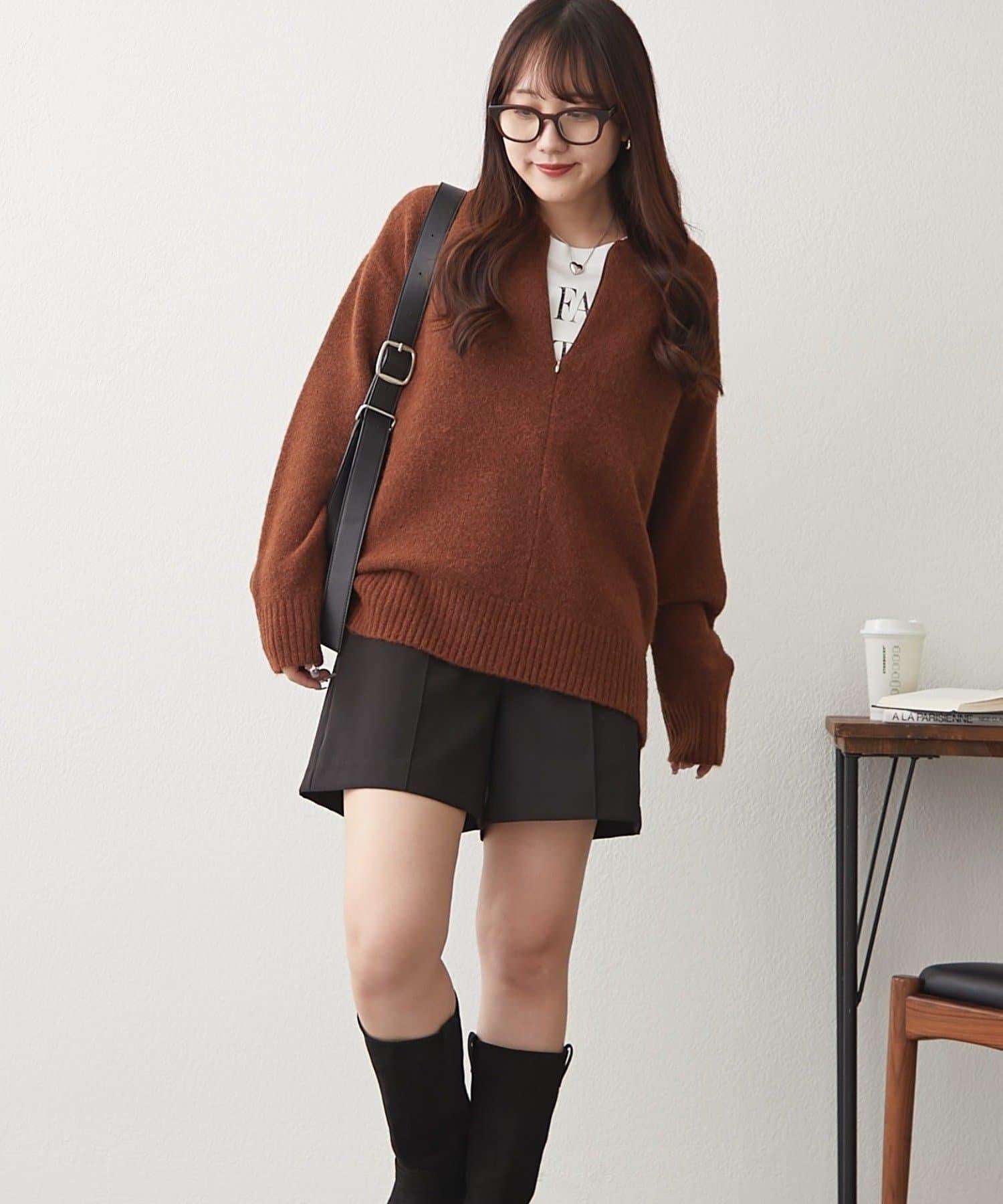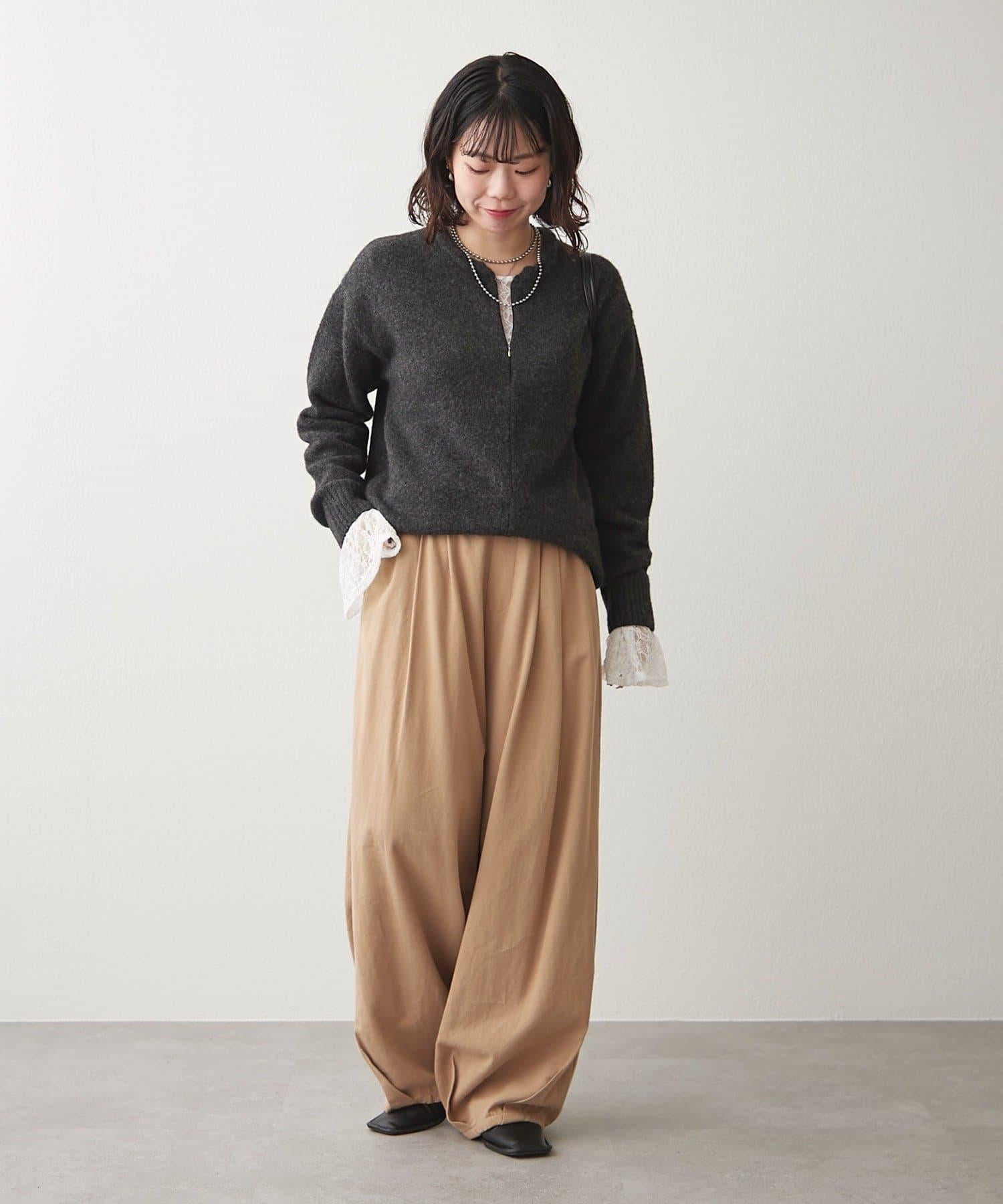 半拉鍊針織衫,材質手感柔軟,可寬鬆穿著。