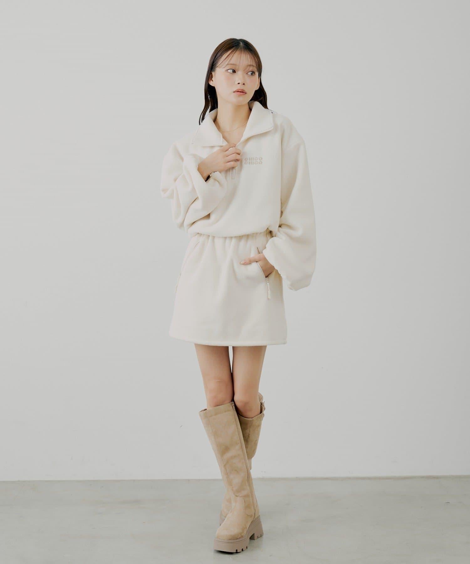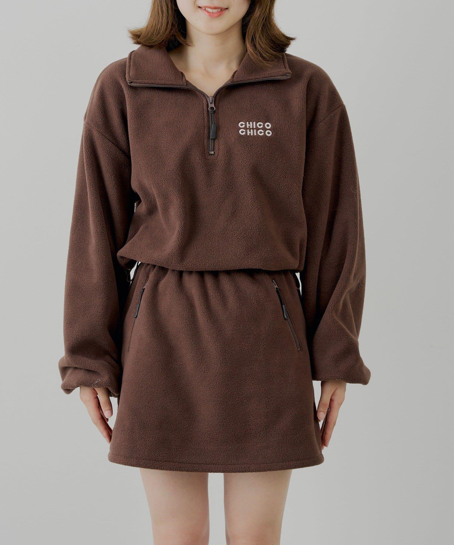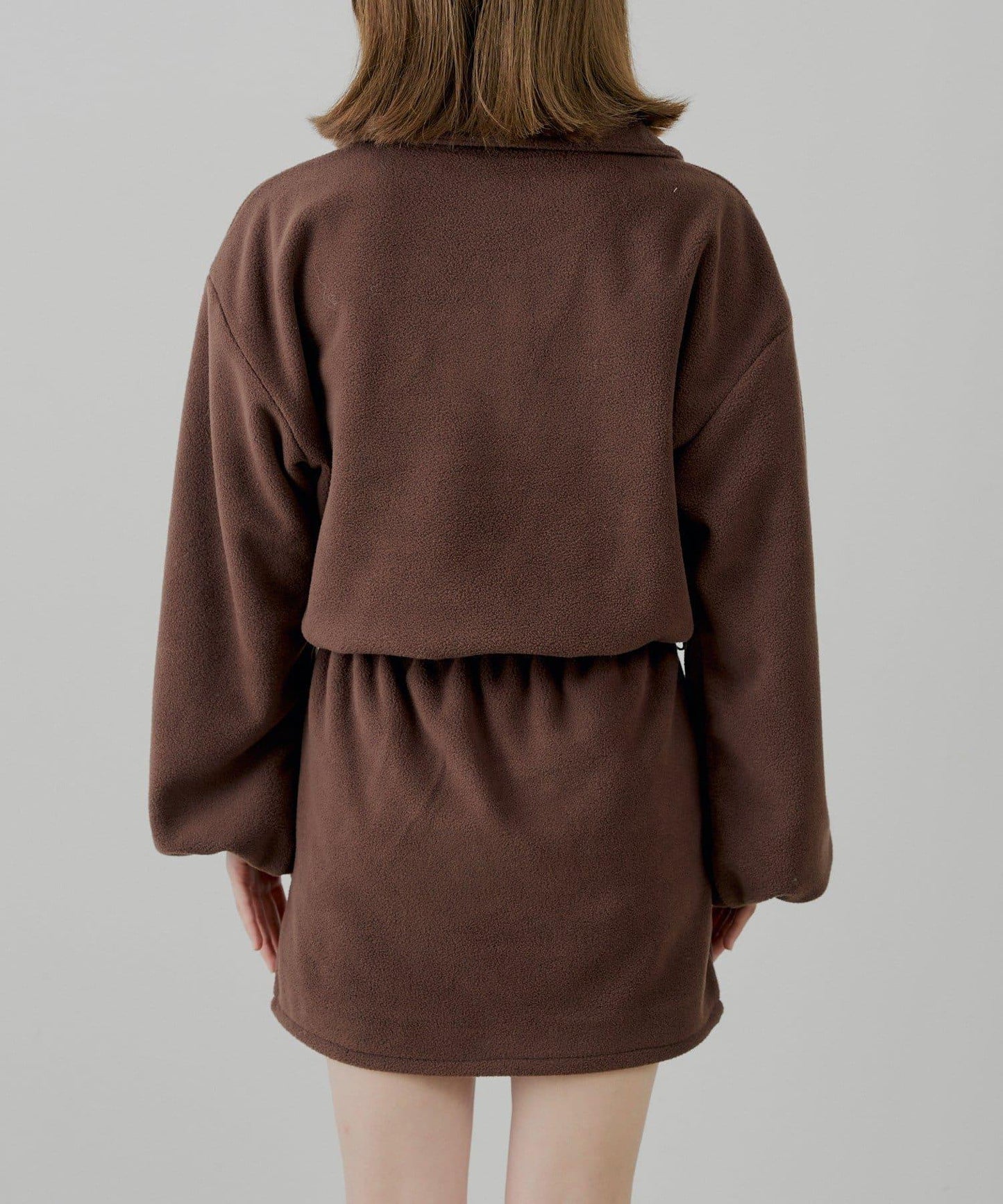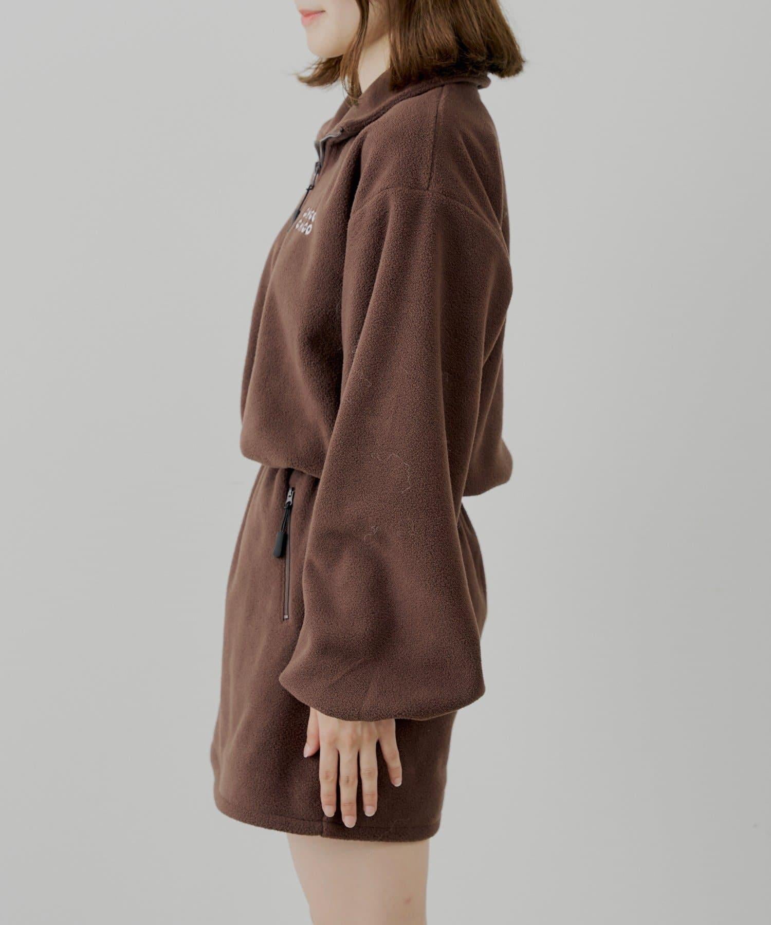 這款半拉鍊迷你連衣裙採用溫暖舒適的抓絨面料製成。