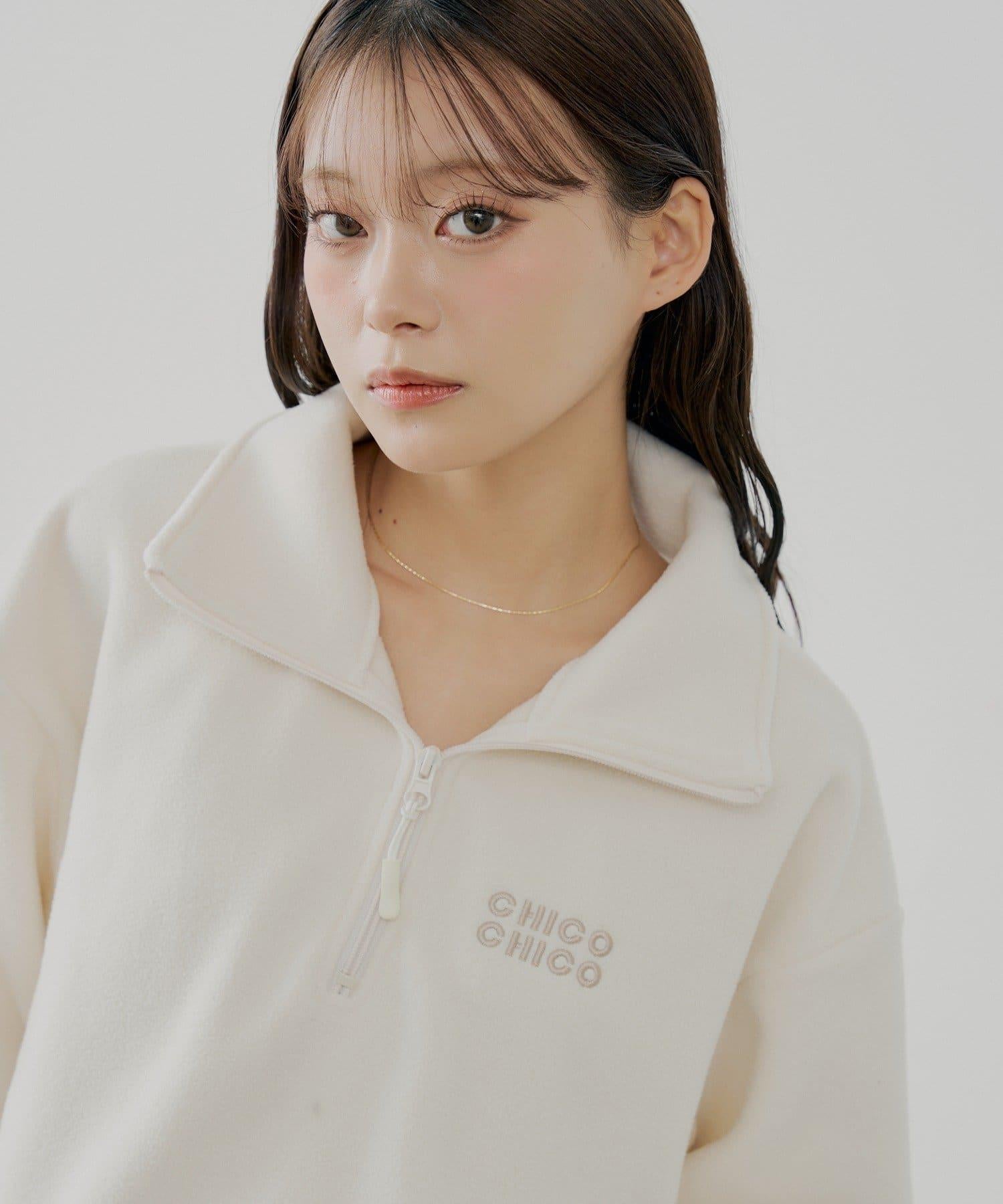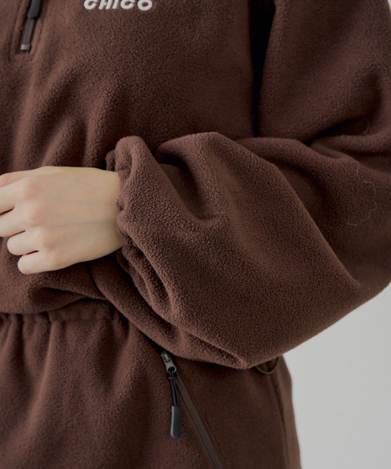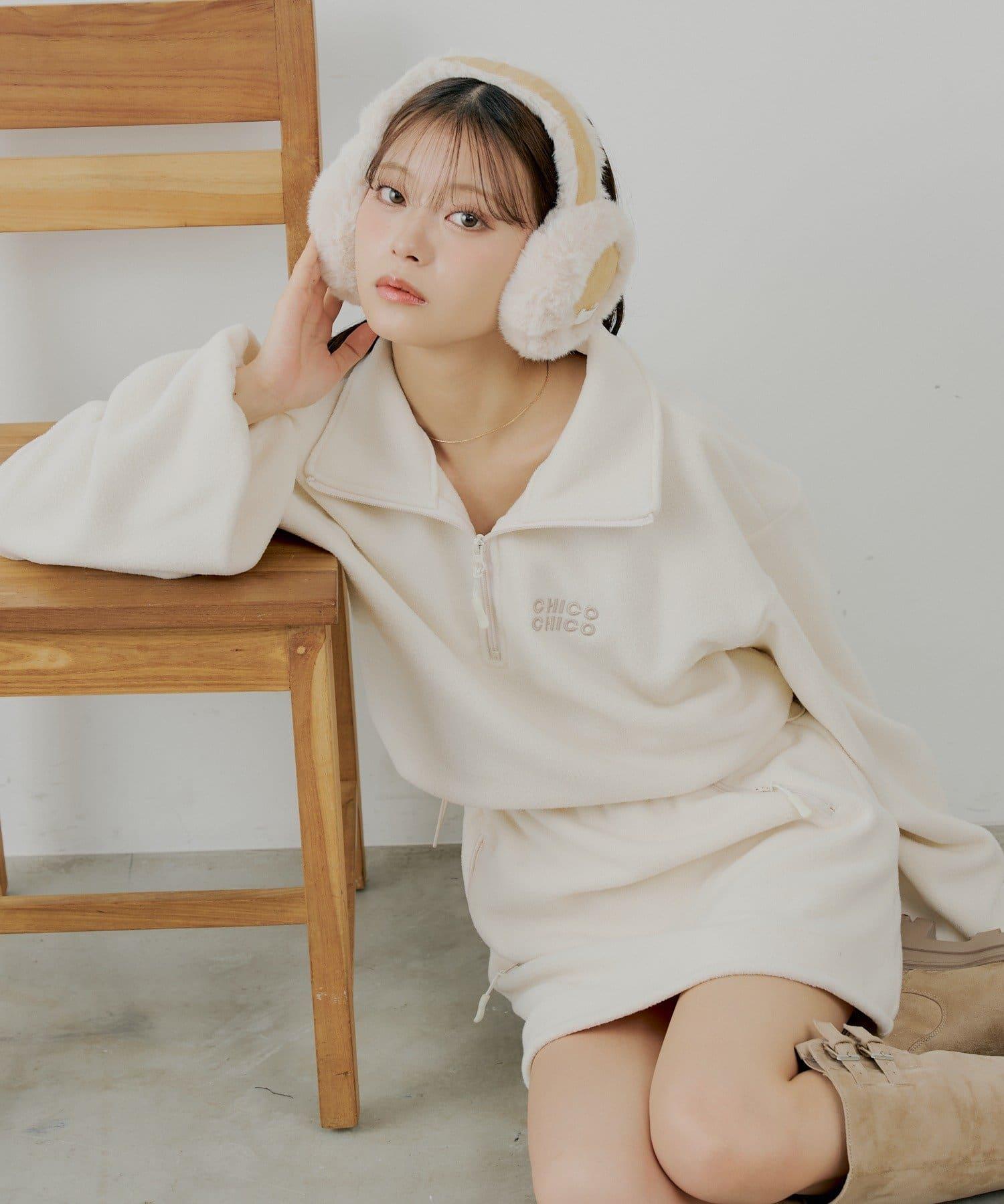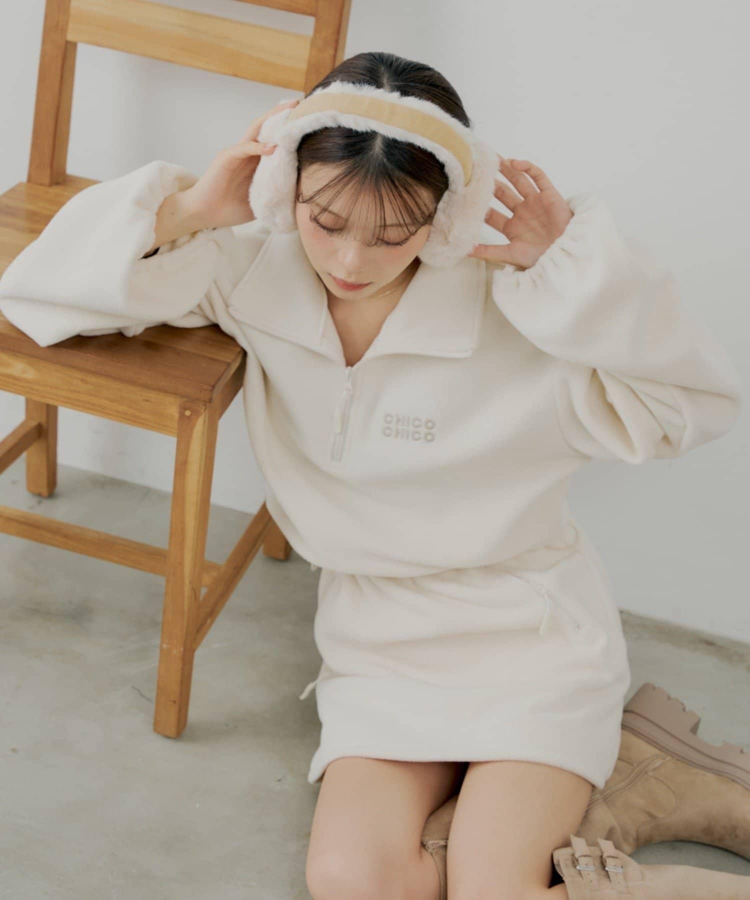 這款半拉鍊迷你連衣裙採用溫暖舒適的抓絨面料製成。