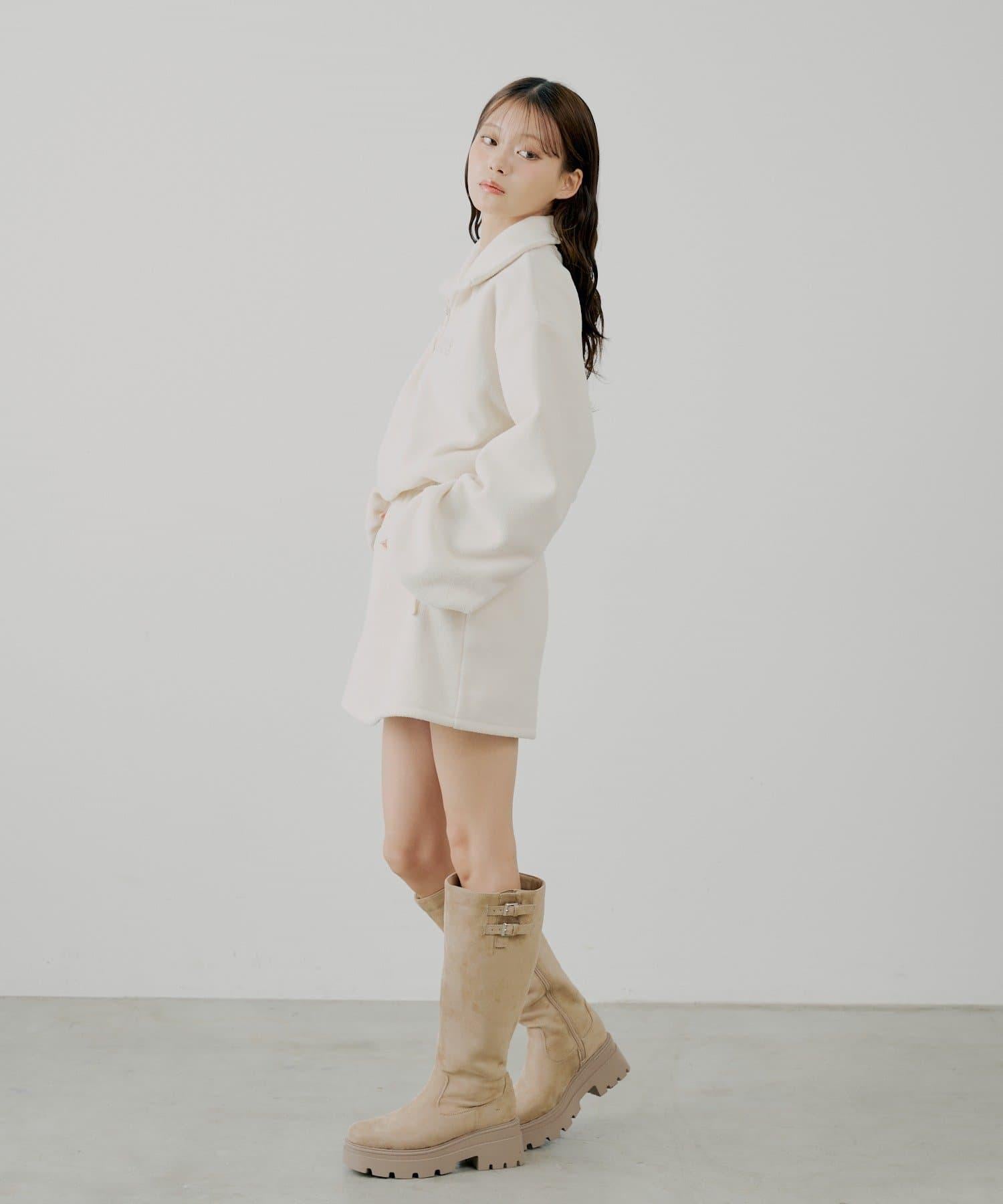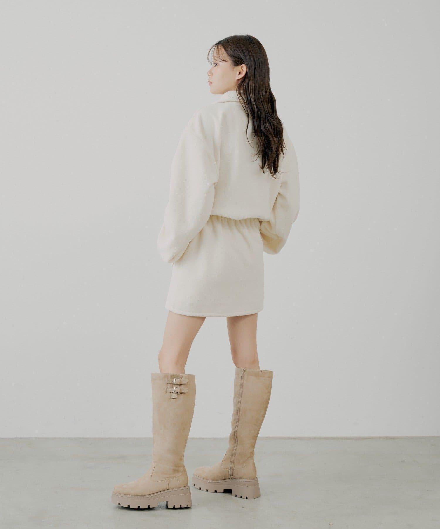 蓬鬆的羊毛面料使這款半拉鍊連衣裙成為寒冷季節的完美之選!