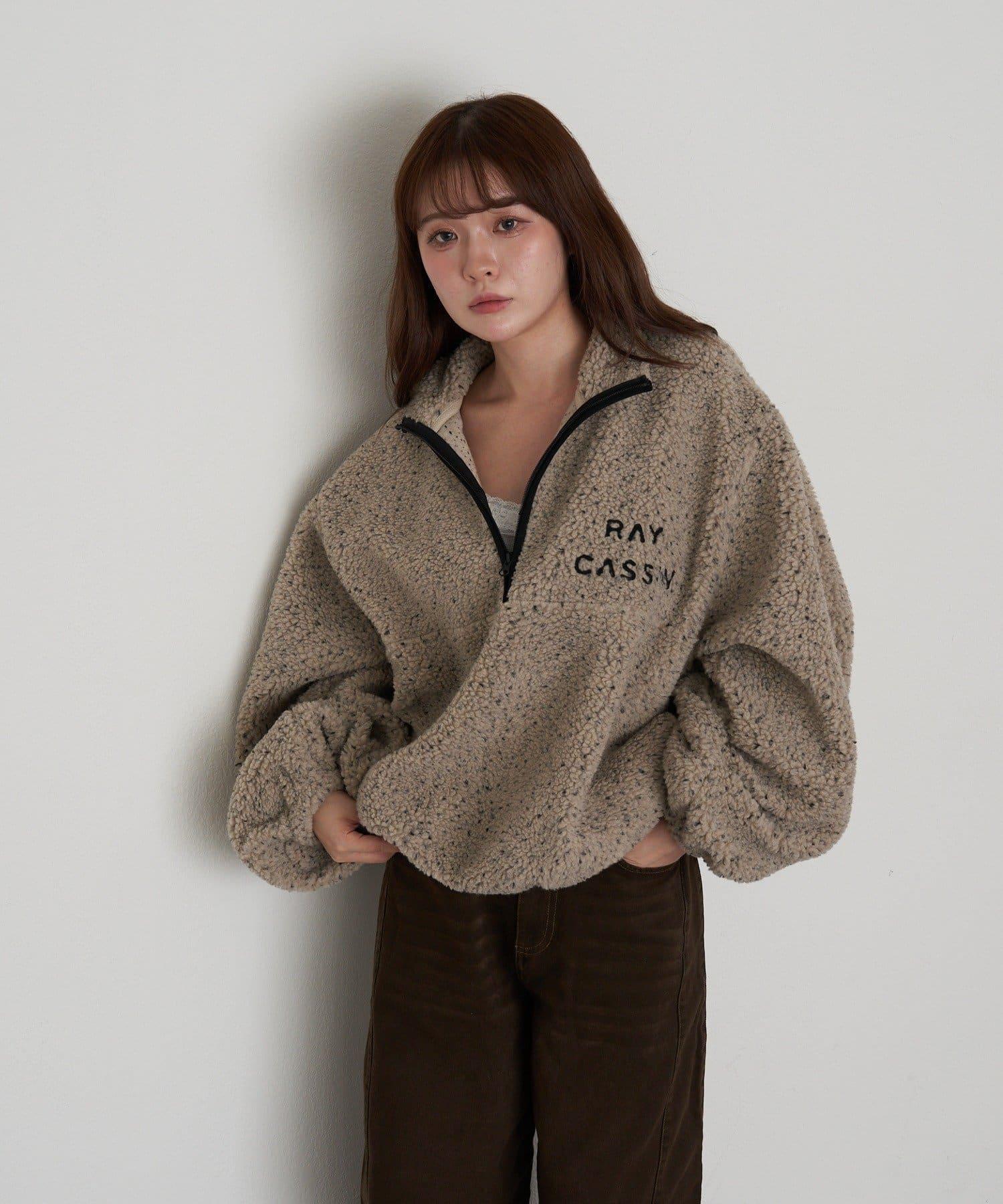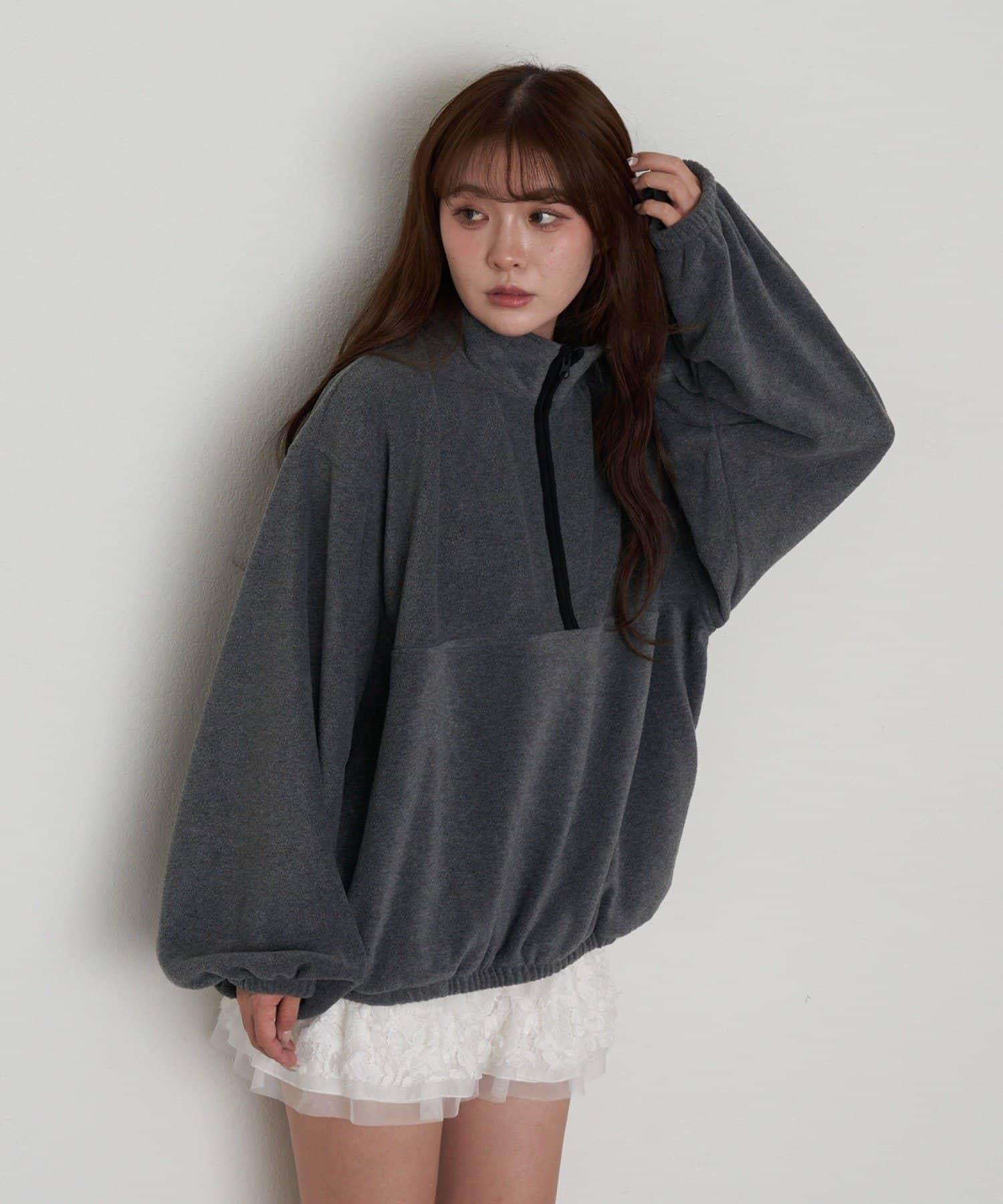 預約商品半拉鍊胸部刺繡抓絨衫