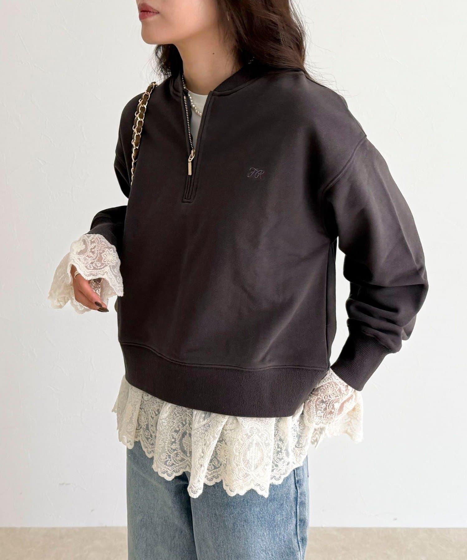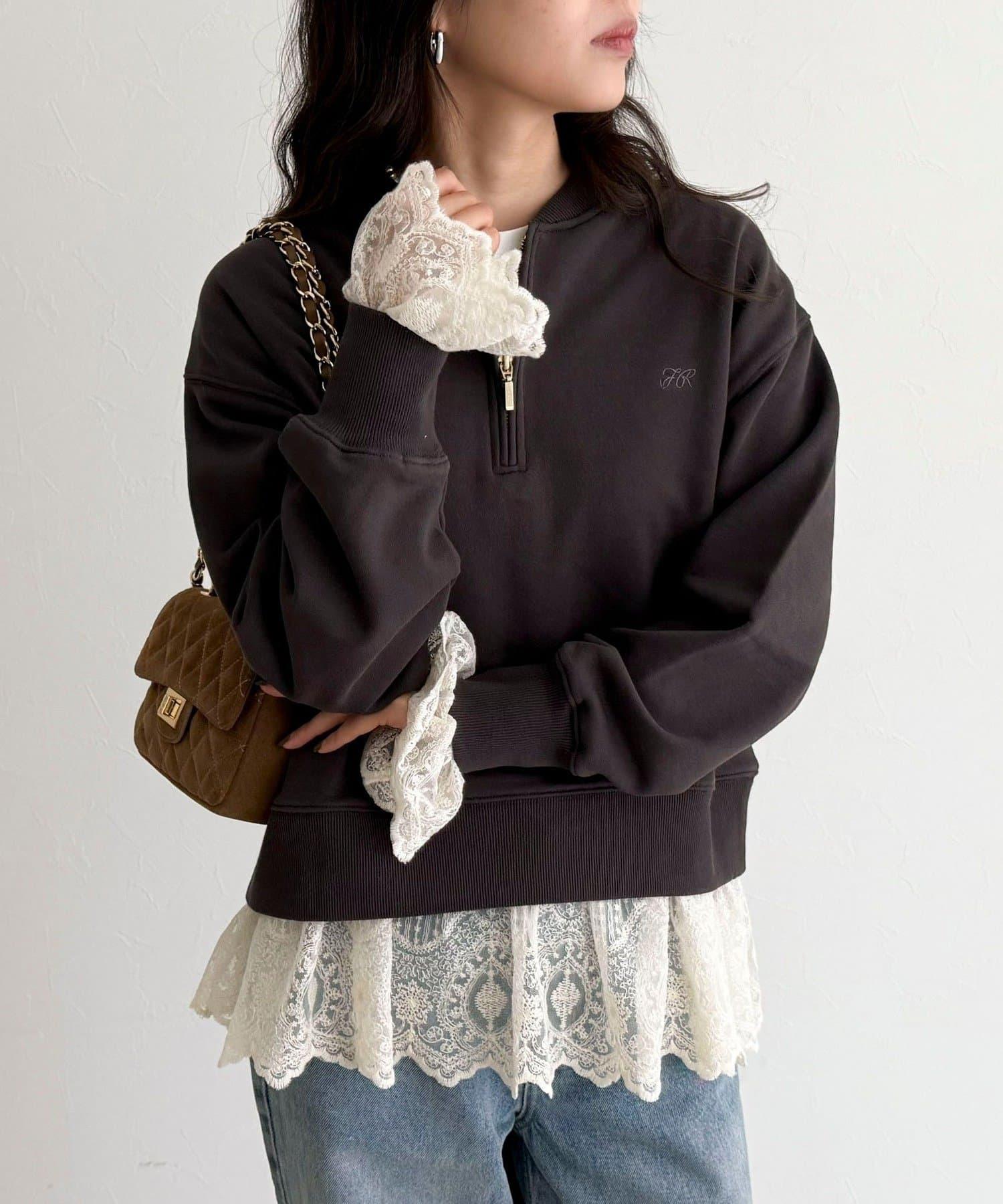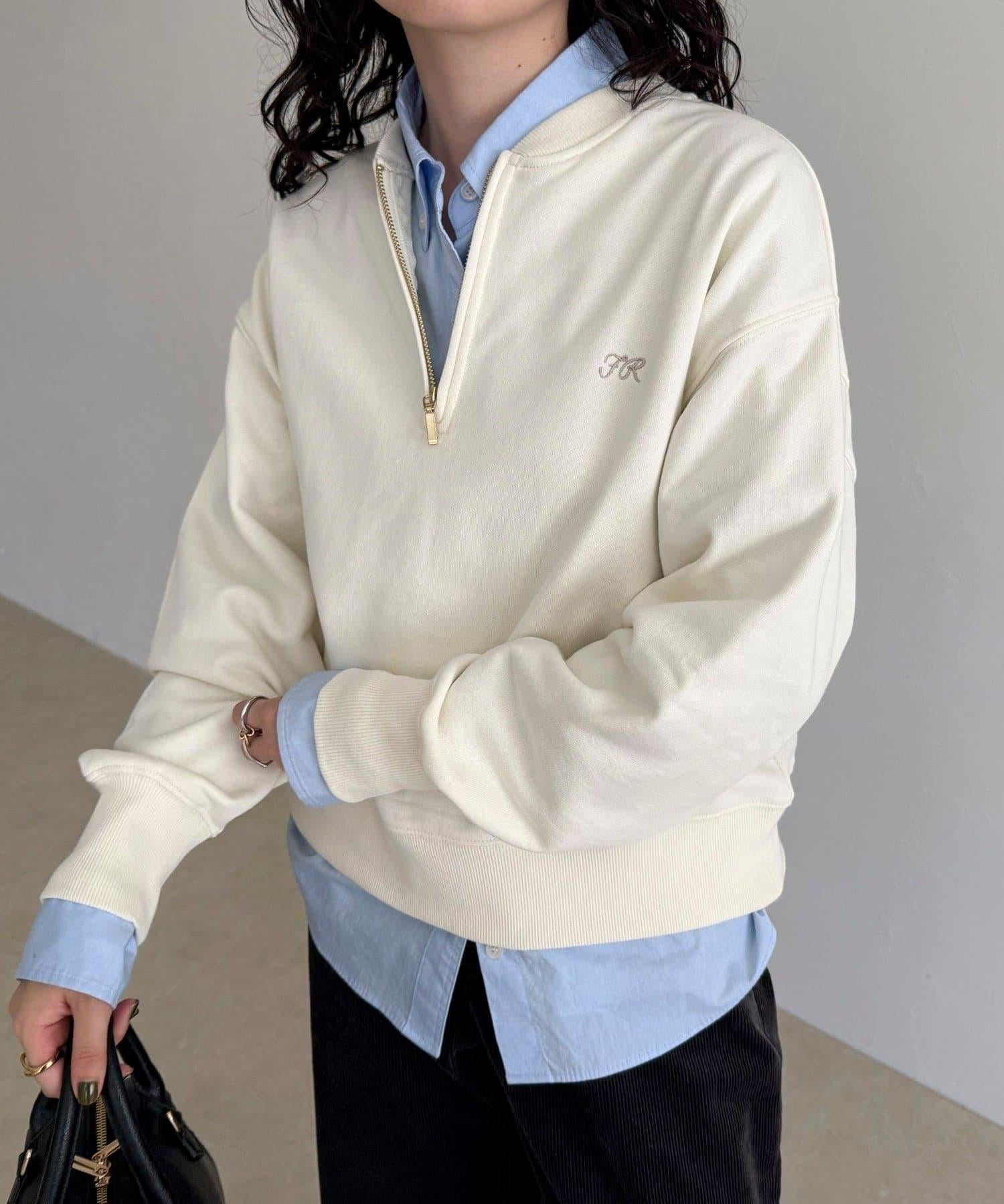 半拉鍊設計,胸前有精緻的 FR 刺繡點綴。