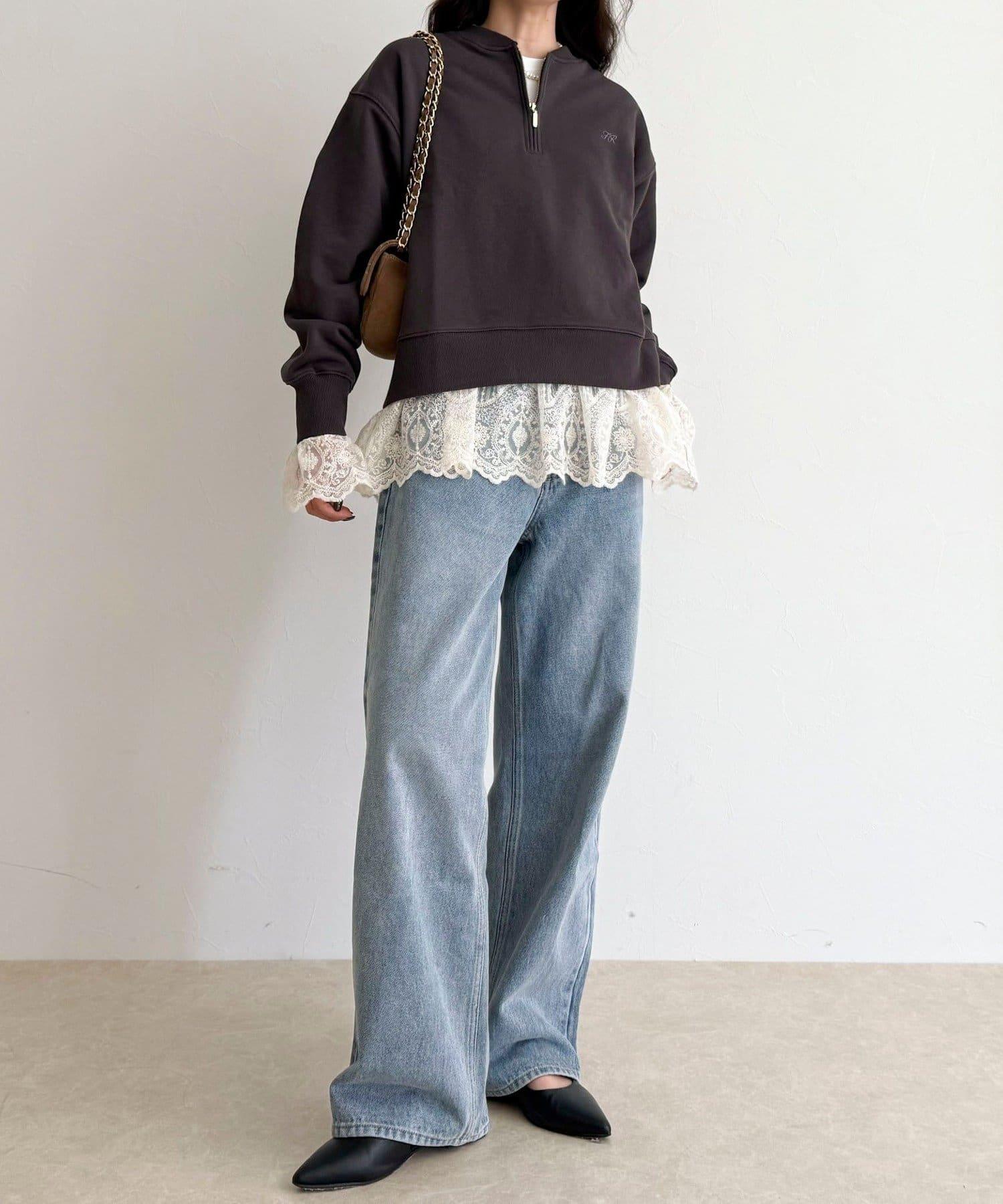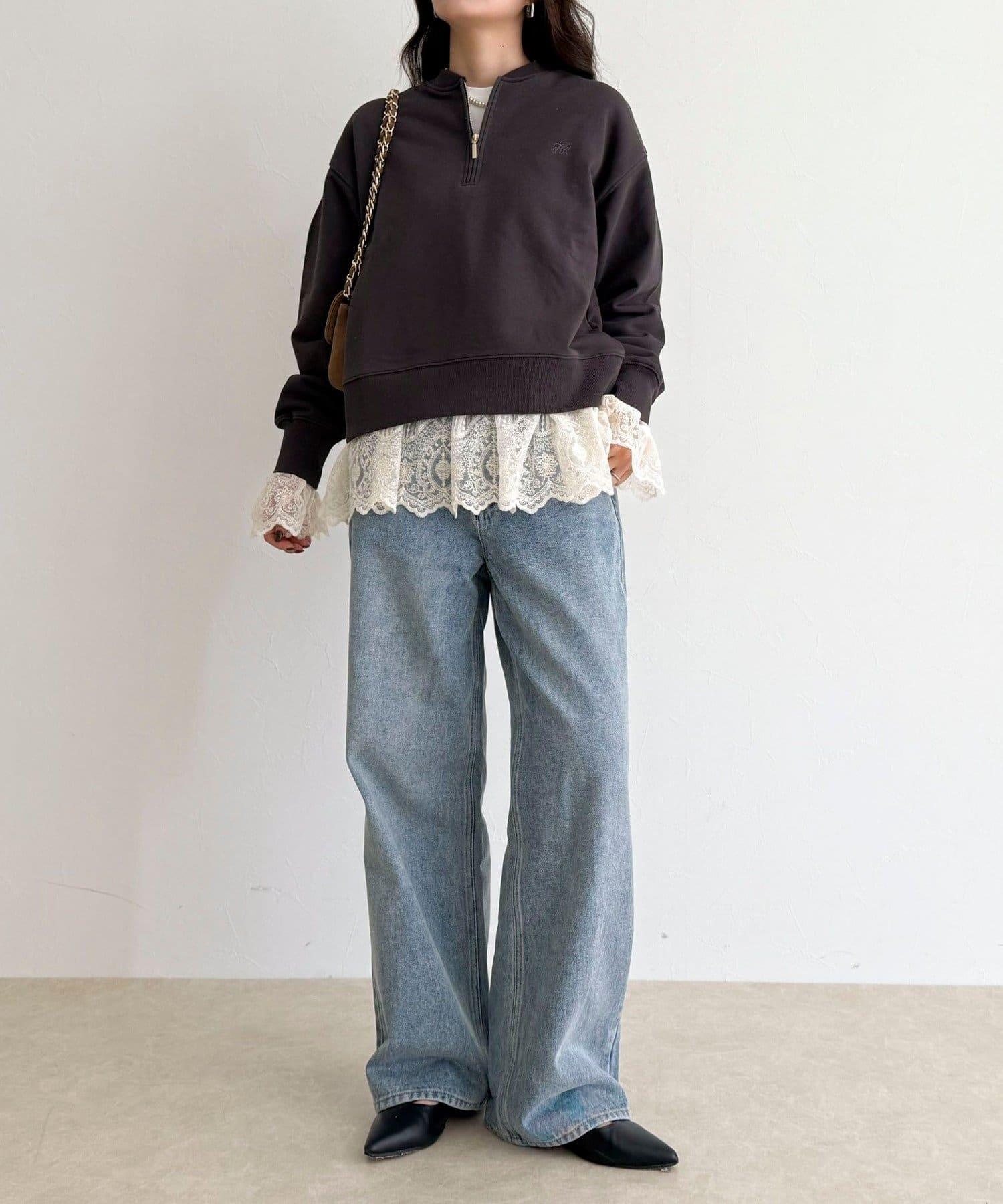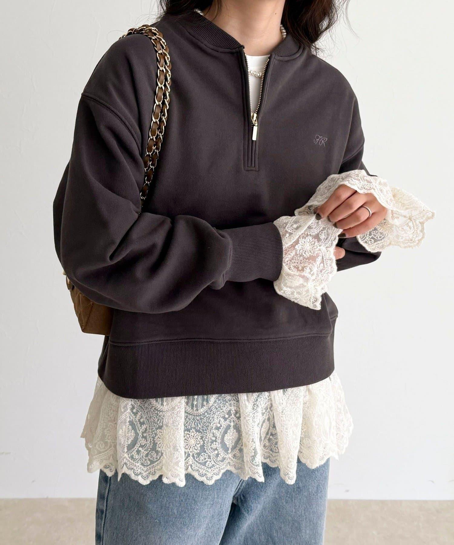 半拉鍊設計,胸前有精緻的 FR 刺繡點綴。