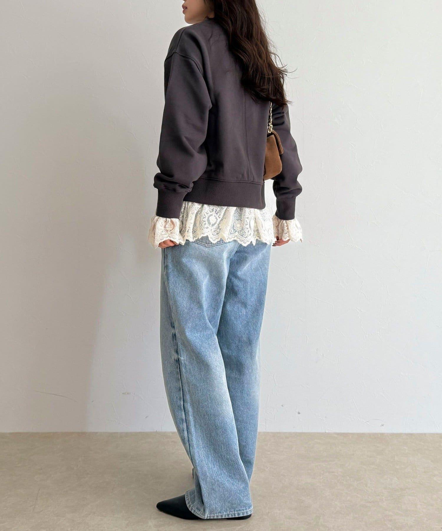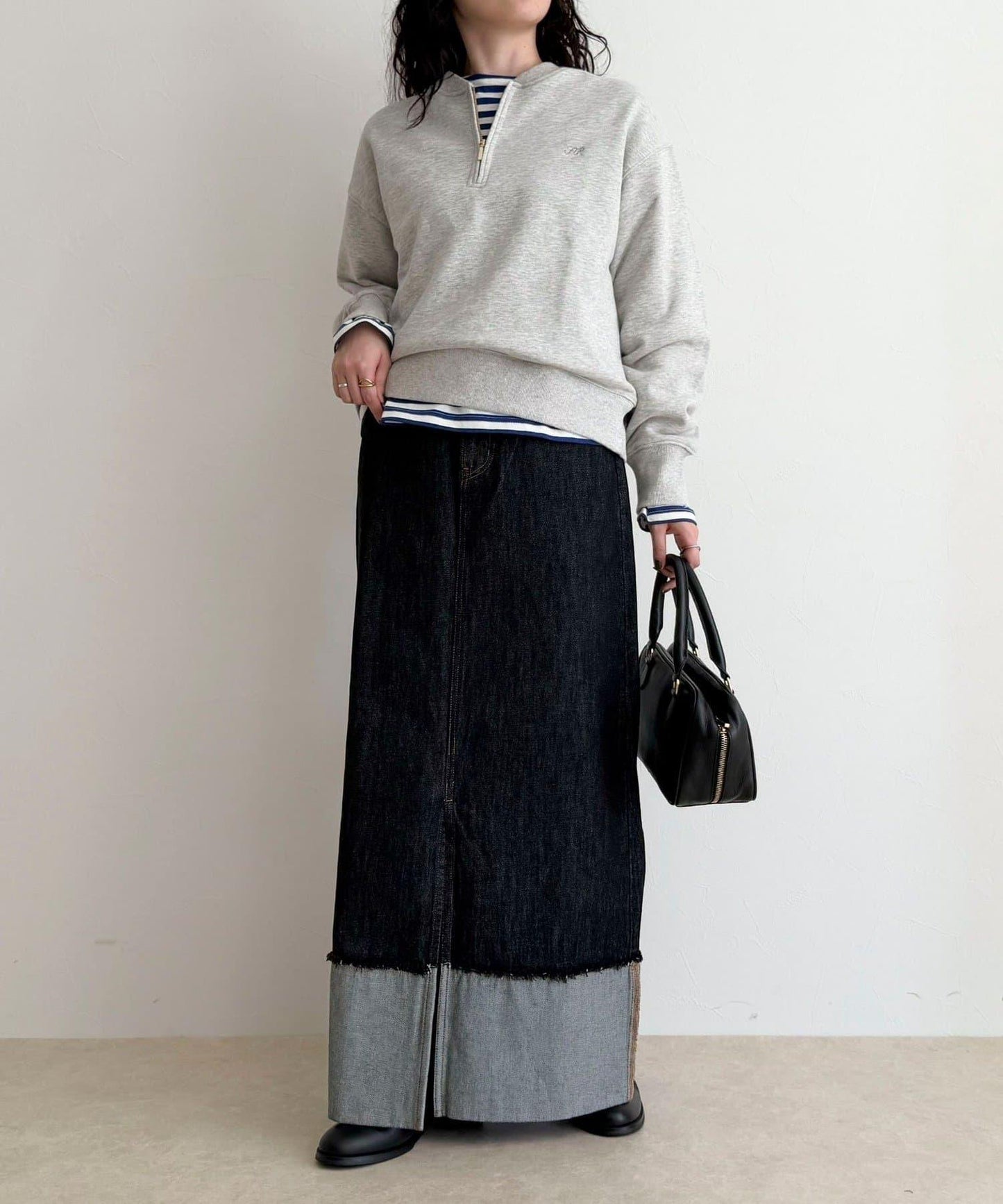 身高 156 厘米的工作人員(穿 38 號):衣身寬度有一定的空間,即使疊穿也不會傾斜,穿著舒適!柔軟的面料讓穿著者活動自如,不僅可以搭配休閒褲,還可以搭配漂亮的打底褲,給人適度時尚的印象。