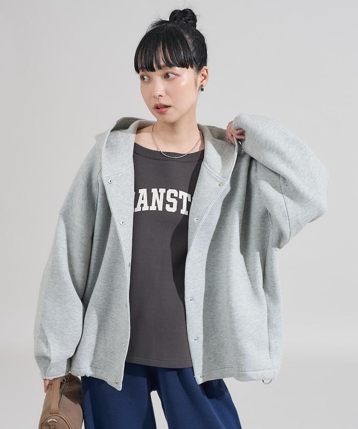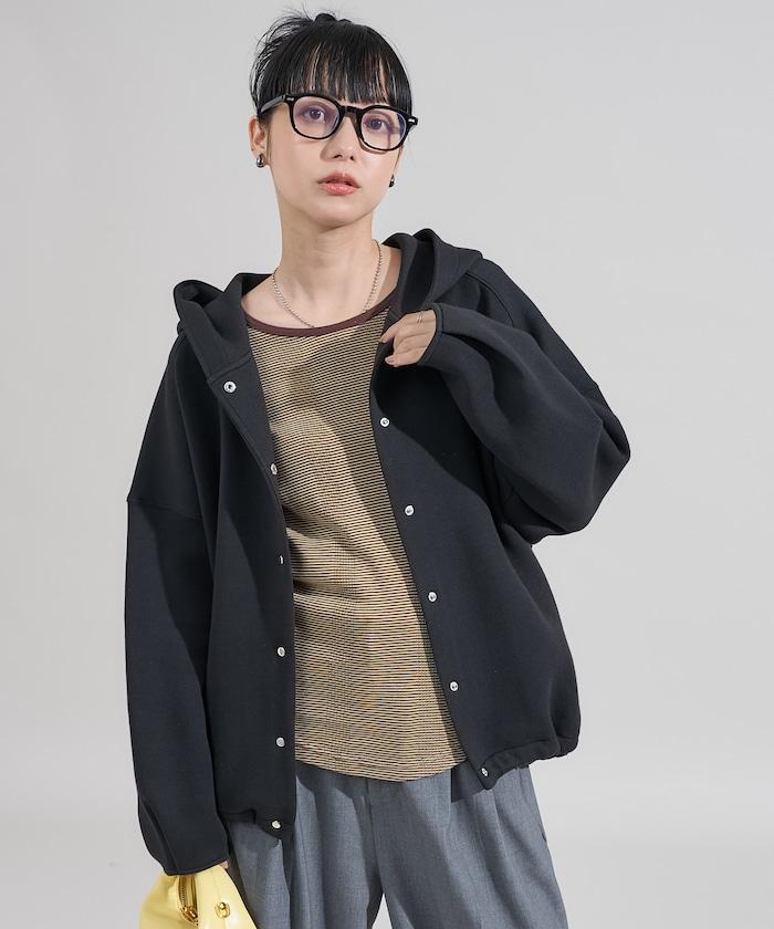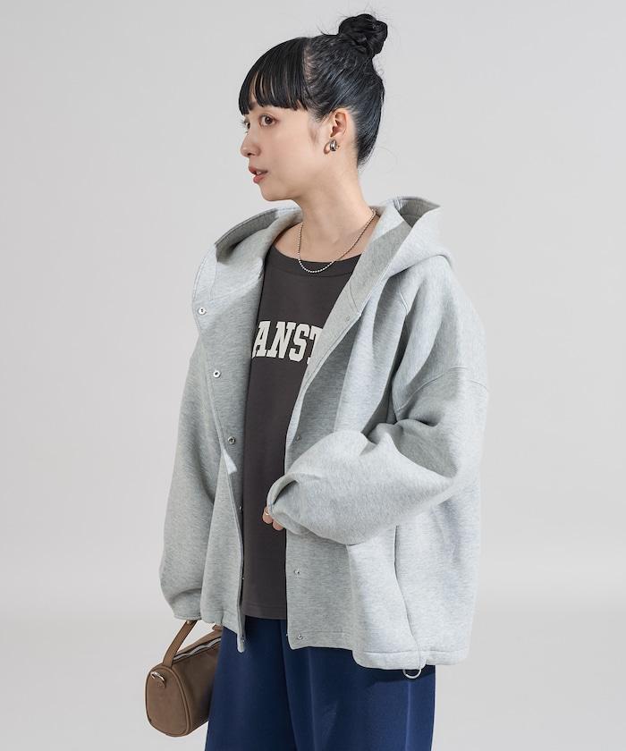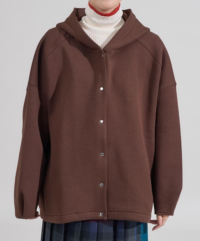 卡其色按扣連帽衛衣