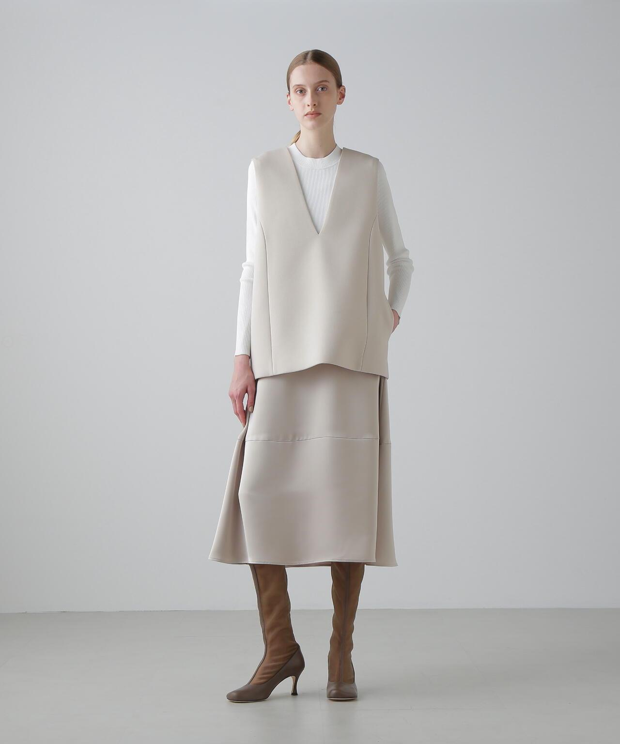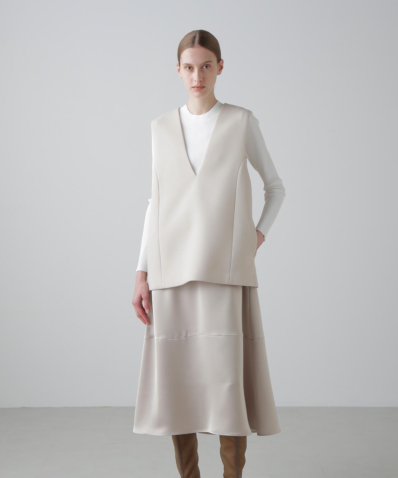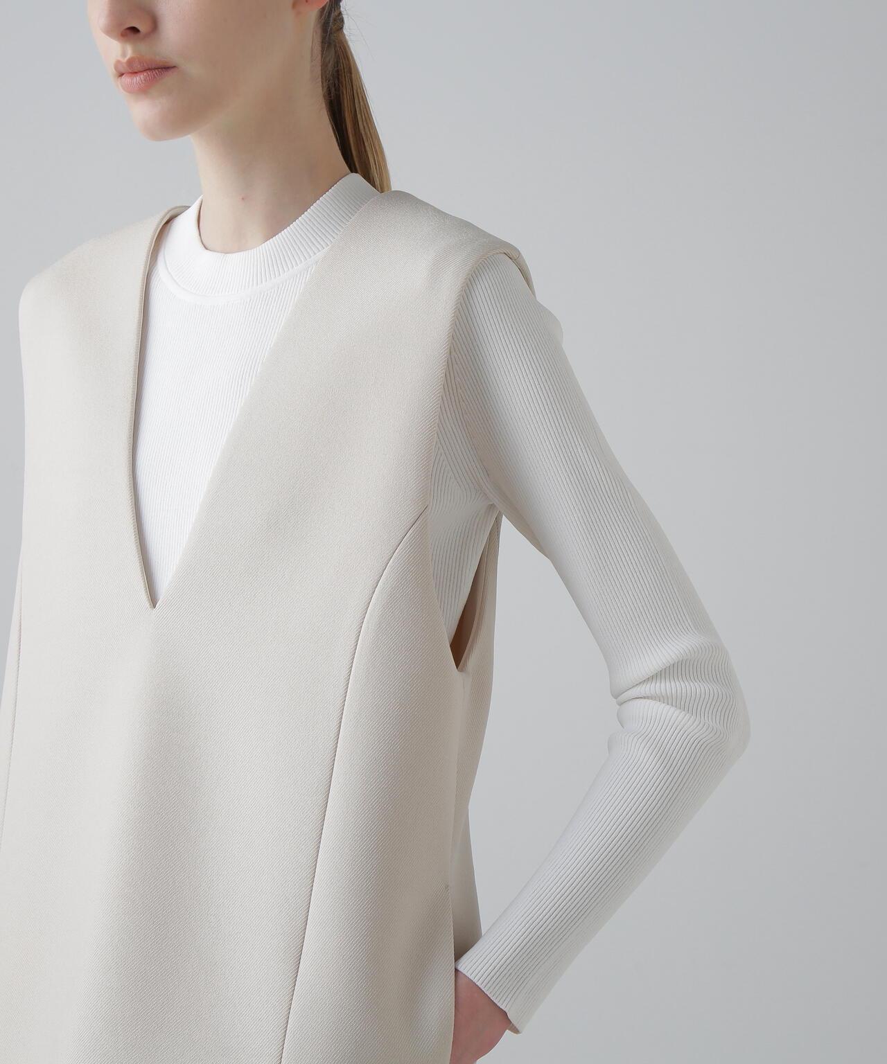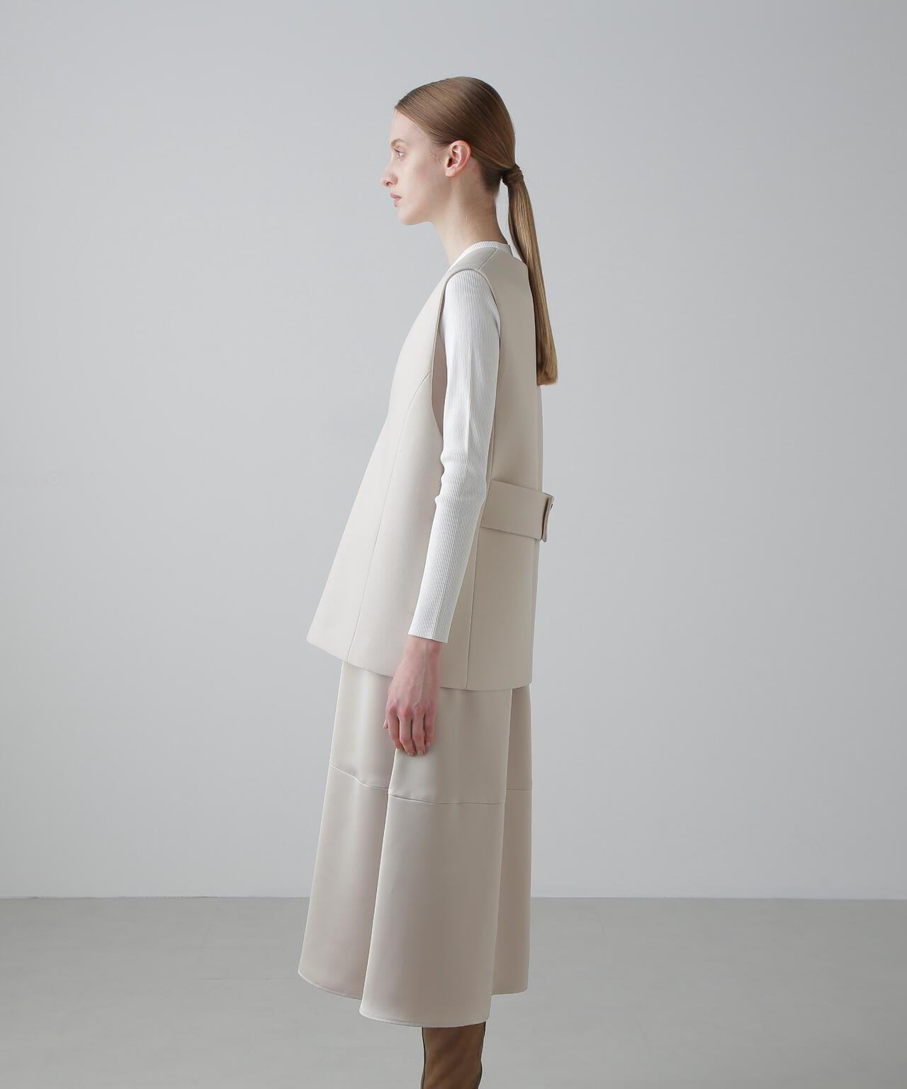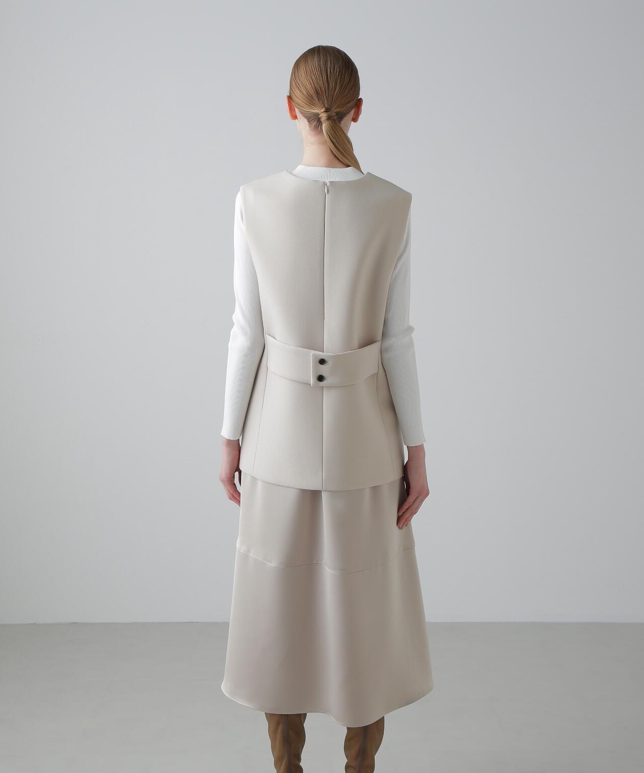 Calzé 海綿粘合連身裙連身裙的上半部分由柔軟、有彈性的粘合材料製成,下半部分由緞面垂墜材料製成。背面有腰帶設計。根據內搭的不同,這款單品的穿著方式也多種多樣:它由柔軟的斜紋材料製成,具有脊背感,通過使用三種不同類型的聚酯纖維和對材料進行不同的染色,染出了類似於混合色的深度。在兩者之間用海綿粘合,使其具有獨特的張力和豐滿度。粘合效果會隨著磨損、起皺和老化的頻率而變化。請注意,這不是👍性的。