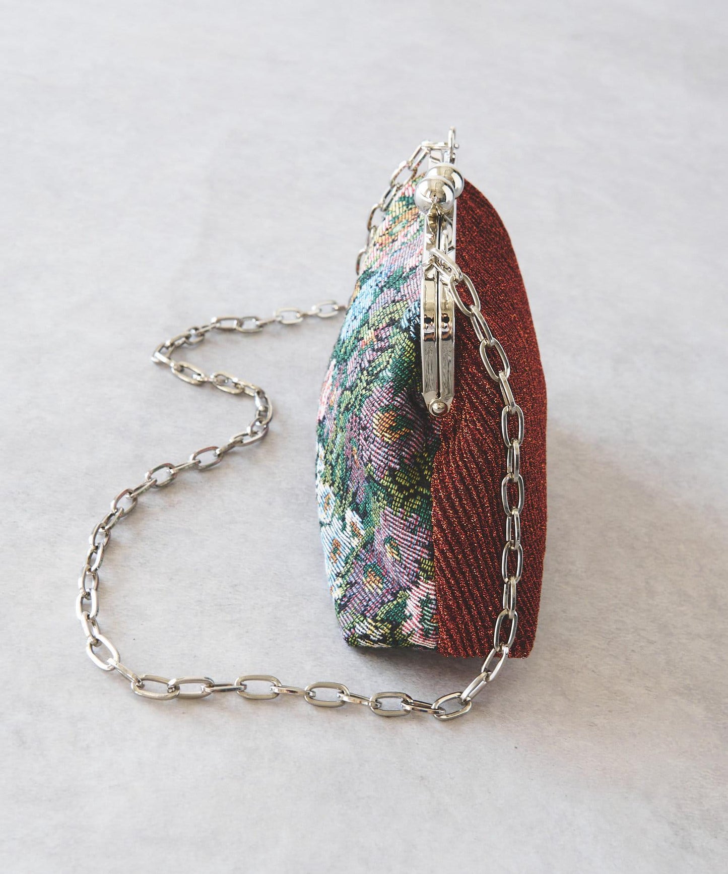 手柄上的鏈條也讓人印象深刻,使包包看起來像一件配飾。