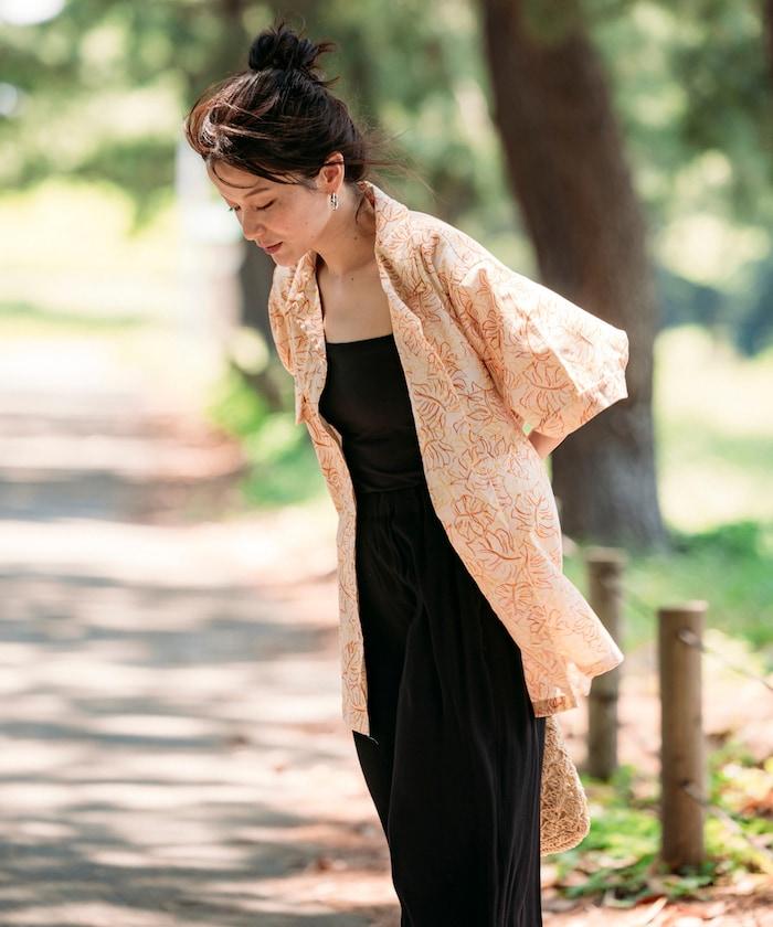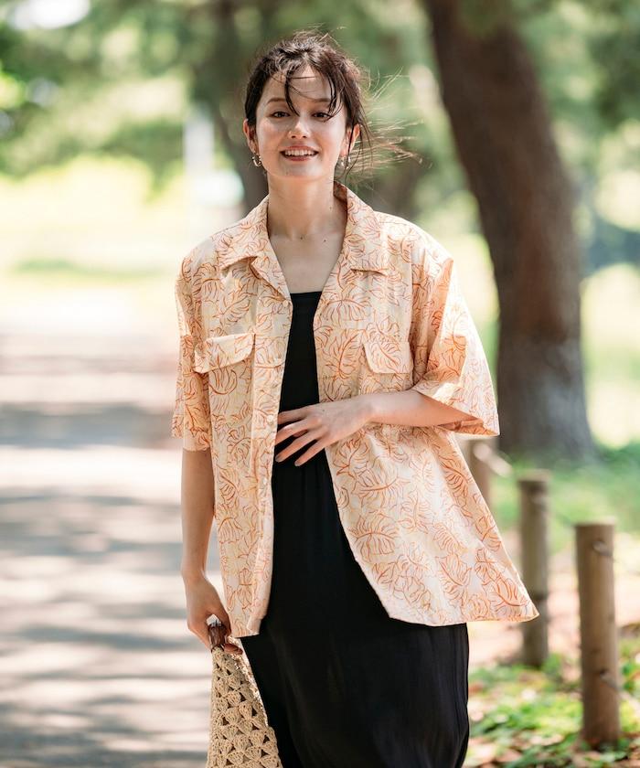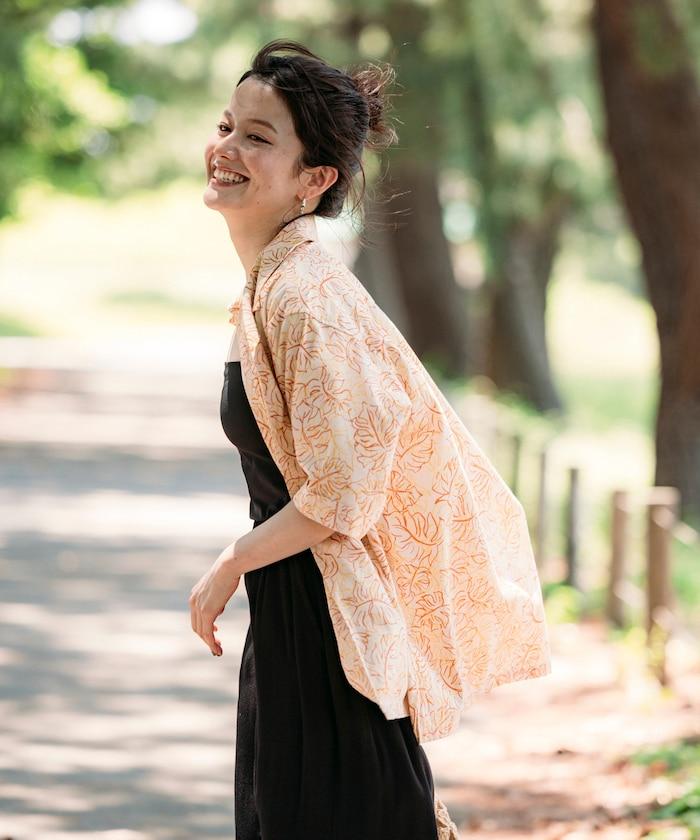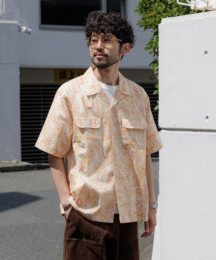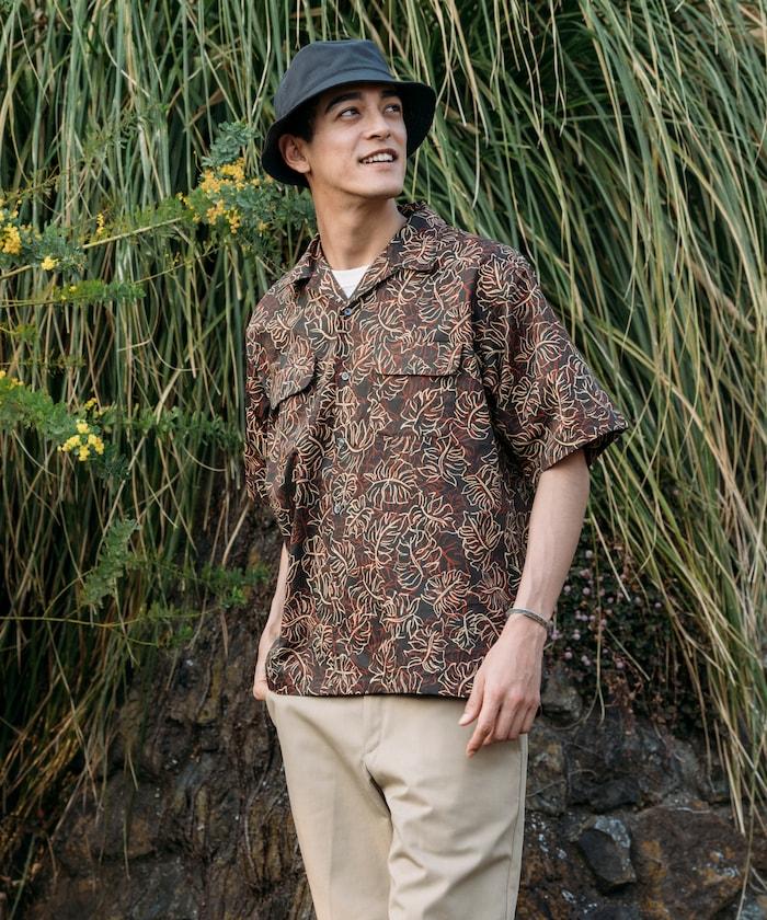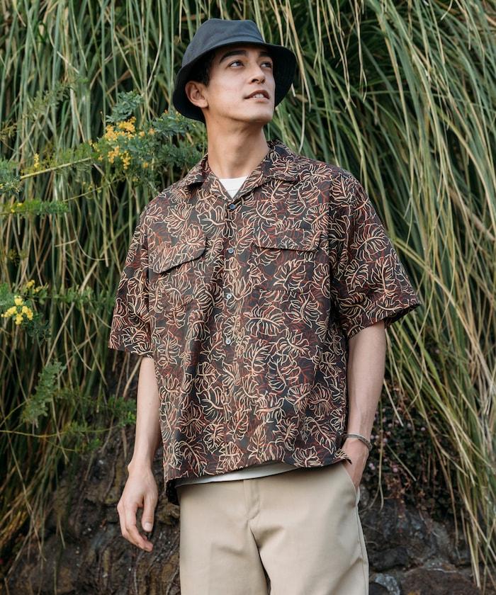印度制 寬鬆版型 巴厘島印花 開領襯衫 短袖 葉子圖案
